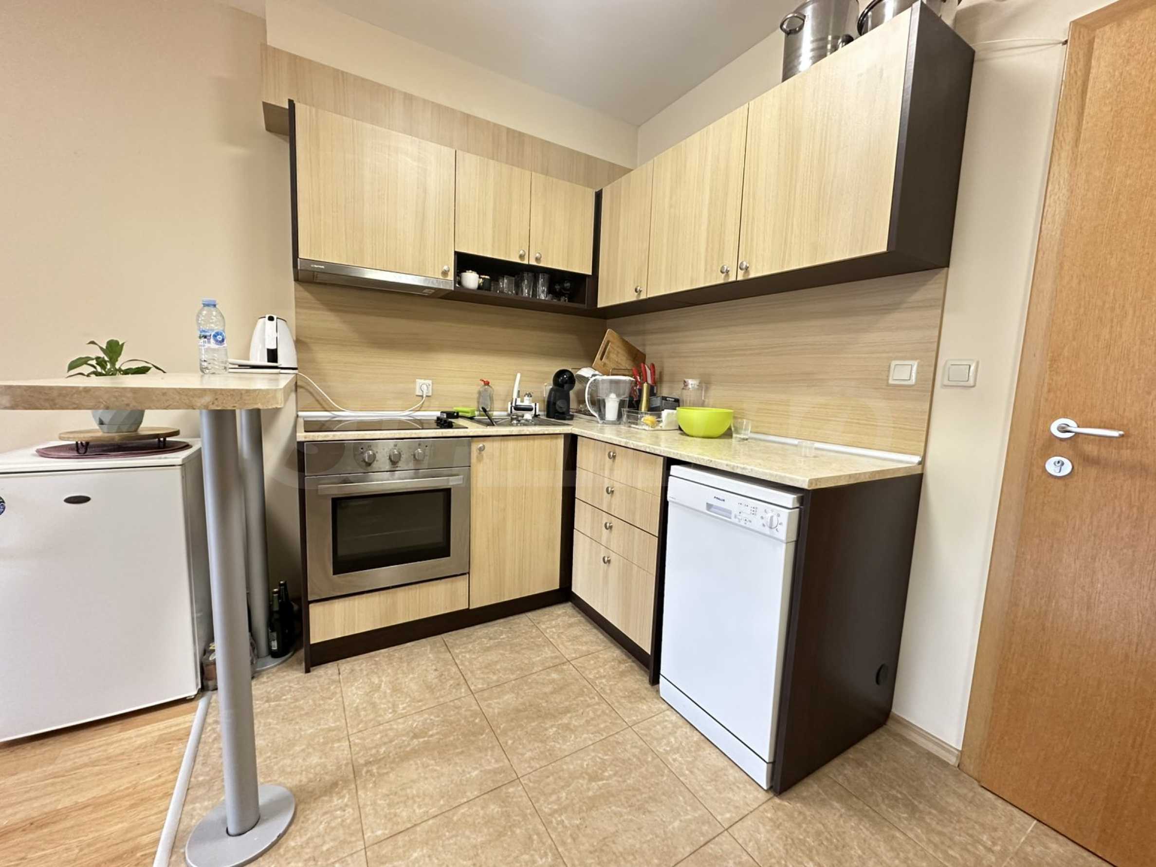• Кухненски бокс, напълно оборудван с всички необходими електроуреди и маса за хранене;
