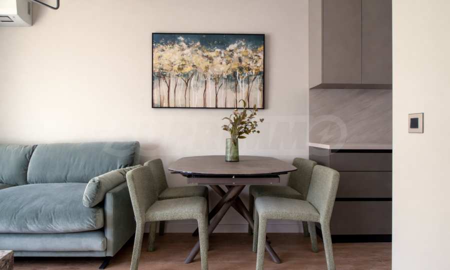 Апартаментът се предлага напълно обзаведен и оборудван с всичко необходимо за живеене, готов за нанасяне или отдаване под наем.