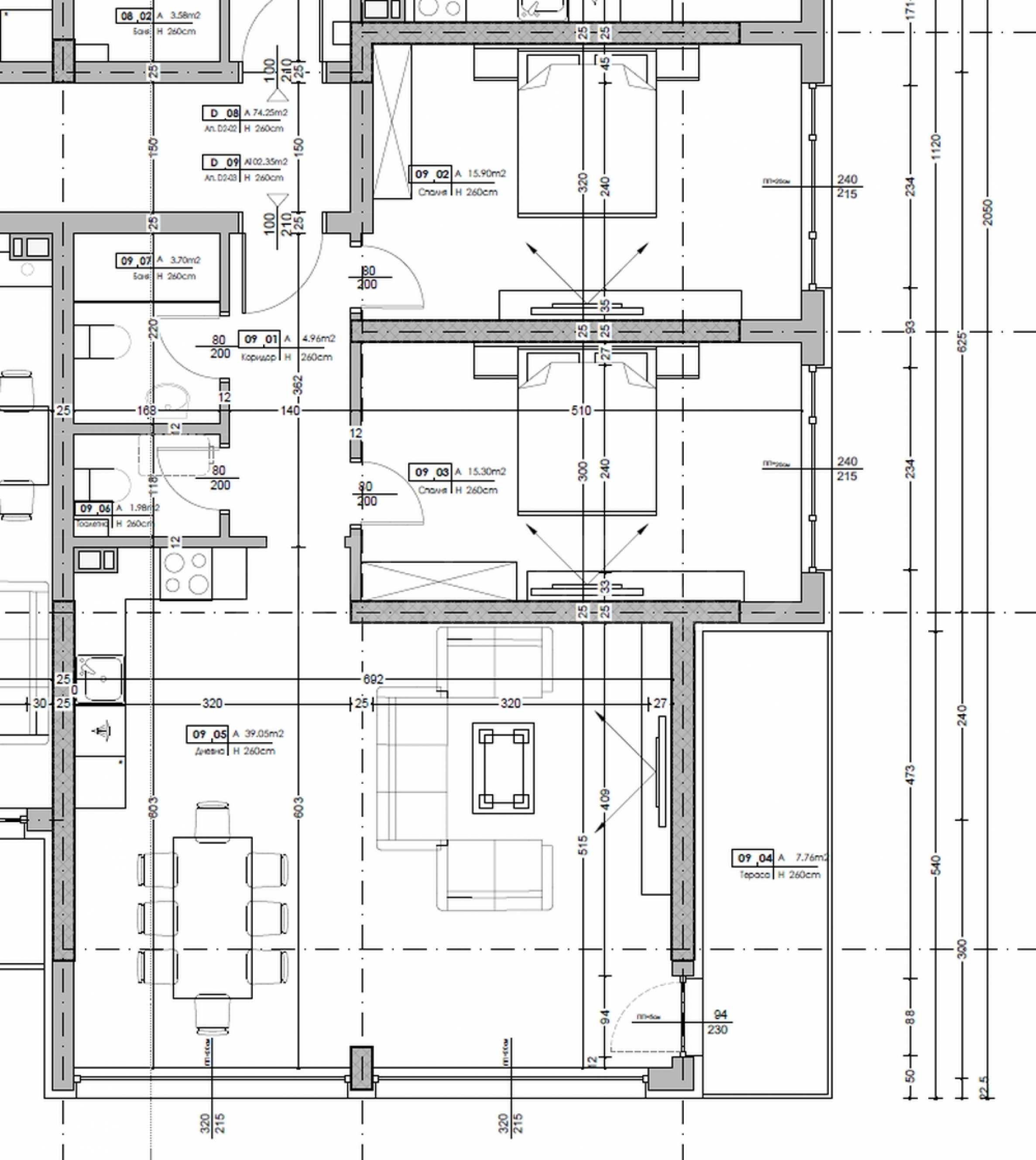 Жилището с обща площ от 119.09 кв.м е разположено на 3-ти етаж от 5 и има изложение югоизток.