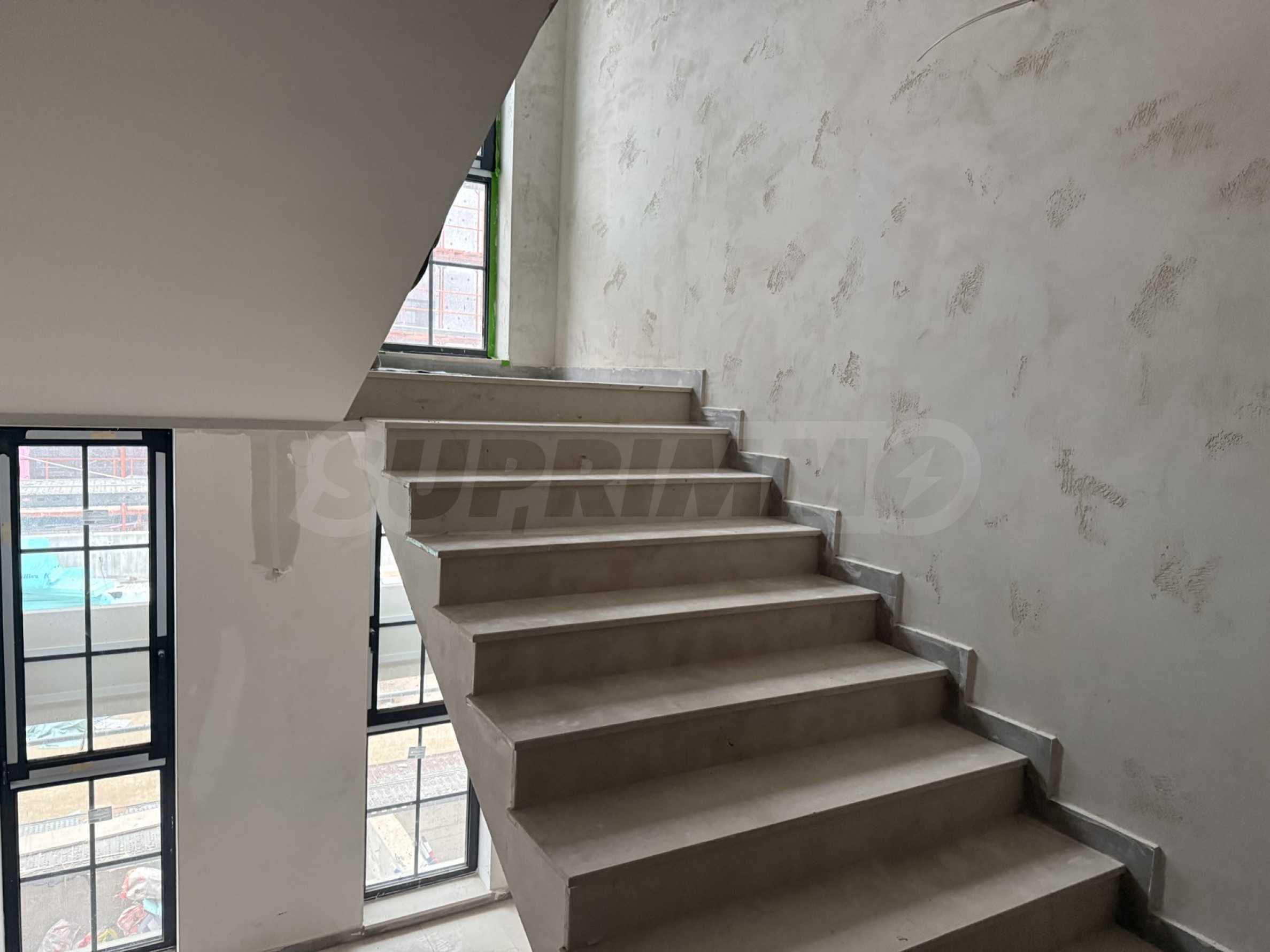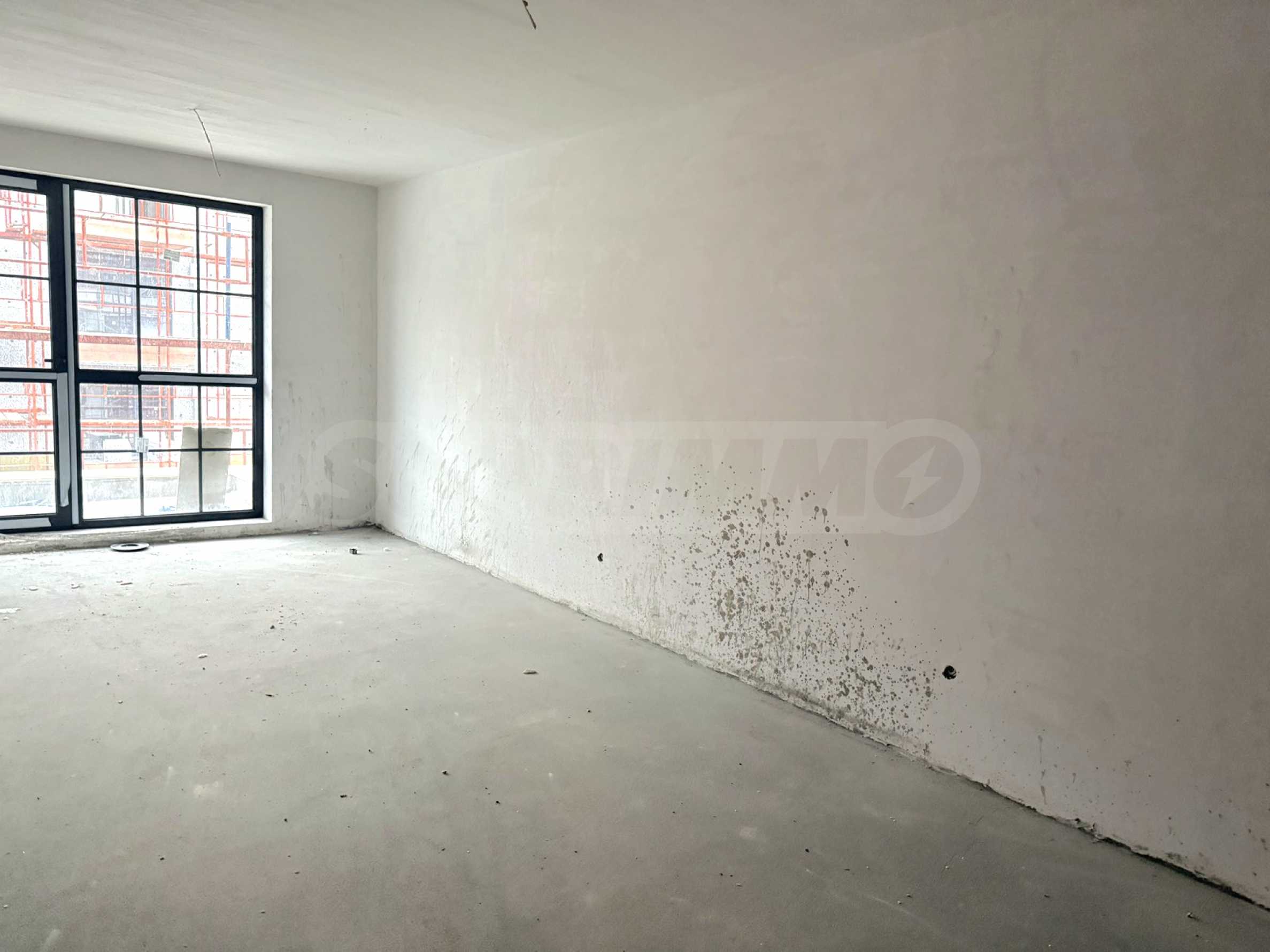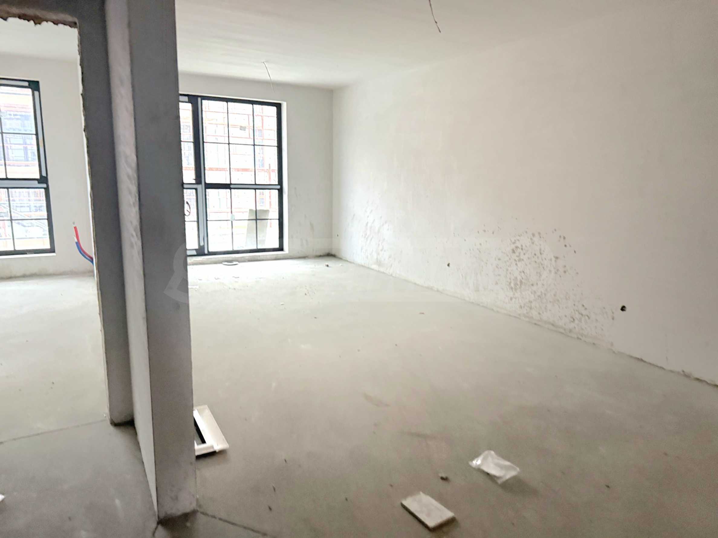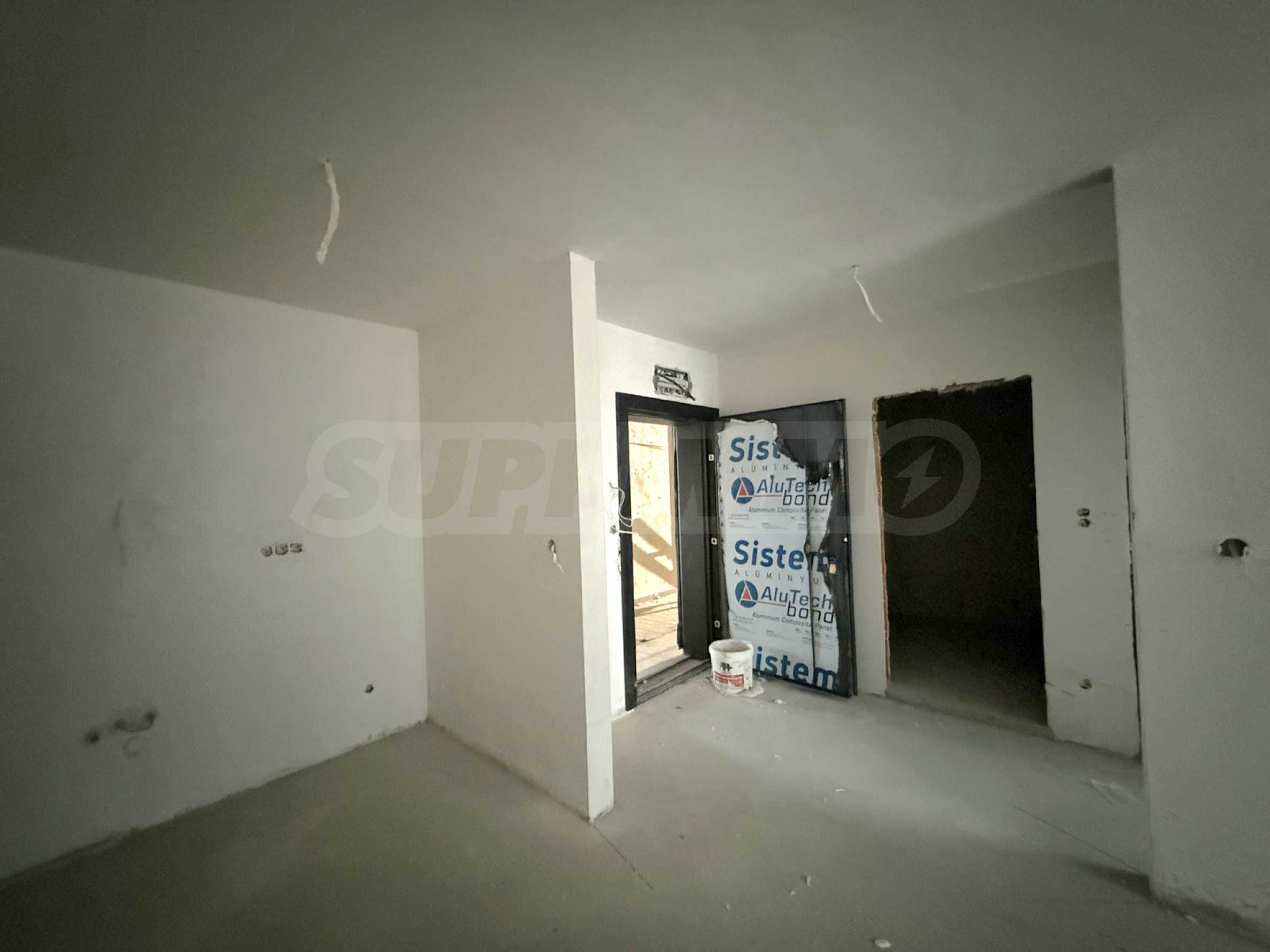 Жилището се предлага на гипсова мазилка, подове с циментова мазилка, вътрешно окабеляване и луксозни входни врати.