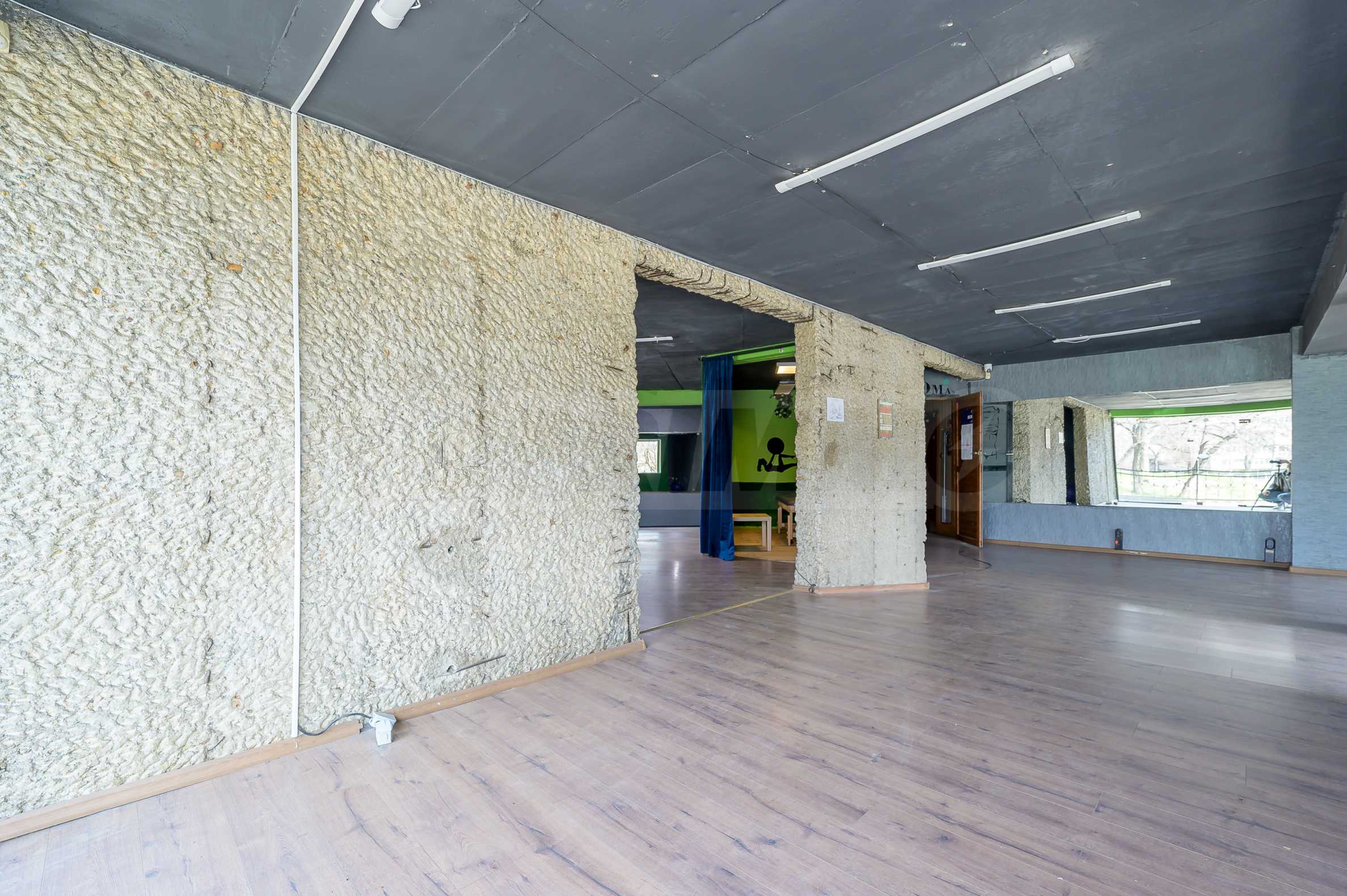 - Две големи зали - подходящи за тренировки, open space офис или клиентска зона;