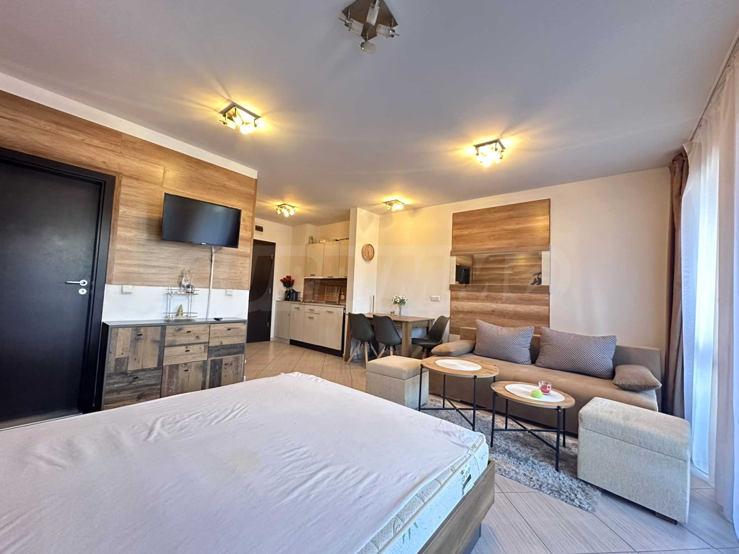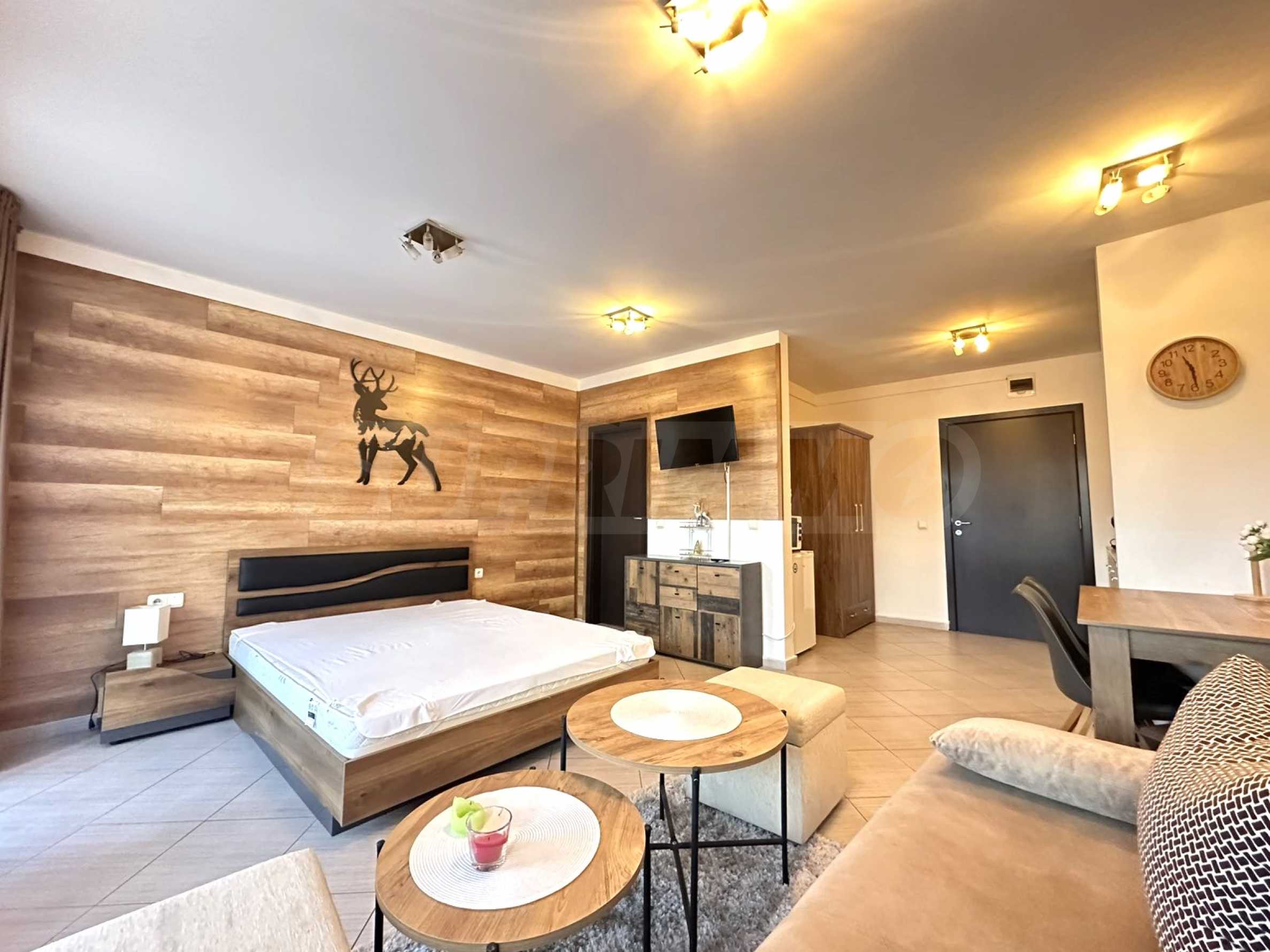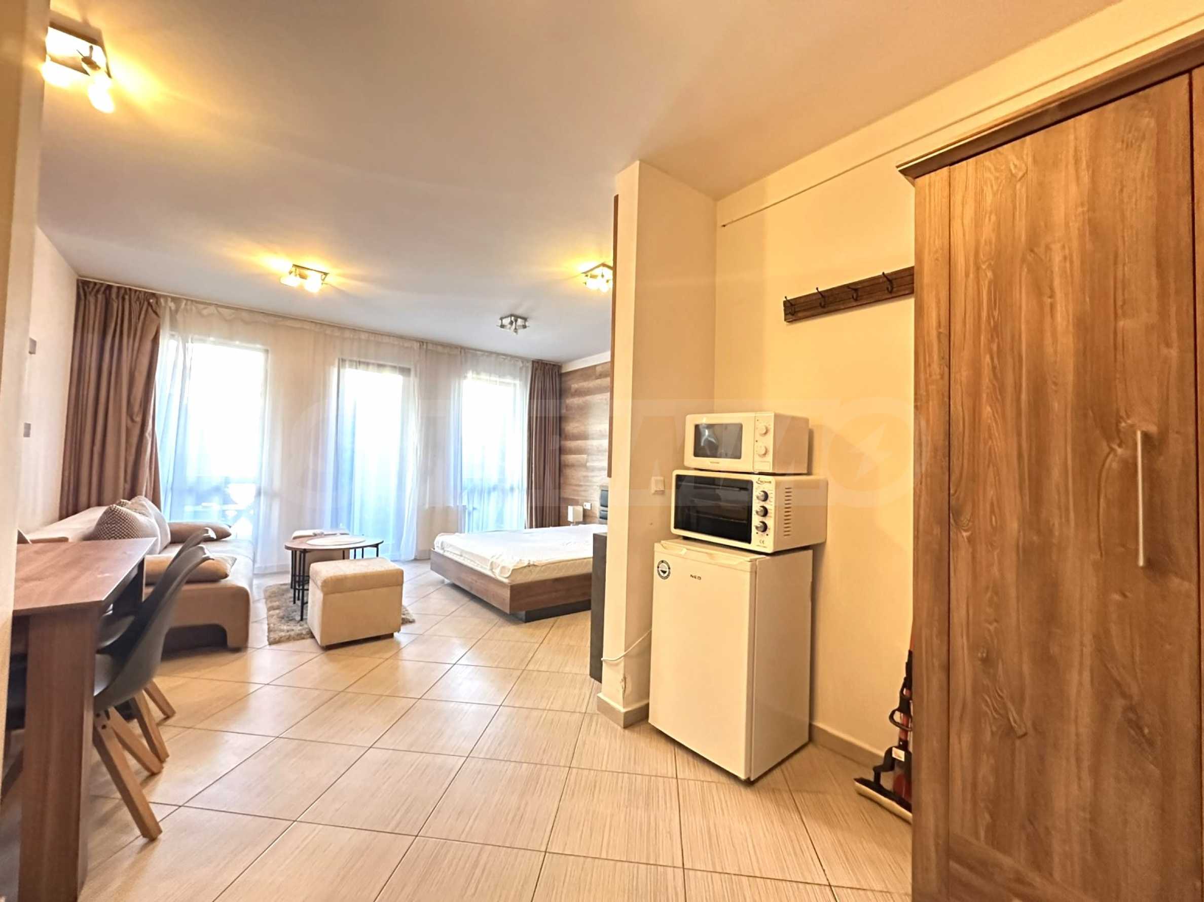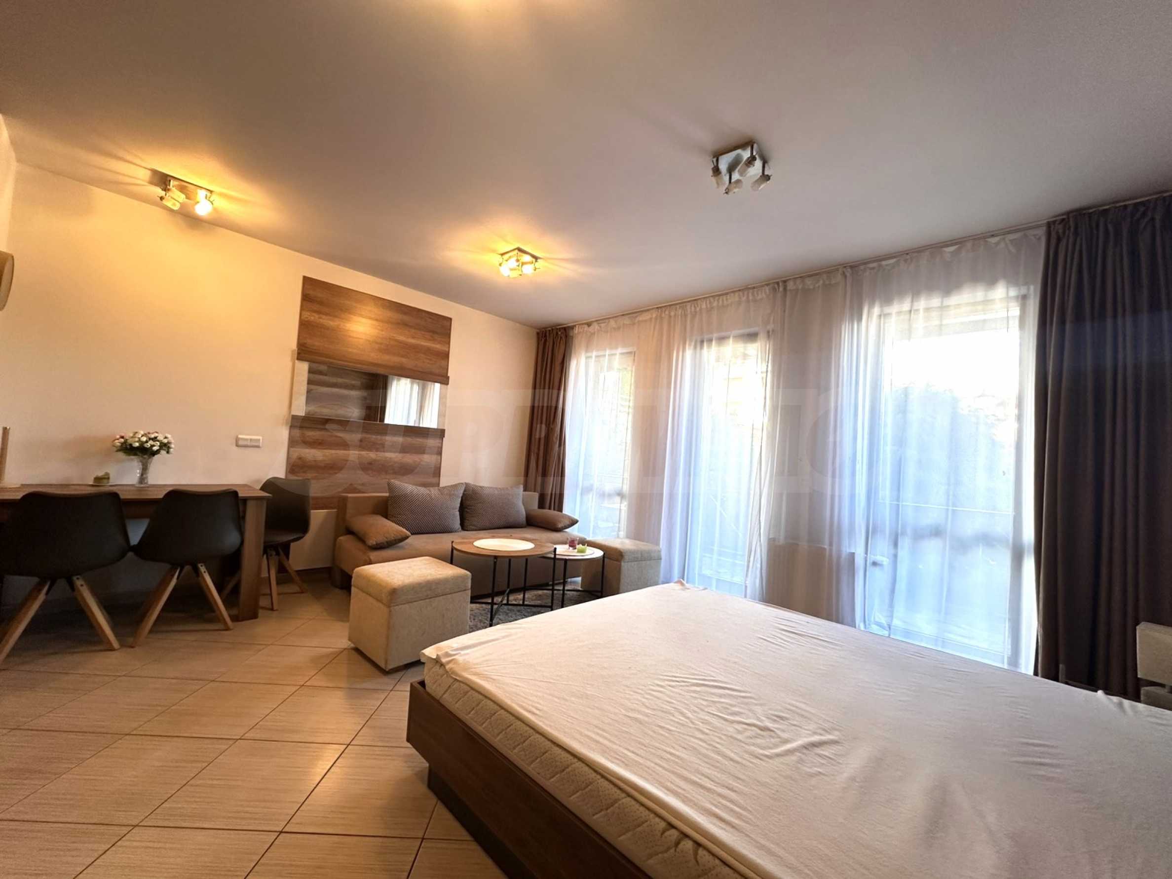 Представяме елегантно студио с балкон тип „английски двор“ в целогодишен комплекс Грийн Лайф.