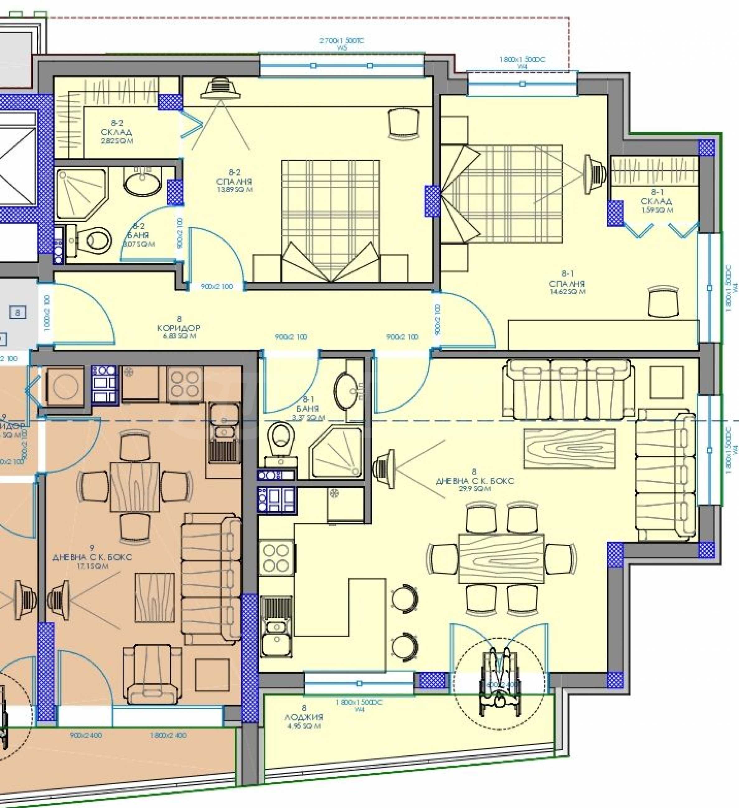Интериорните пространства са проектирани с мисъл за съвременния начин на живот, като осигуряват усещане за простор, светлина и комфорт. Отоплението и охлаждането са решени чрез високоефективни климатични системи, гарантиращи оптимален микроклимат през всички сезони.
