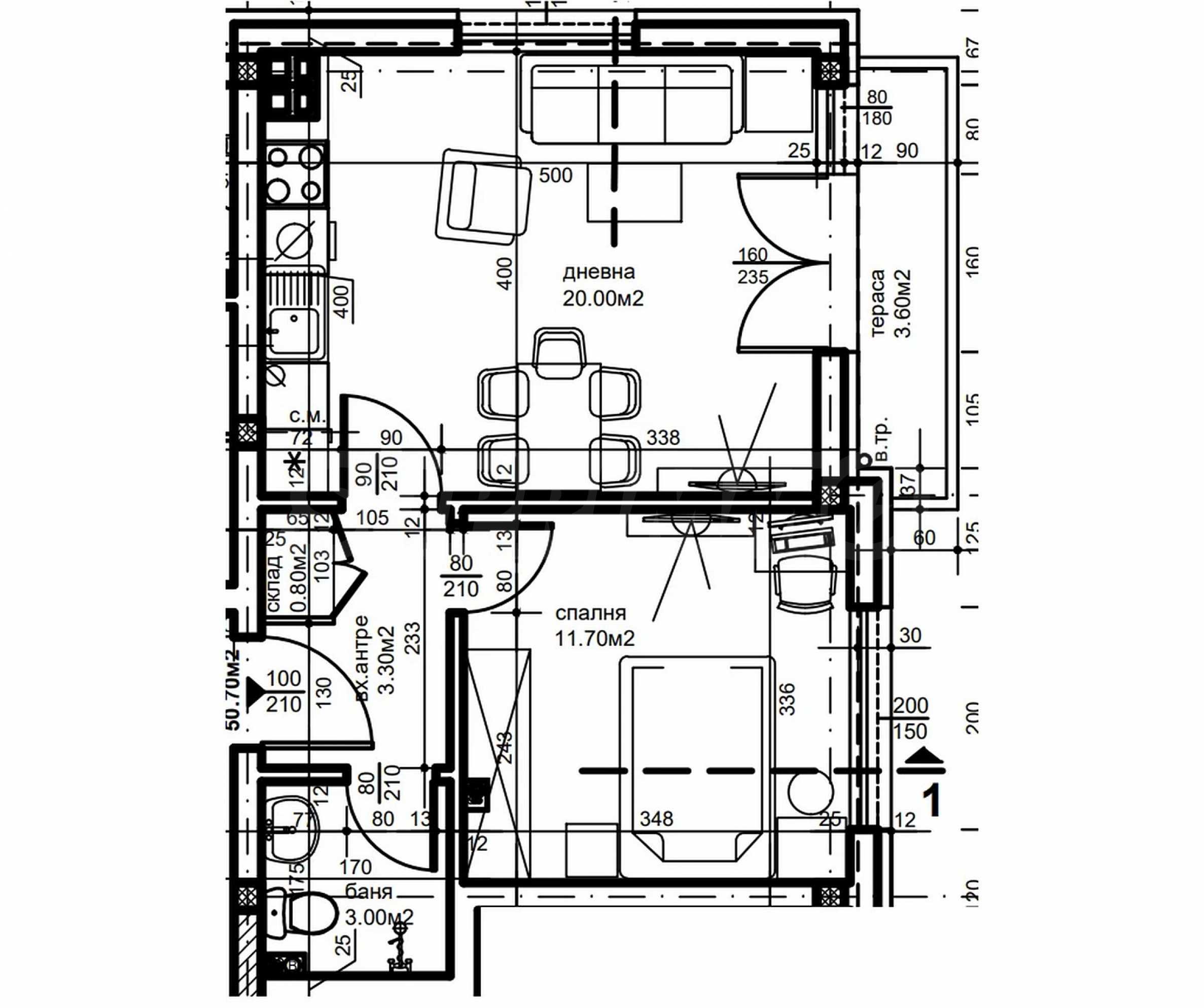 • ел. инсталация - трипроводна, хоризонтална и вертикална разводка с монтирано апартаментно табло;
