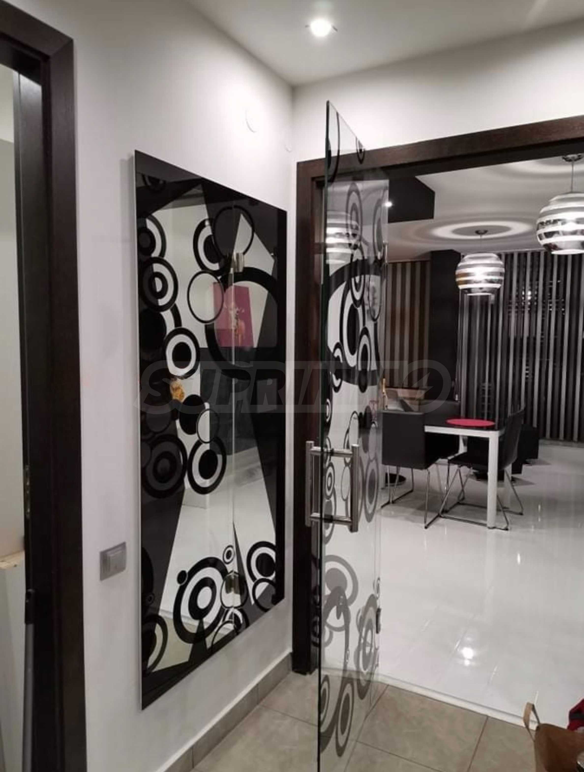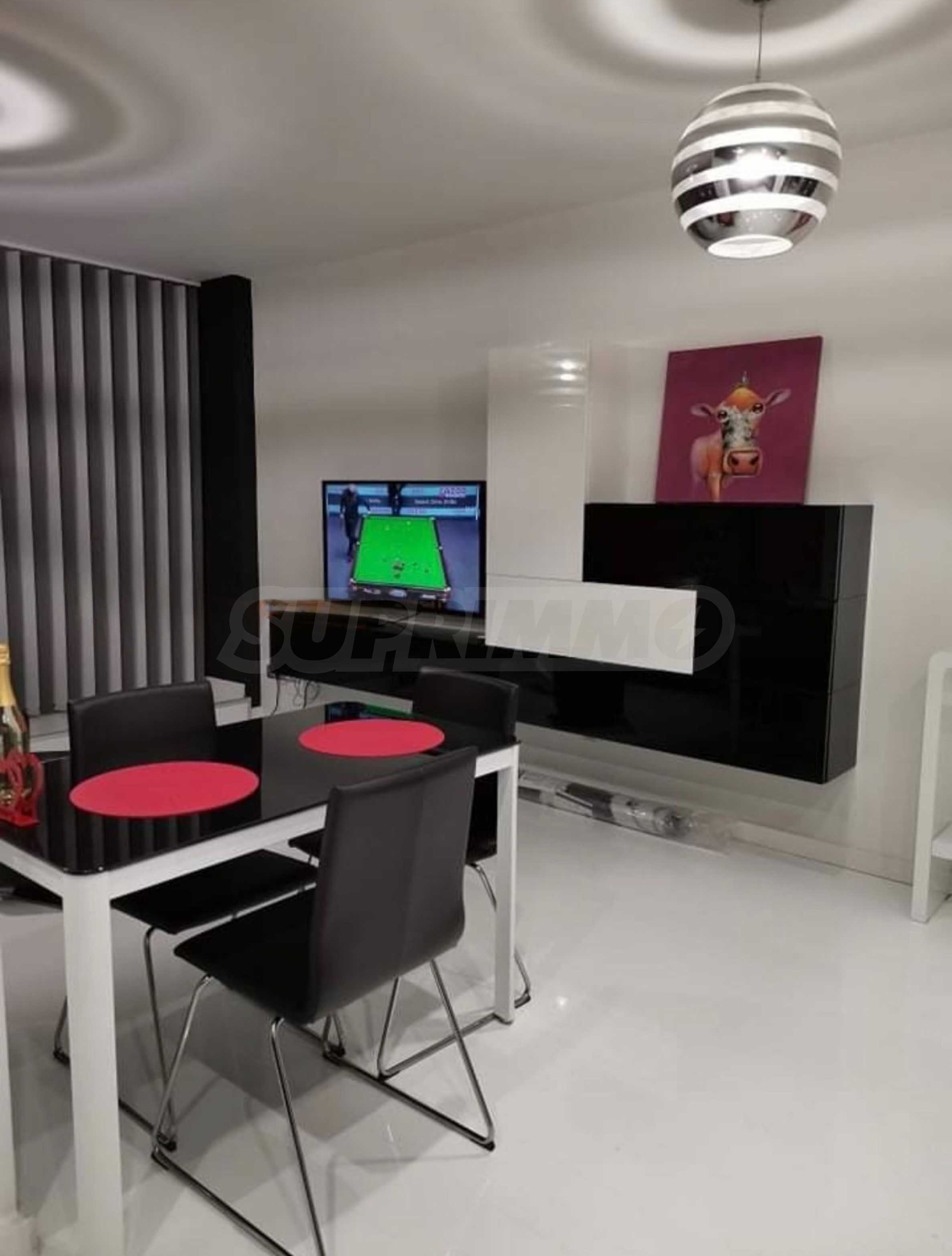 Апартаментът се отдава напълно обзаведен и оборудван с всички необходими електроуреди: два телевизора, пералня, хладилник, фурна, съдомиялна, микровълнова и други. Отоплението е решено с висок клас хиперинверторни климатици.