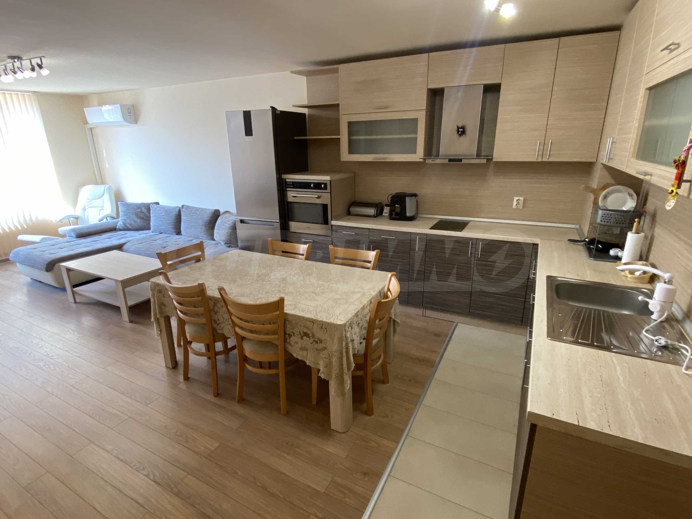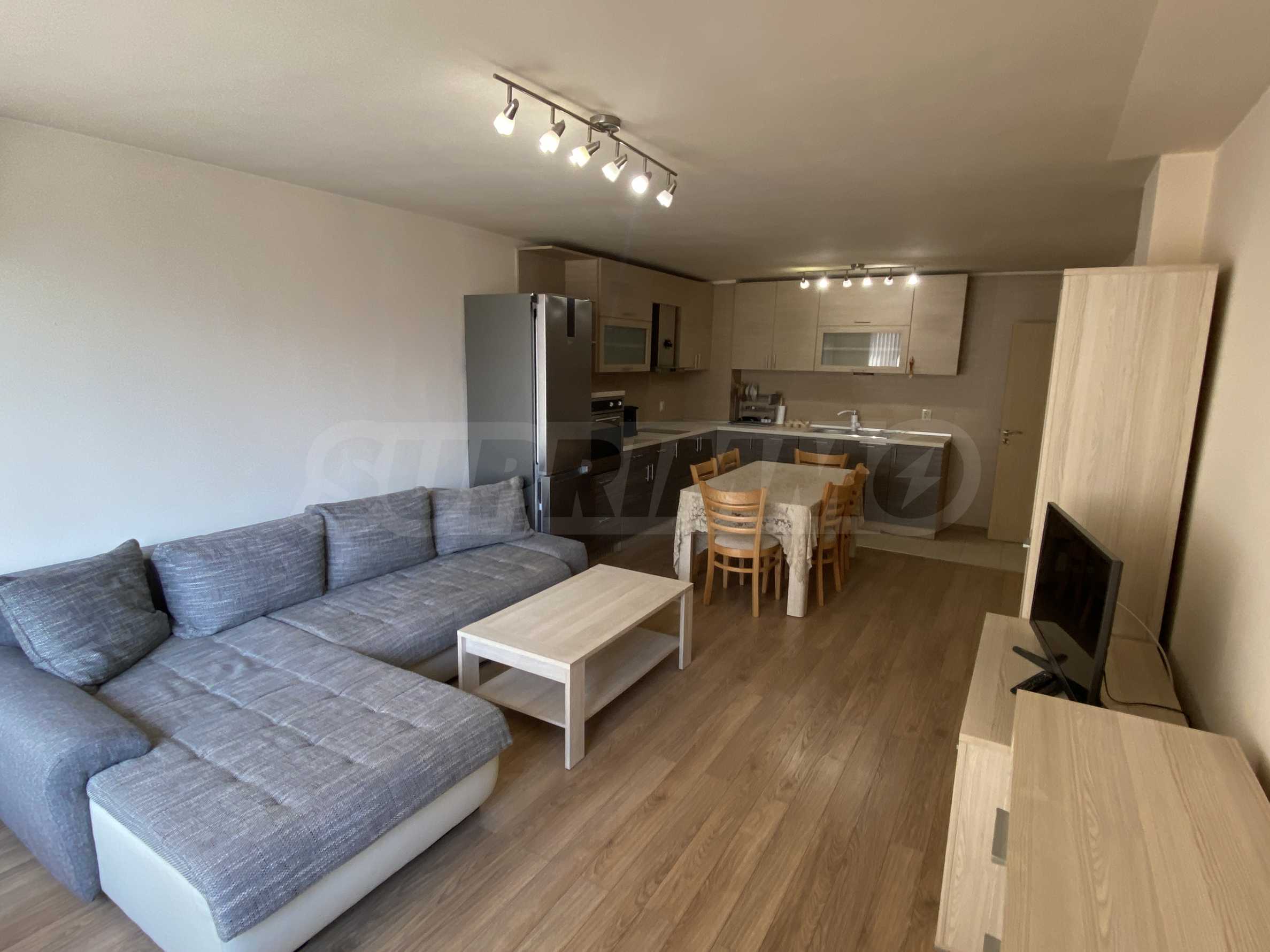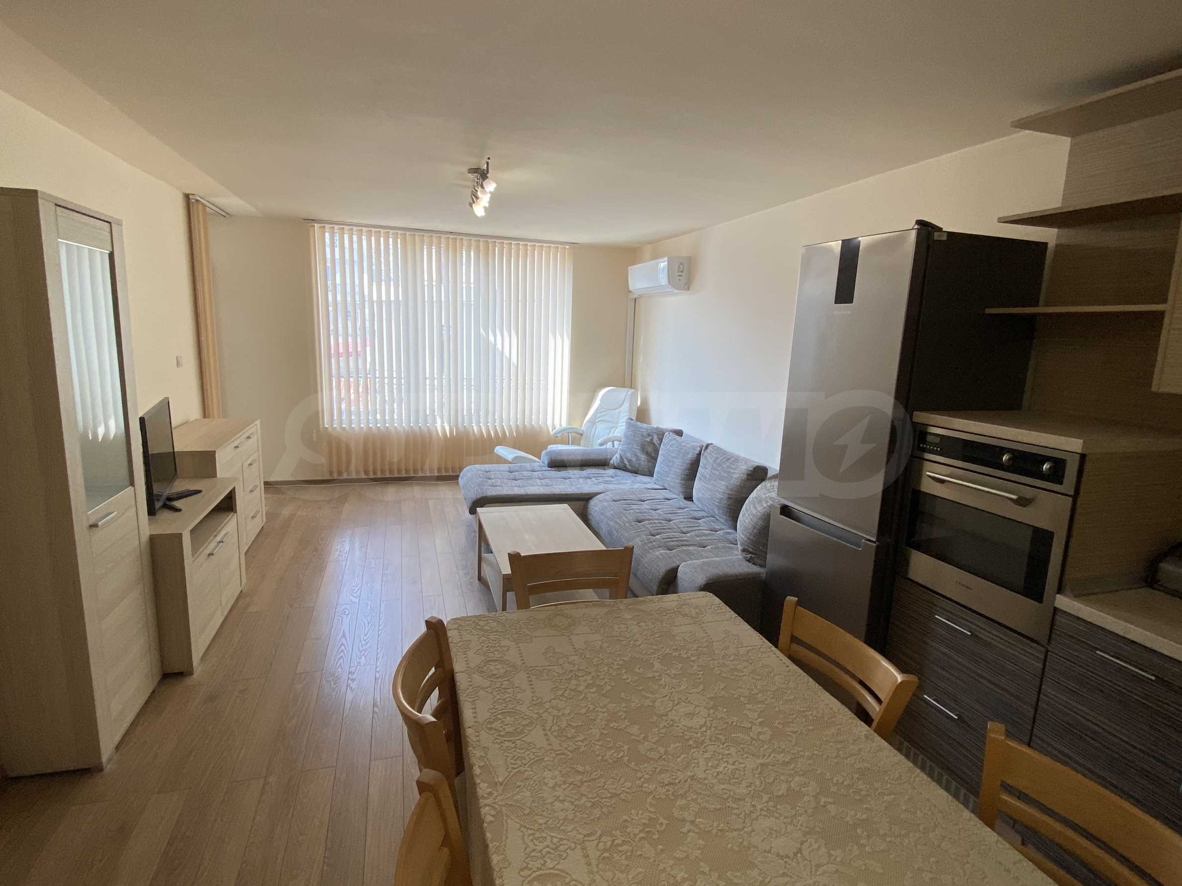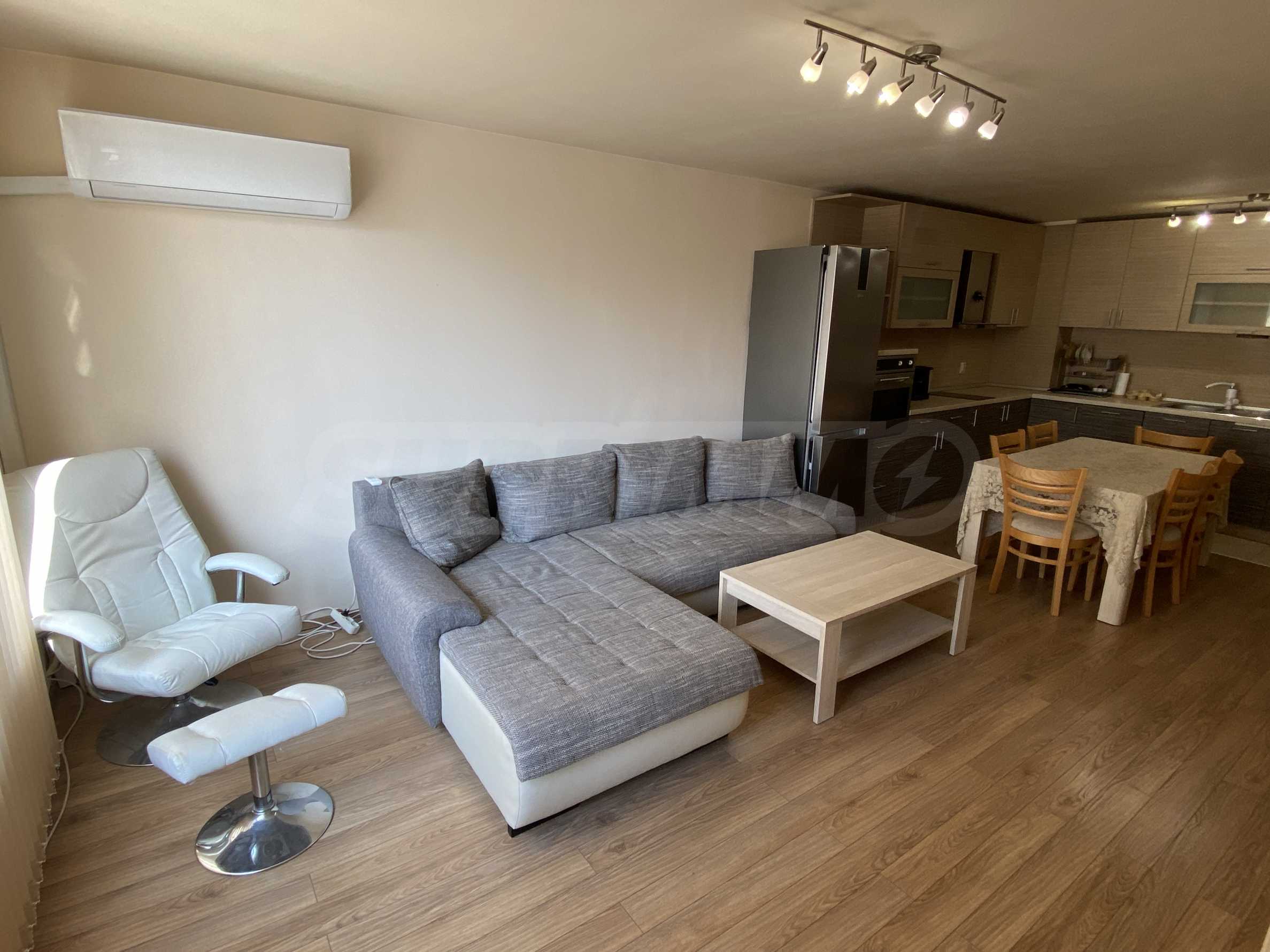 Жилището е обзаведено в съвременен стил и боядисано в топли тонове, които създават приятна и уютна атмосфера. Изпълнението е с качествени материали — ПВЦ дограма, ламиниран паркет на пода и стени, боядисани с латекс. Сградата разполага с външна и вътрешна топлоизолация, което допринася за енергийна ефективност и поддържане на комфортна температура през цялата година. Отоплението и охлаждането се осигуряват посредством климатик.