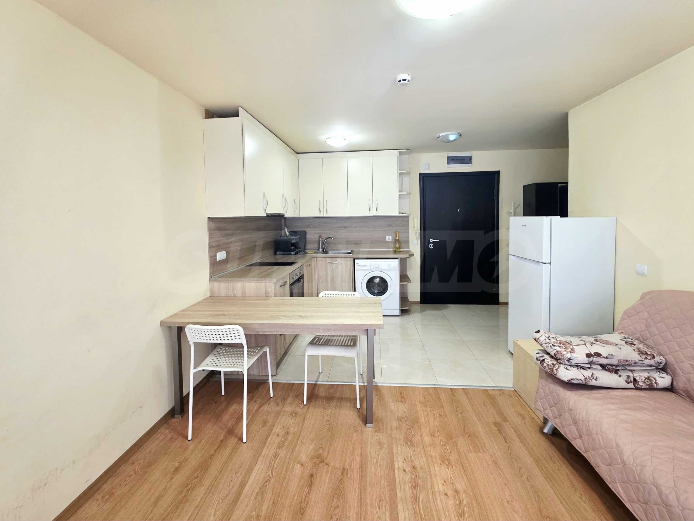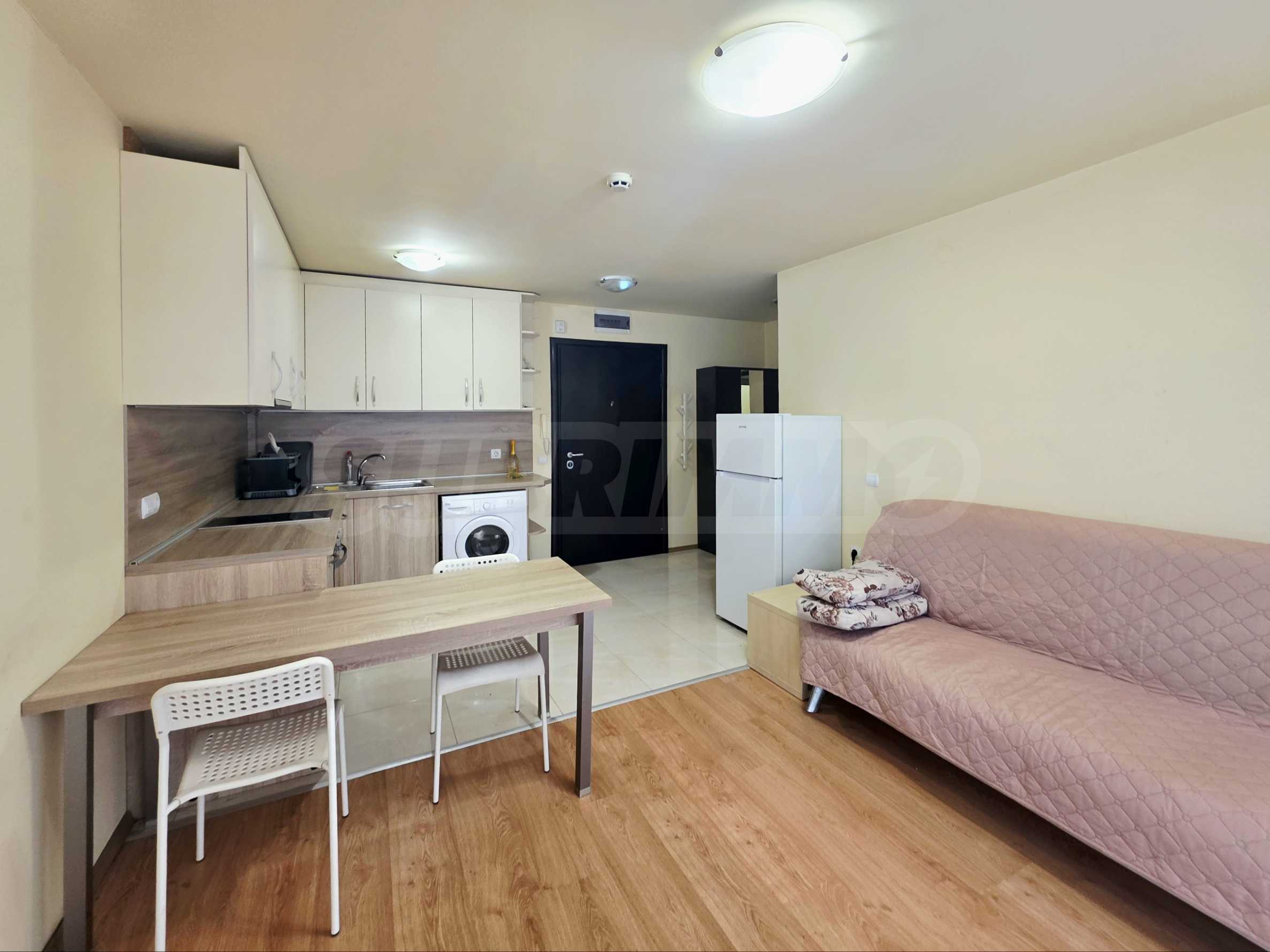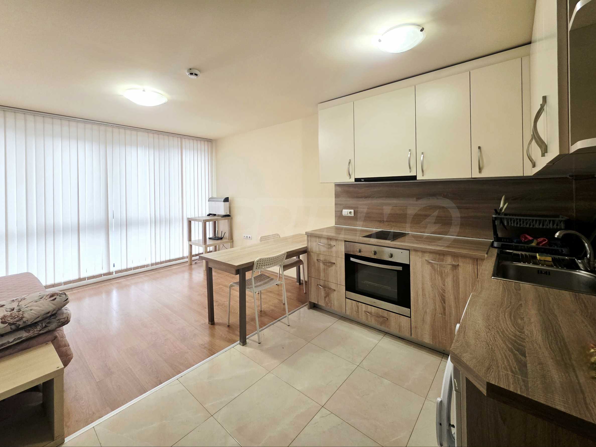 Апартаментът е компактен, намира се на втори жилищен етаж от осем. Жилищната площ на имота се разпределя между антре, хол с кухненски бокс и трапезария, самостоятелна спалня и баня с тоалетна. Изложението на жилището е север. Отоплението и топлата вода са на ток.