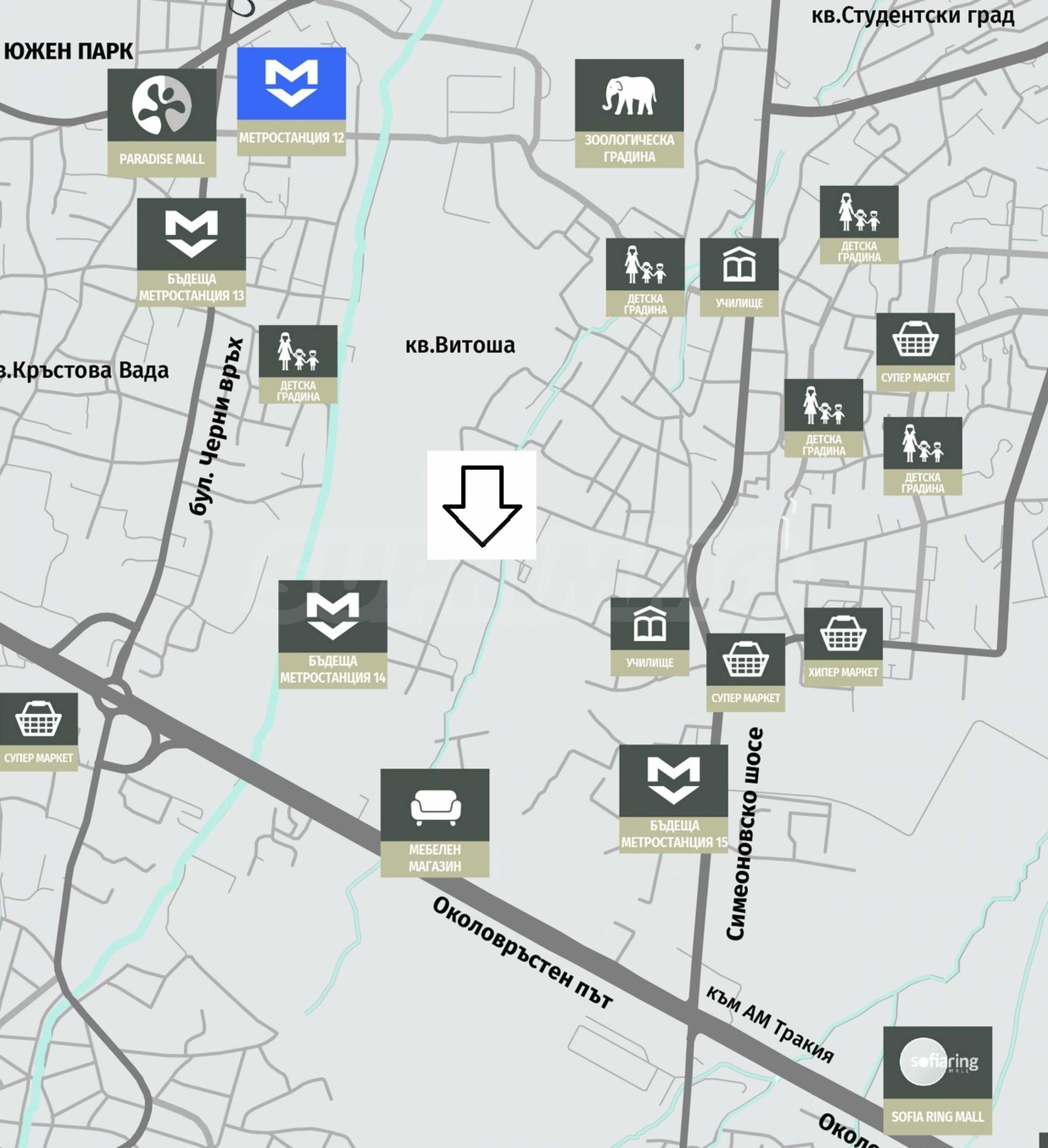 Имотът е разположен на пешеходно разстояние от бъдеща метростанция.