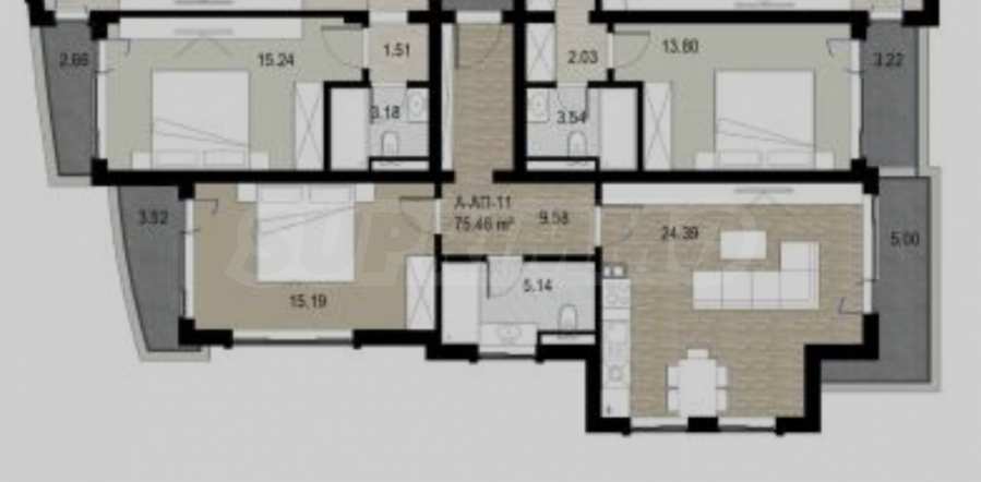 • всекидневна с кухня и трапезария – 24 кв.м;