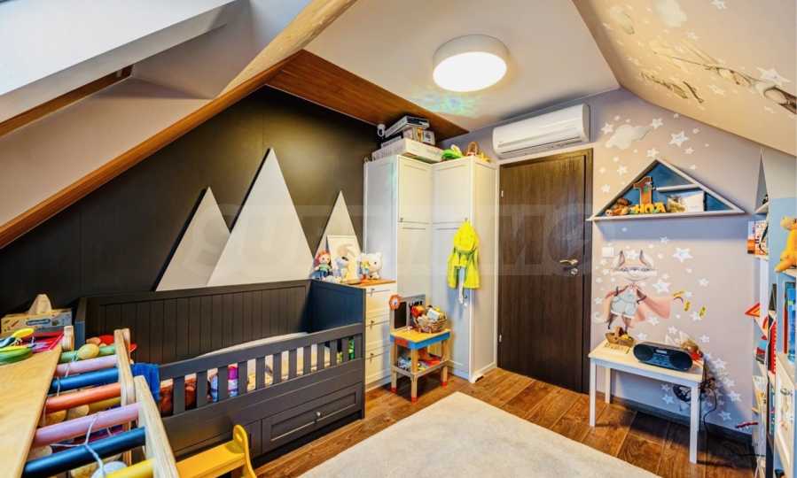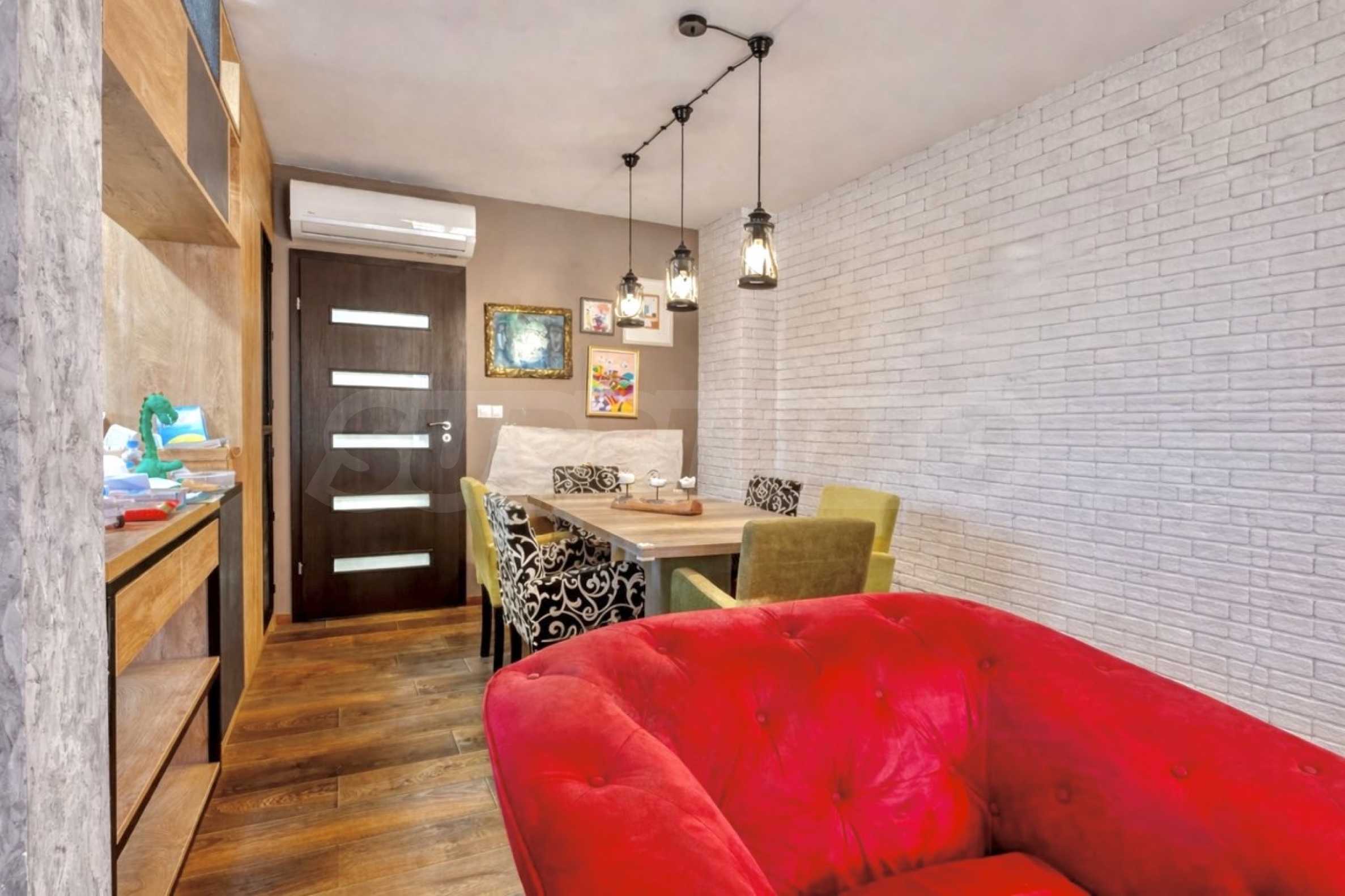 Имотът впечатлява с отлично функционално разпределение, изчистени линии и внимателно подбрани материали, създаващи усещане за стил, комфорт и завършеност. Изложението юг/югозапад осигурява естествена светлина през целия ден и допринася за топлата и уютна атмосфера в жилището. Интериорът е проектиран с внимание към детайлите и използването на първокласни материали.
