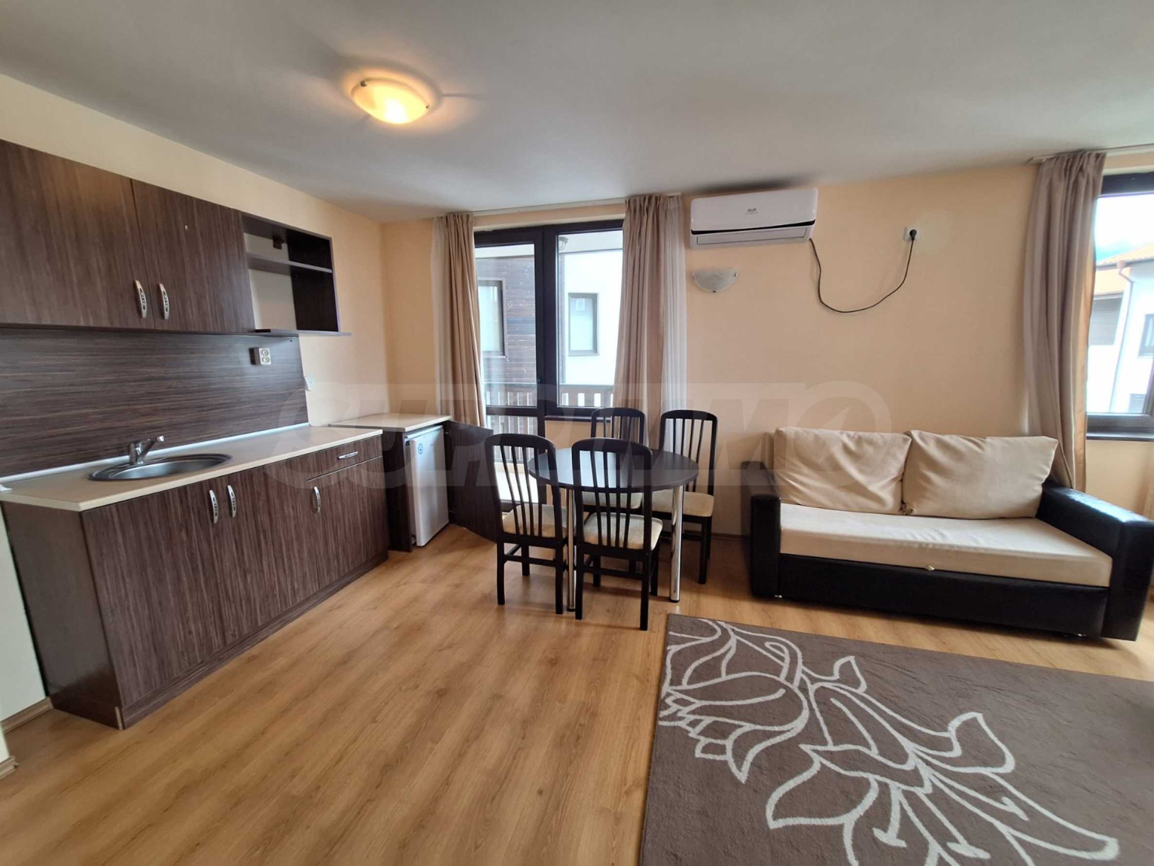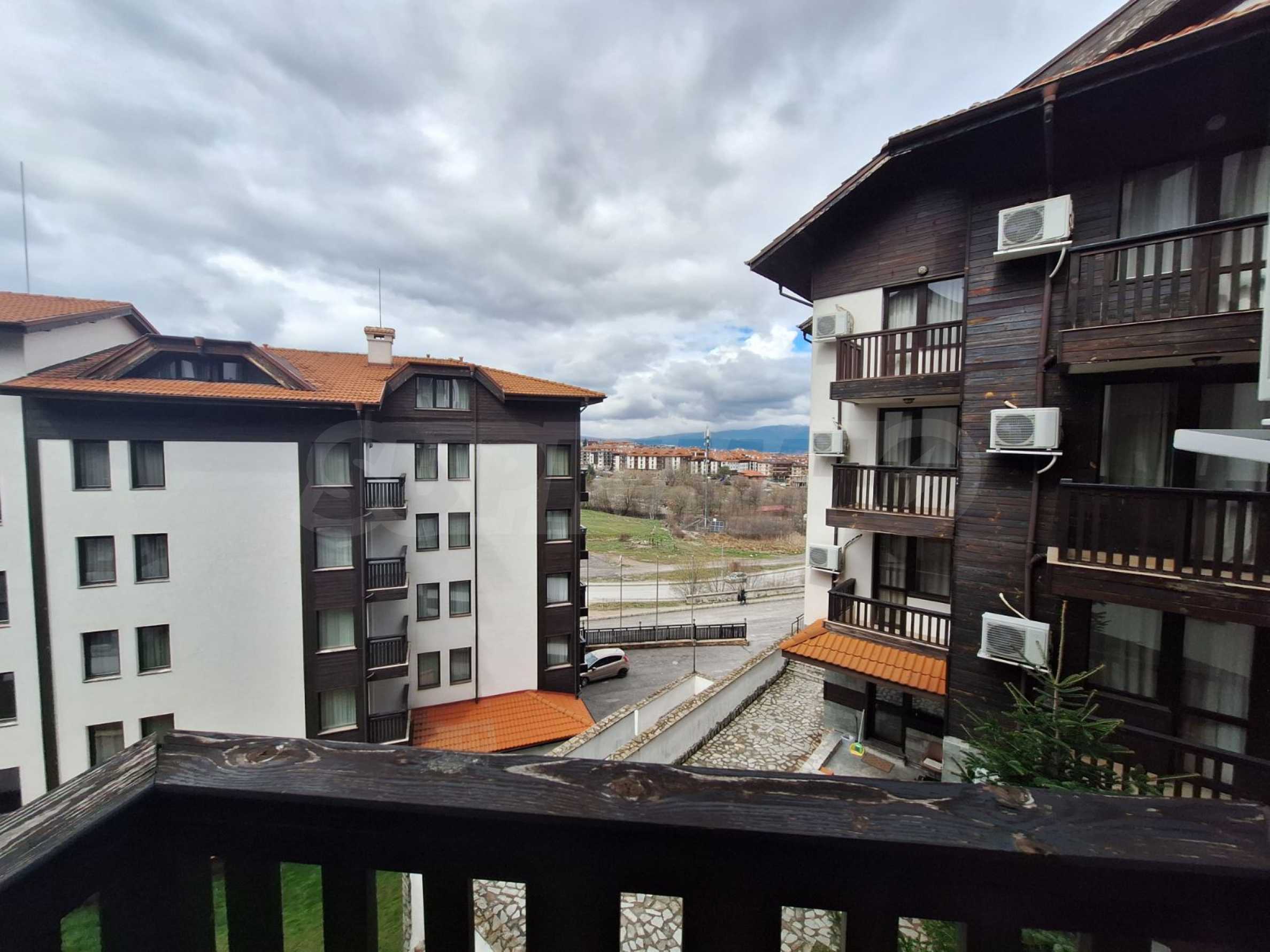 Представяме обзаведен двустаен апарртамент в хотелски комплекс, разположен в подножието на Пирин планина, само на няколко минути от кабинковия лифт и ски пистите на Банско.