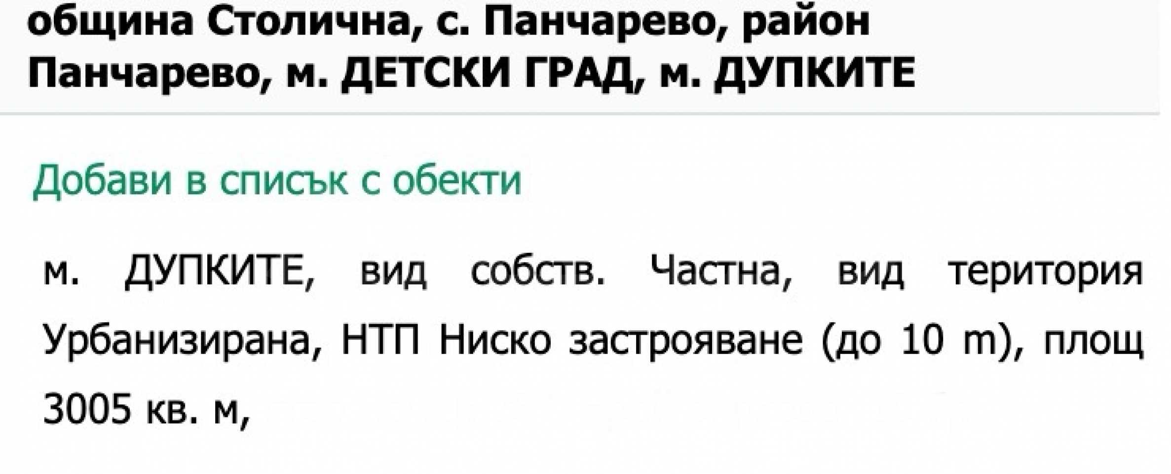 Имотът се намира в непосредствена близост до Тренировъчната база на ЦСКА и в район с активно ново строителство и засилен инвестиционен интерес.