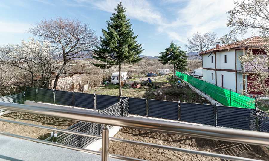 Дворът е истинско предимство – с осигурено място за паркиране в имота и ролетна врата за лесен достъп и сигурност. От имота се разкрива прекрасна гледка, която допринася за усещането за уединение и релакс далеч от градския шум.