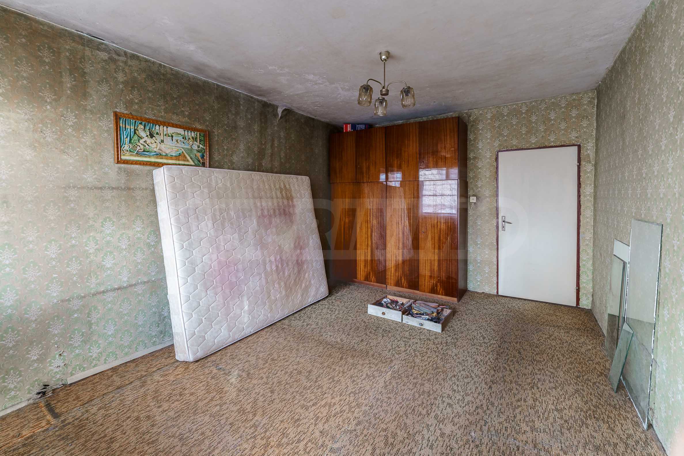 Панелен апартамент с функционално разпределение, състоящ се от две самостоятелни спални, отделна кухня и просторна всекидневна, баня с тоалетна, отделна тоалетна и коридор. Жилището е в състояние за основен ремонт, което дава възможност за цялостно обновяване по индивидуален проект. Има потенциал за преустройство и обособяване на модерен дневен тракт.