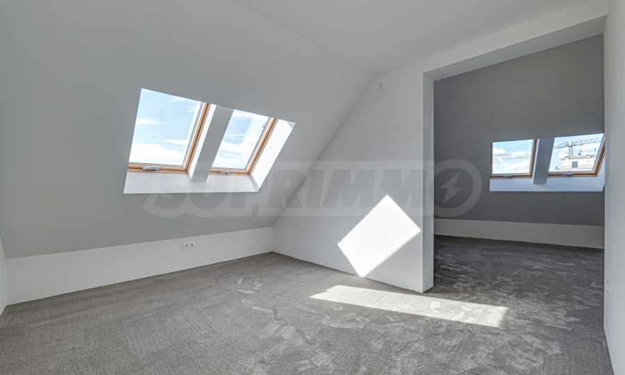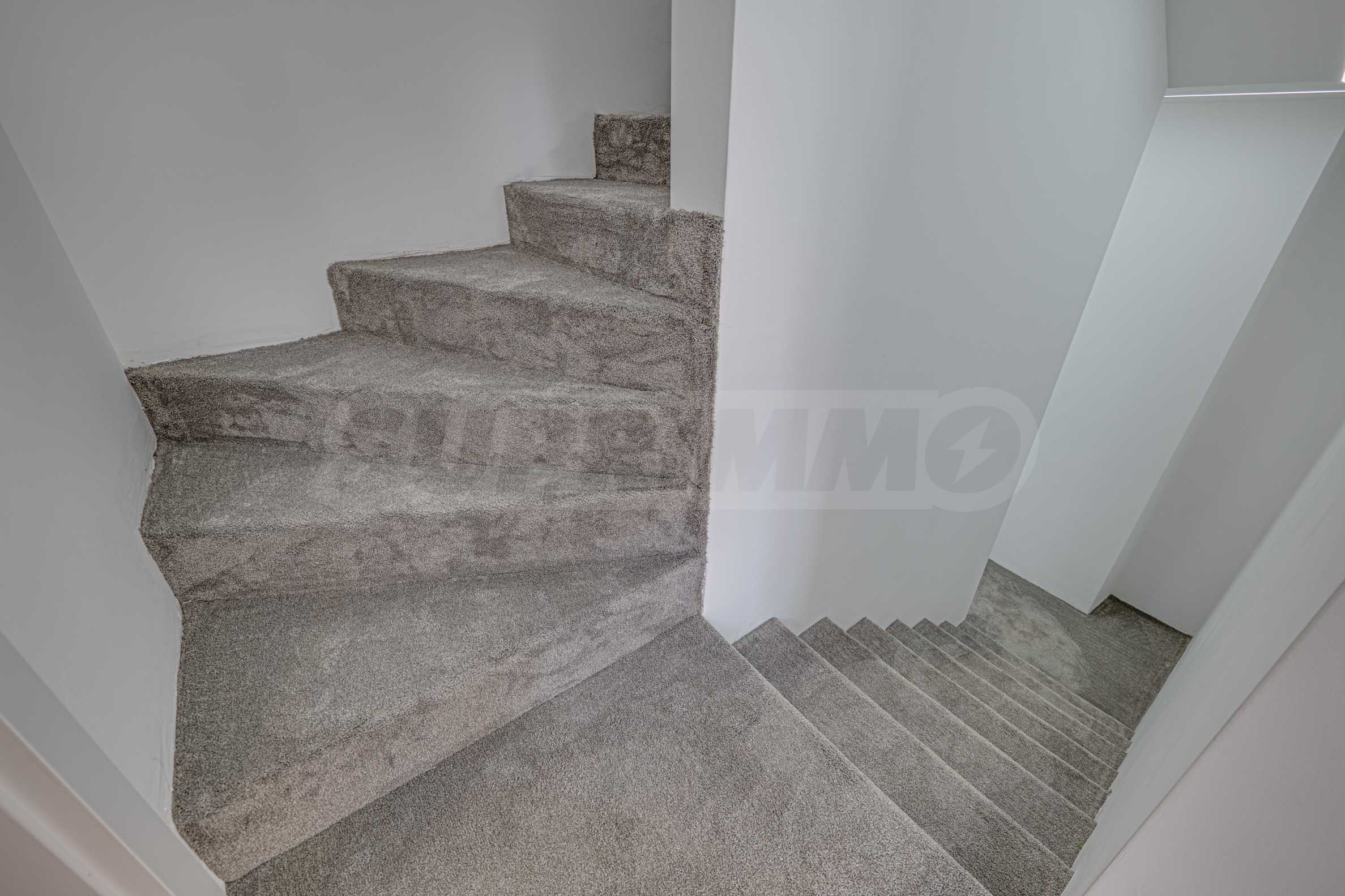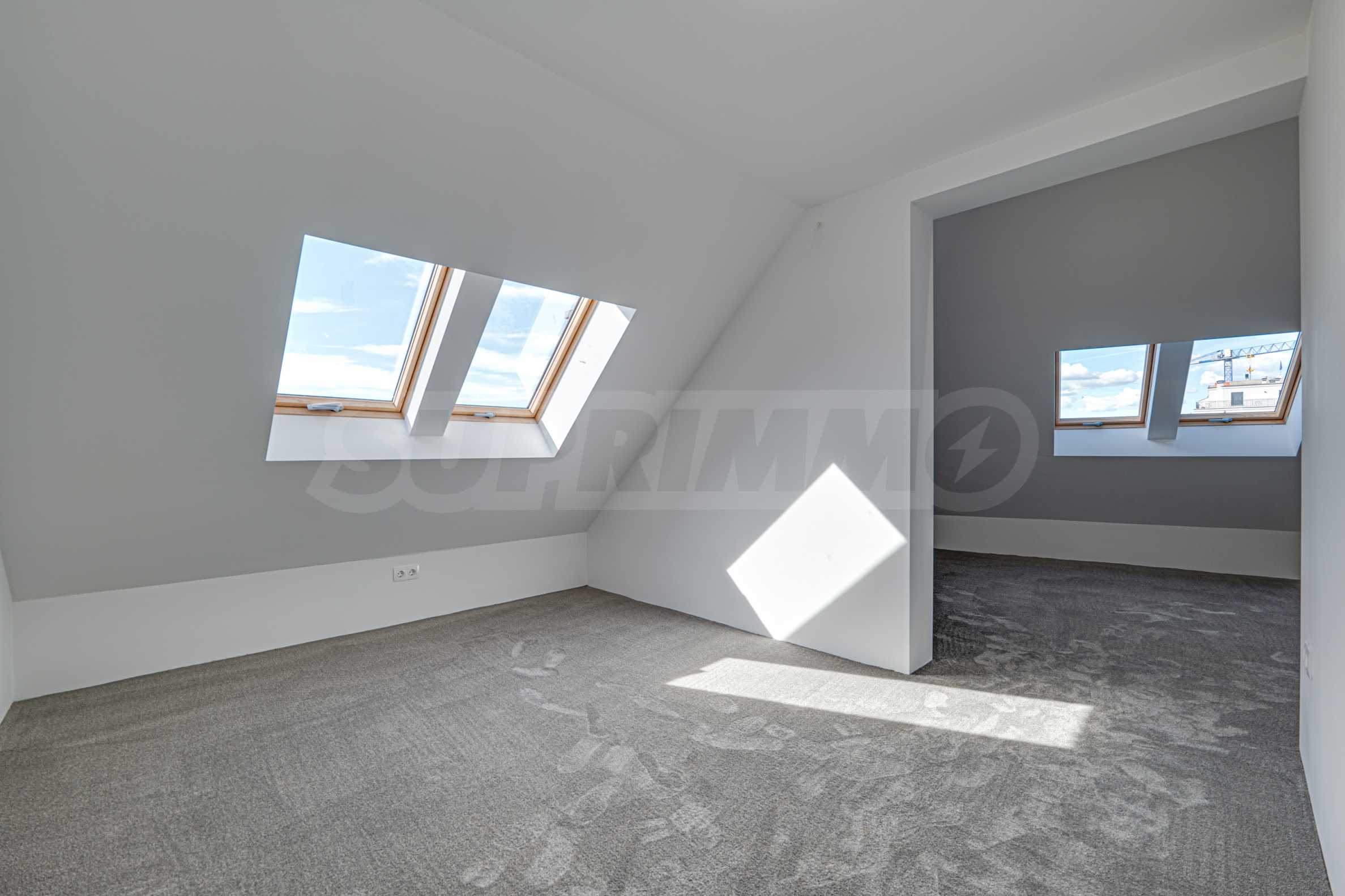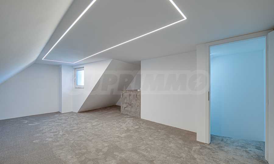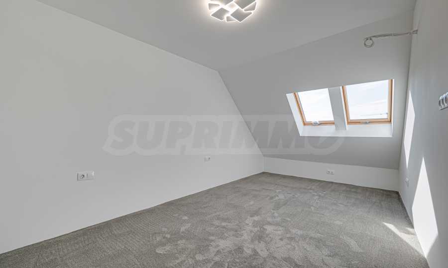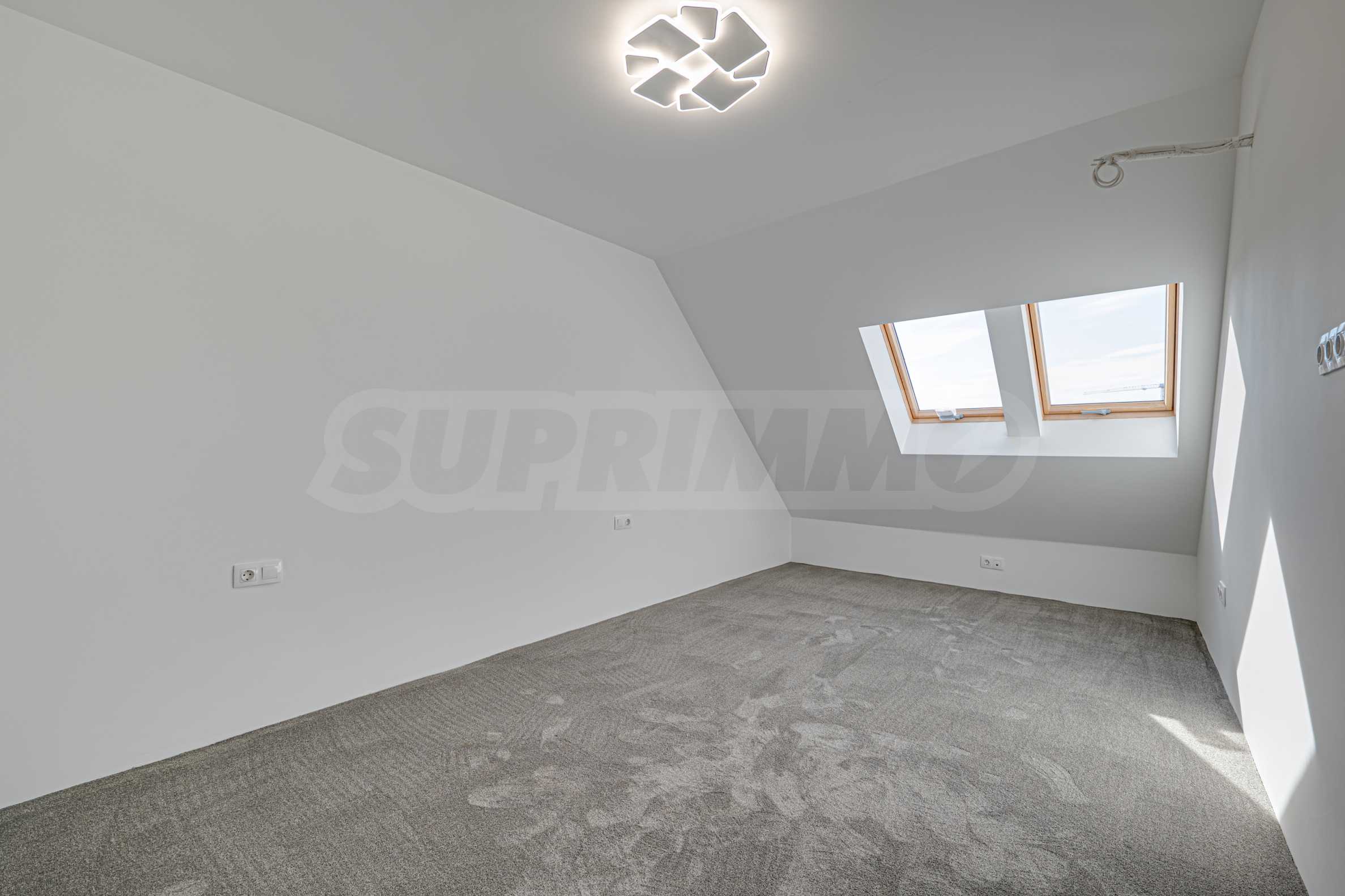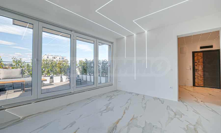Жилището е ситуирано на последните три етажа от нова сграда с асансьор, поддържани общи части и панорамна голяма тераса. Изложението на жилището е изток/юг, откъдето се разкриват прекрасни панорамни гледки. Имотът е изпълнен със следните довършителни работи: