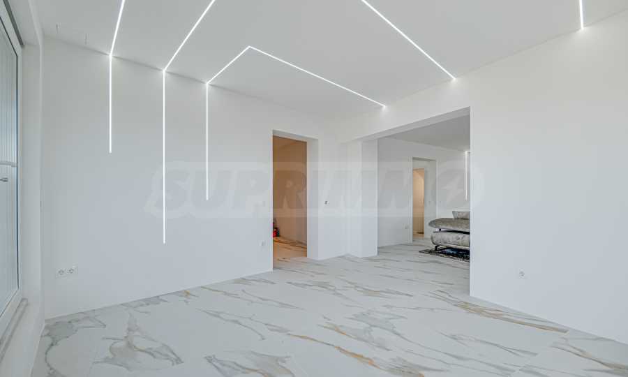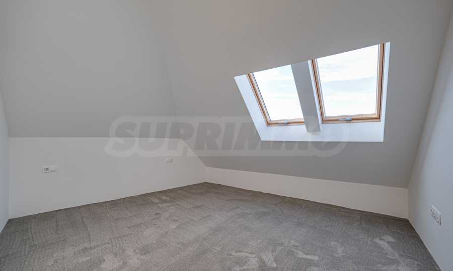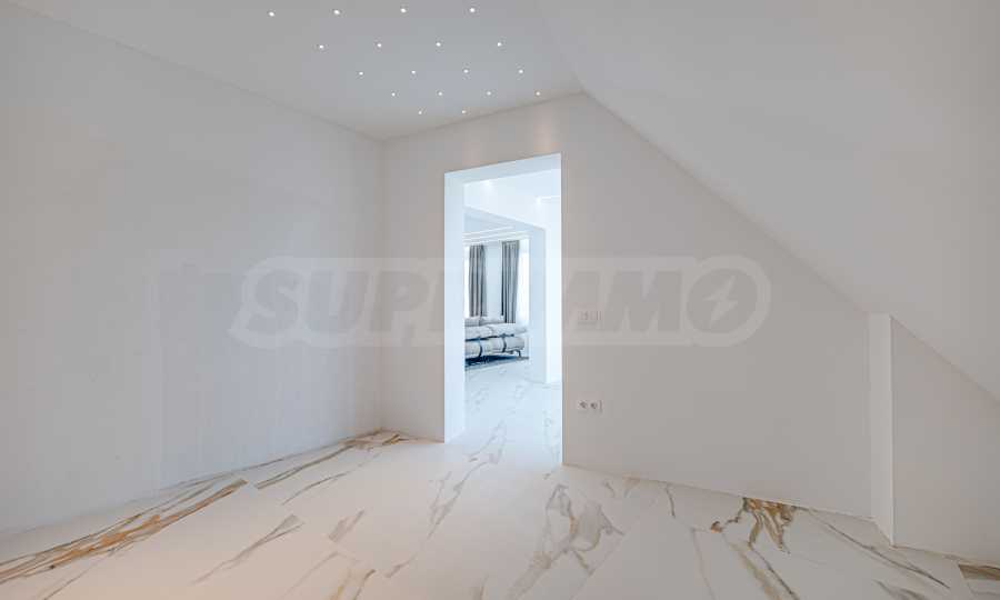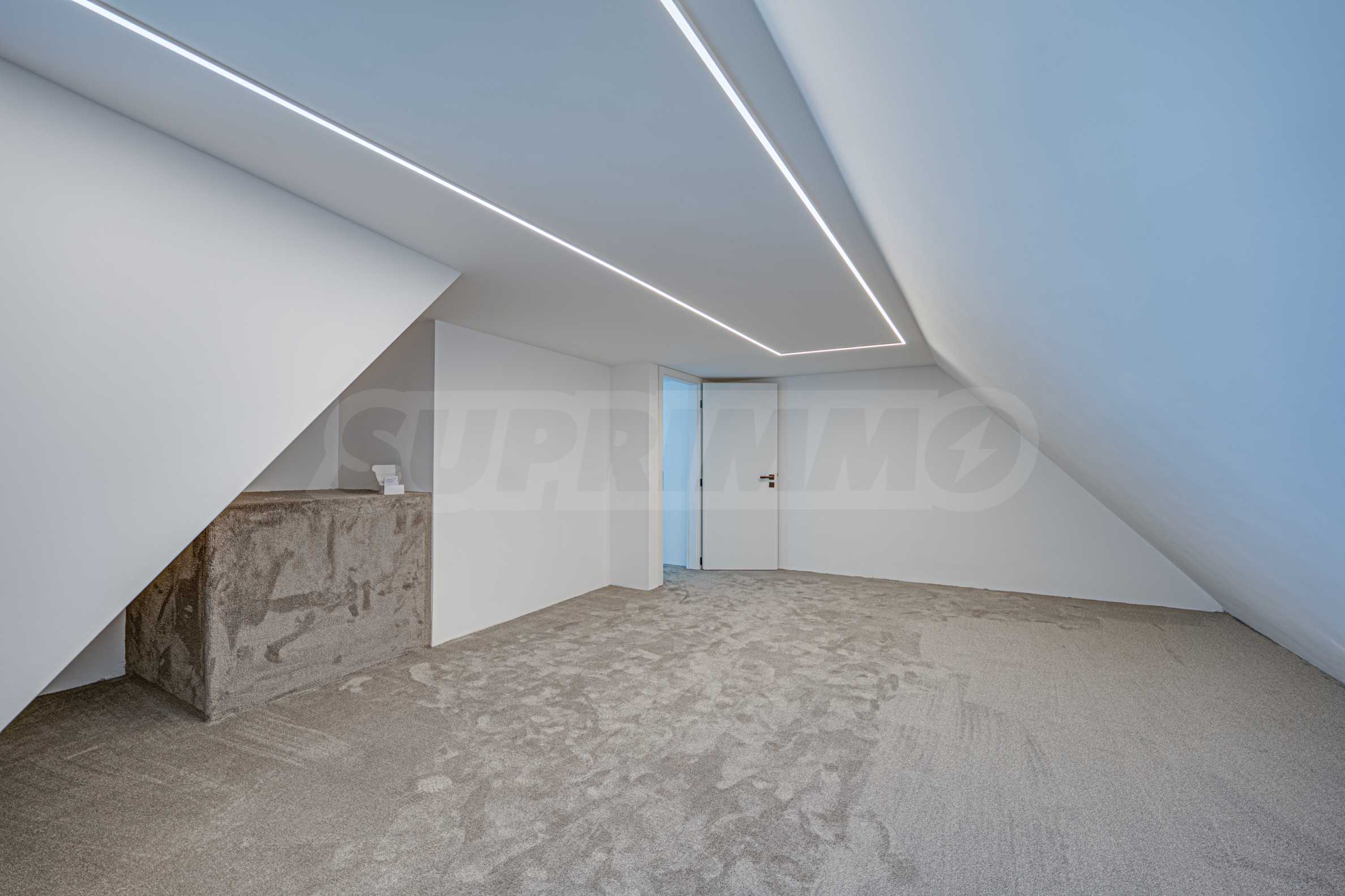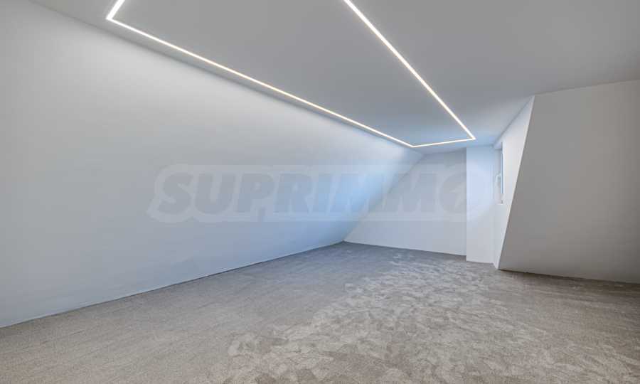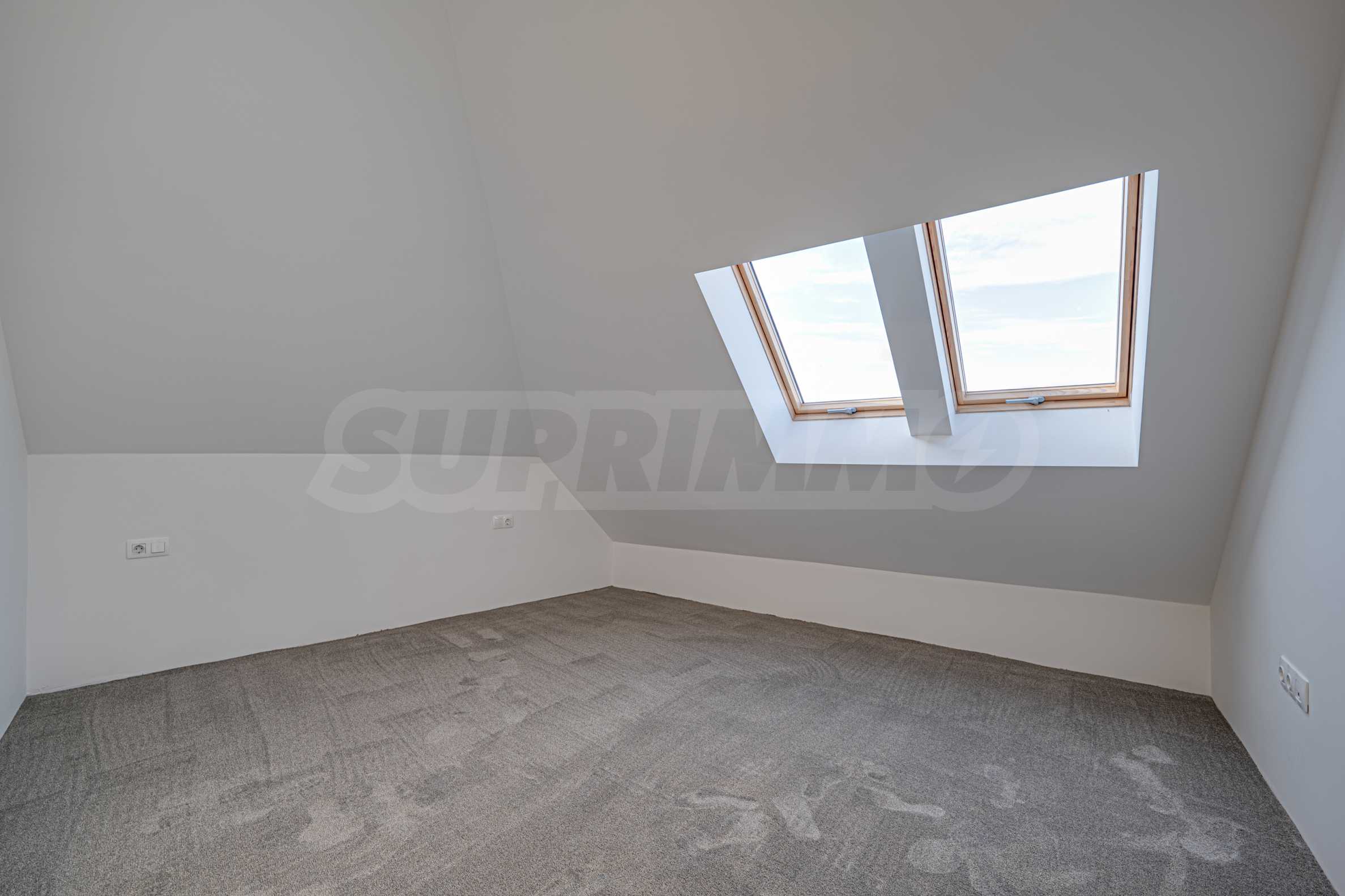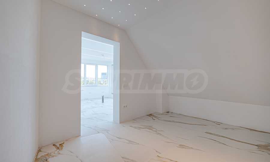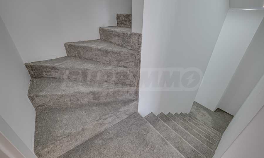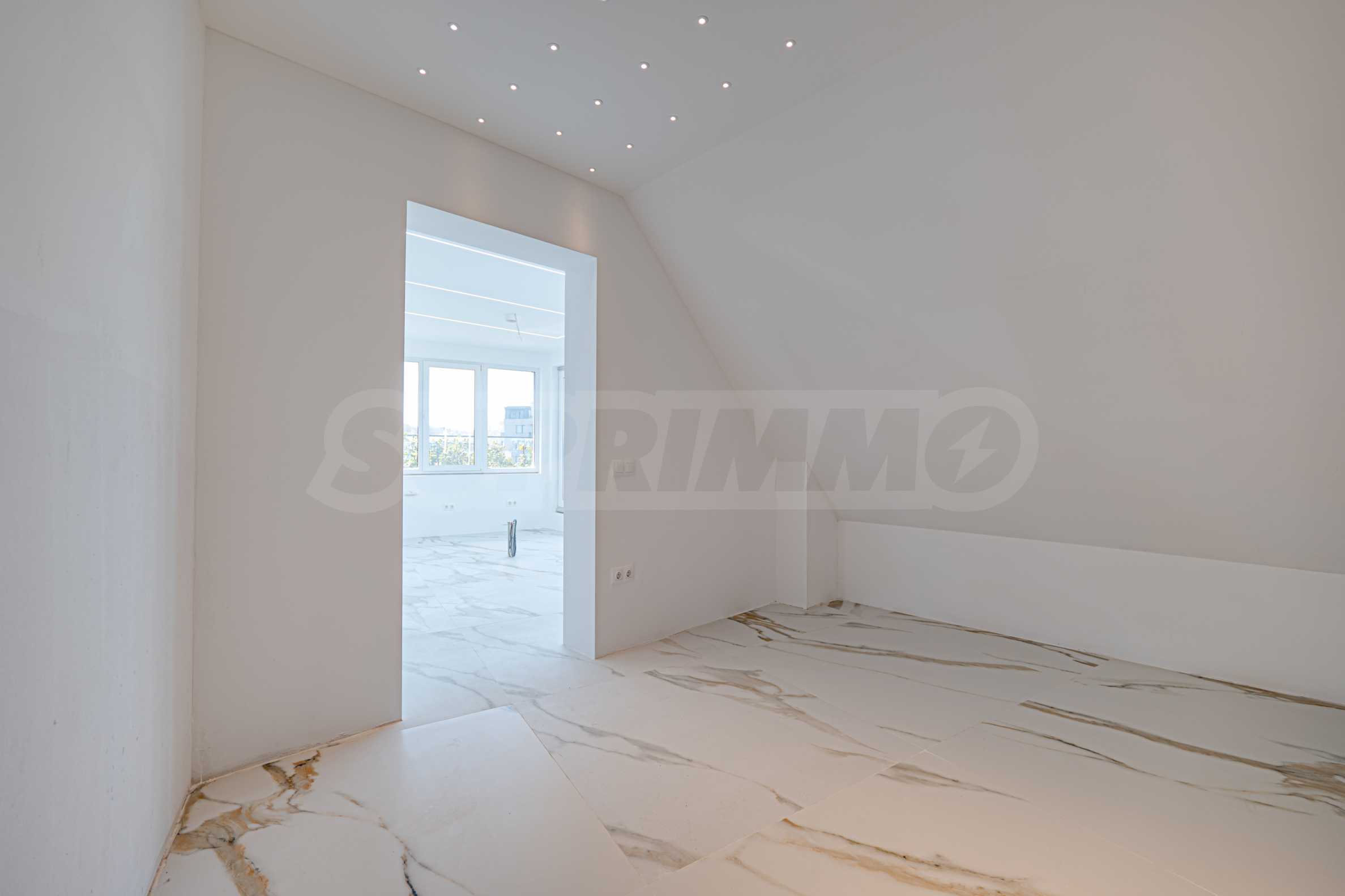 Жилището е ситуирано на последните три етажа от нова сграда с асансьор, поддържани общи части и панорамна голяма тераса. Изложението на жилището е изток/юг, откъдето се разкриват прекрасни панорамни гледки. Имотът е изпълнен със следните довършителни работи: