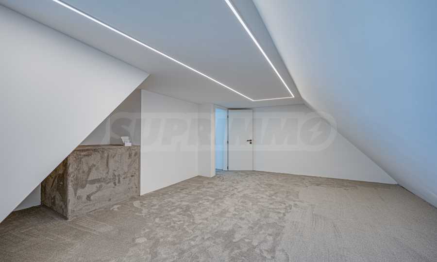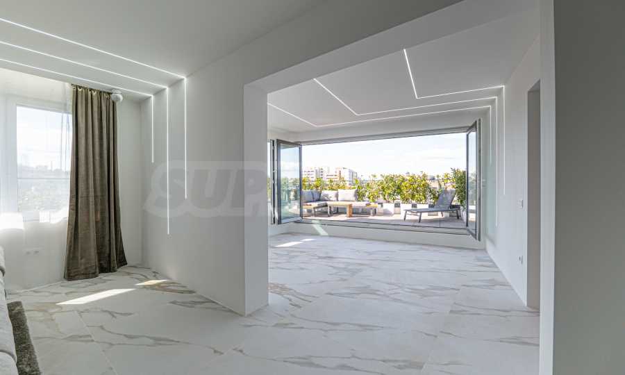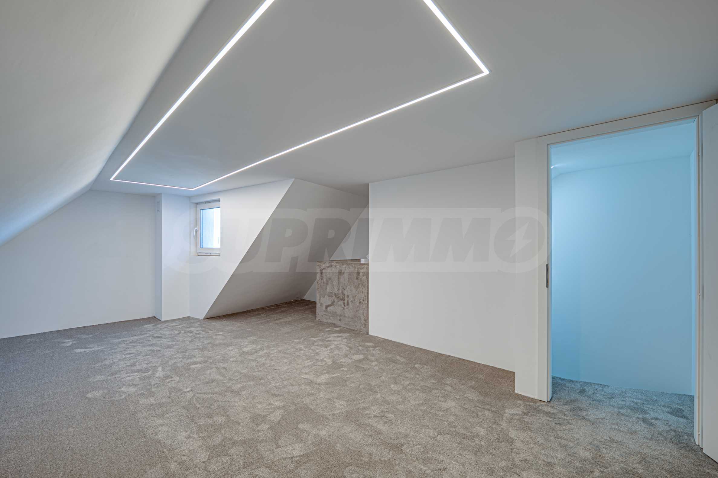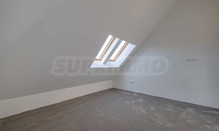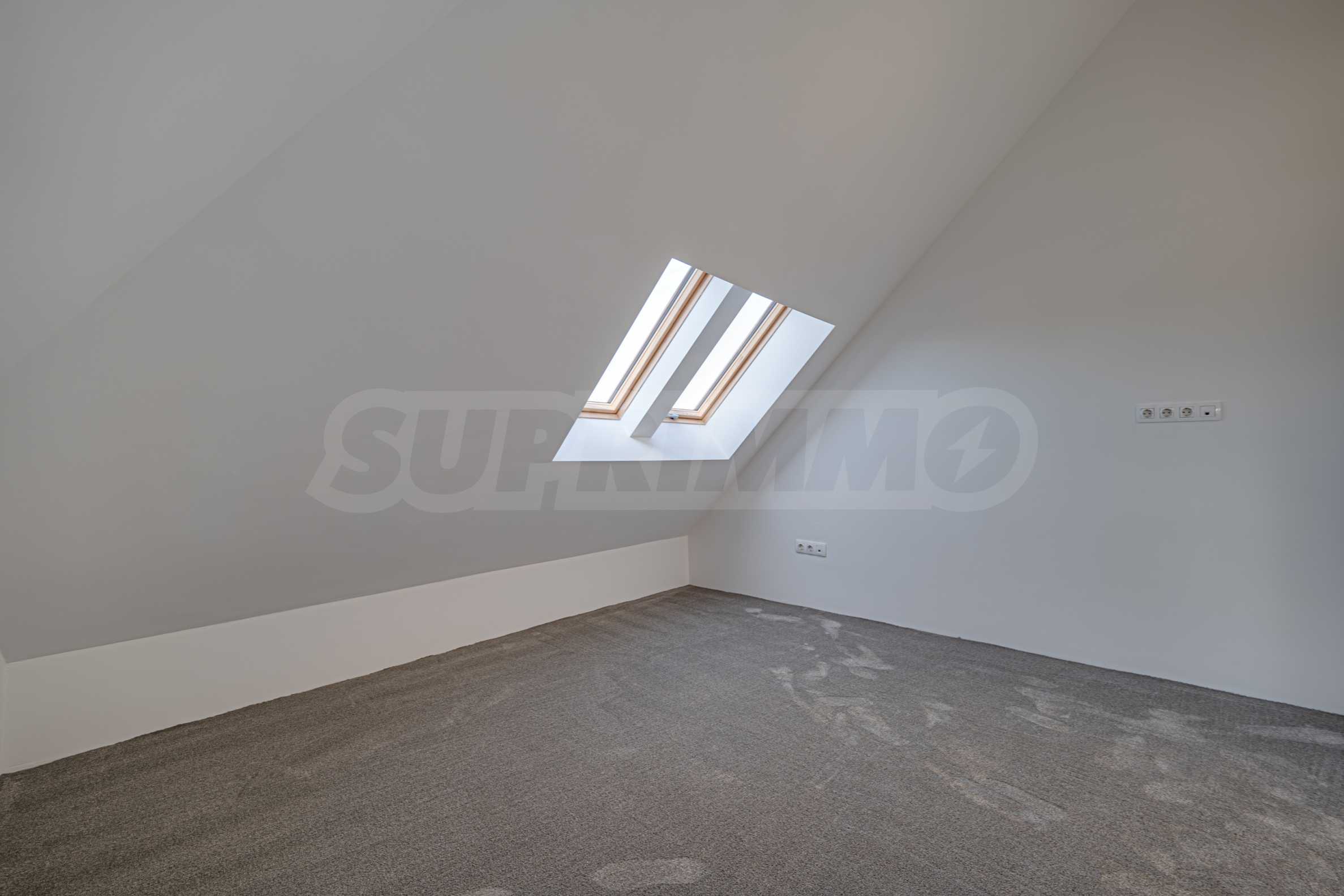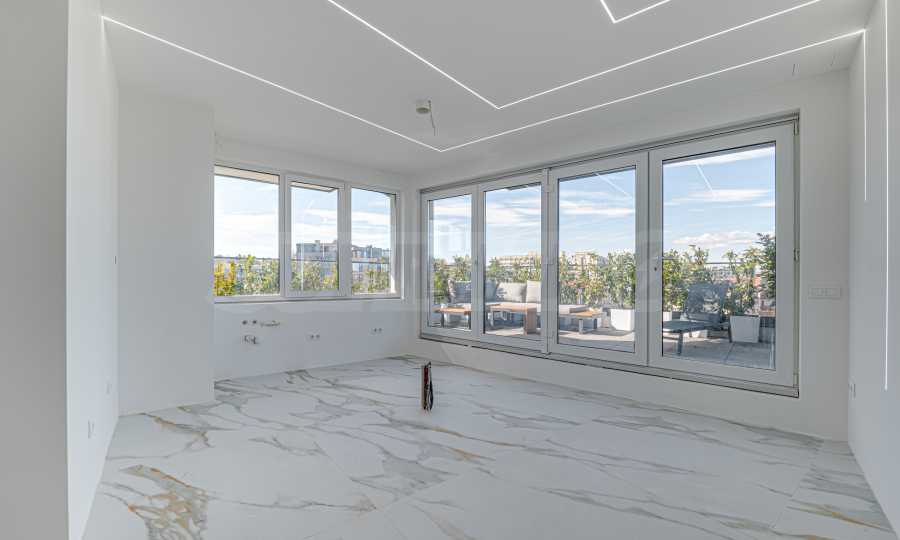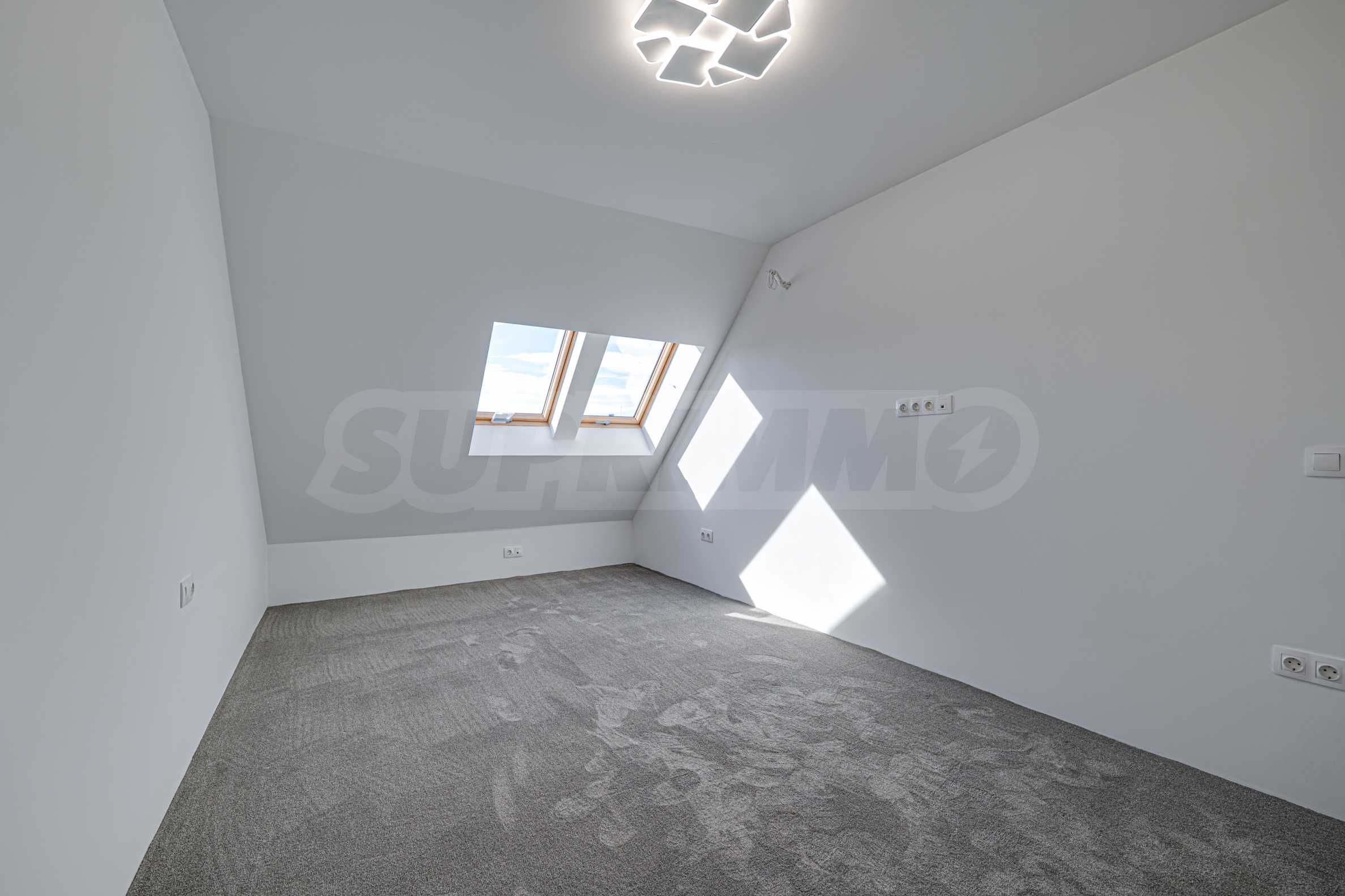 Жилището е ситуирано на последните три етажа от нова сграда с асансьор, поддържани общи части и панорамна голяма тераса. Изложението на жилището е изток/юг, откъдето се разкриват прекрасни панорамни гледки. Имотът е изпълнен със следните довършителни работи: