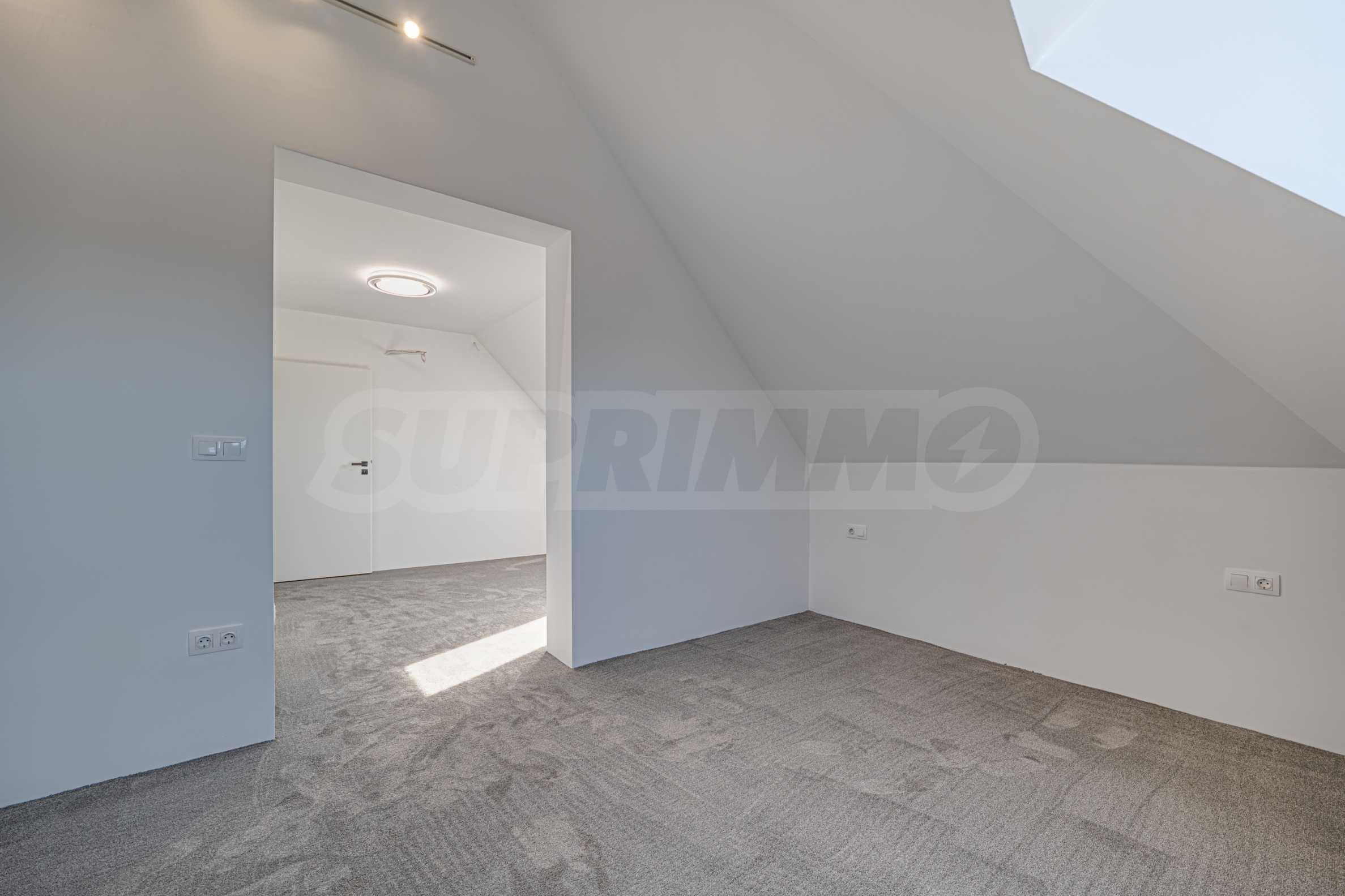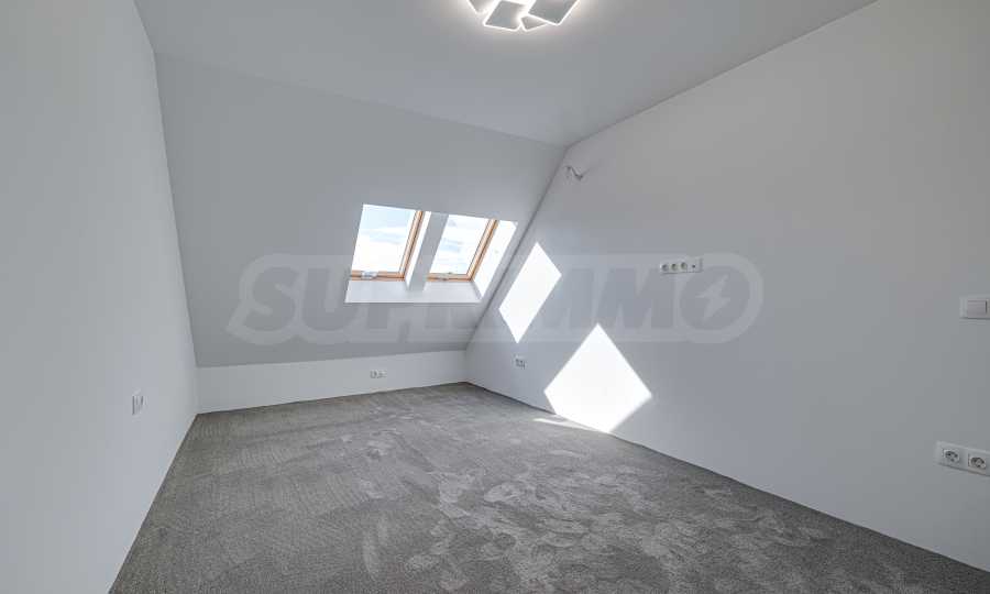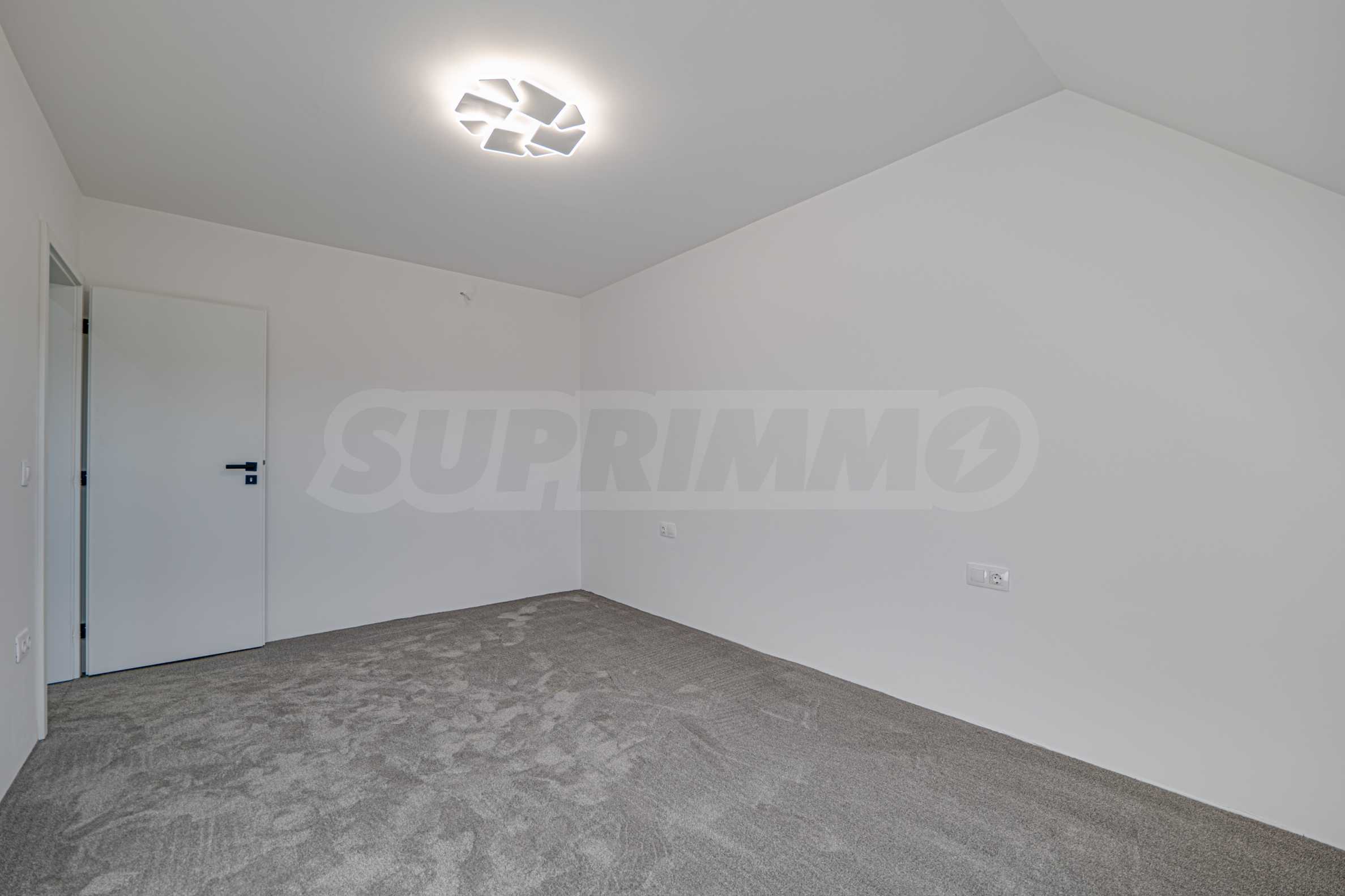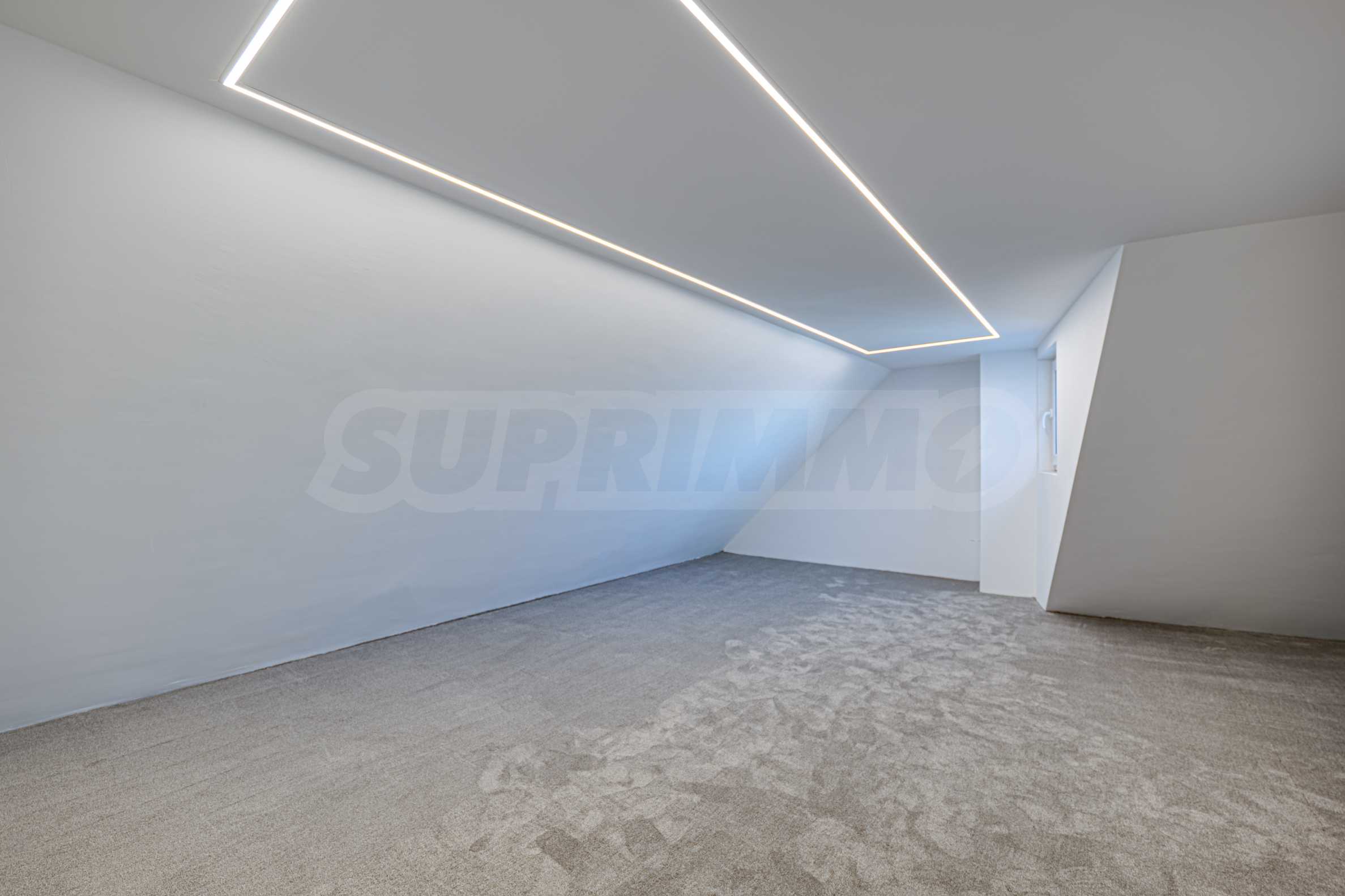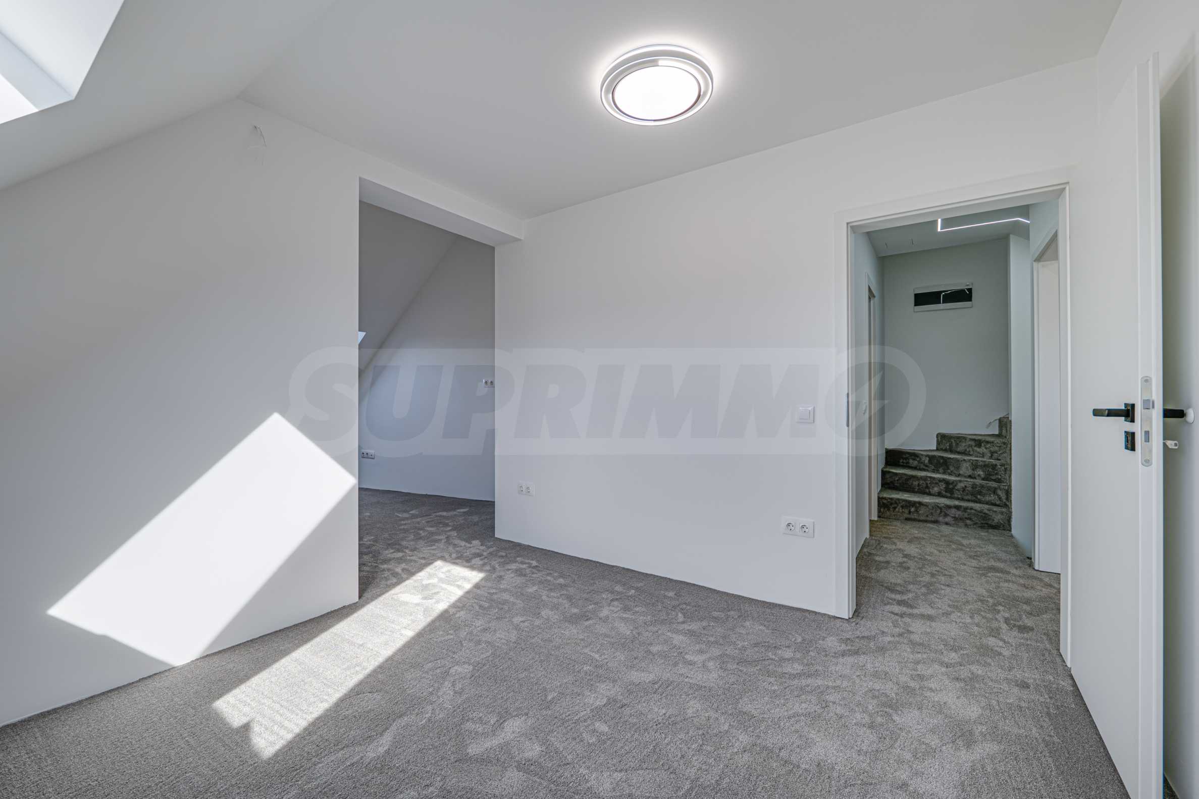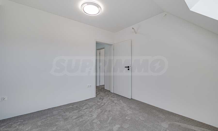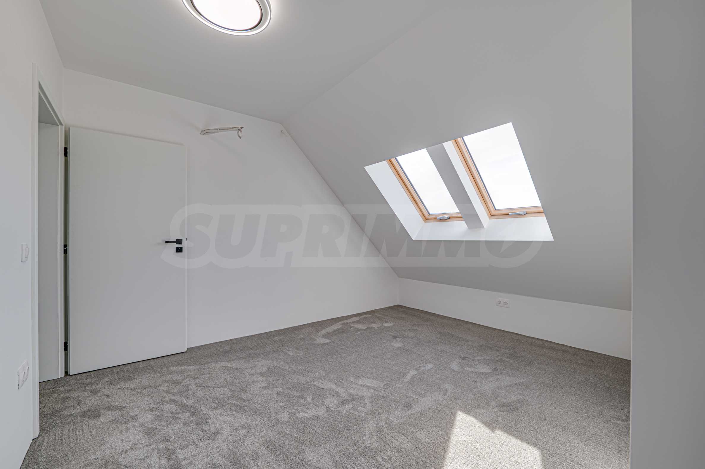 Жилището е ситуирано на последните три етажа от нова сграда с асансьор, поддържани общи части и панорамна голяма тераса. Изложението на жилището е изток/юг, откъдето се разкриват прекрасни панорамни гледки. Имотът е изпълнен със следните довършителни работи: