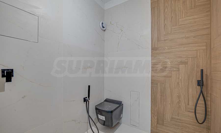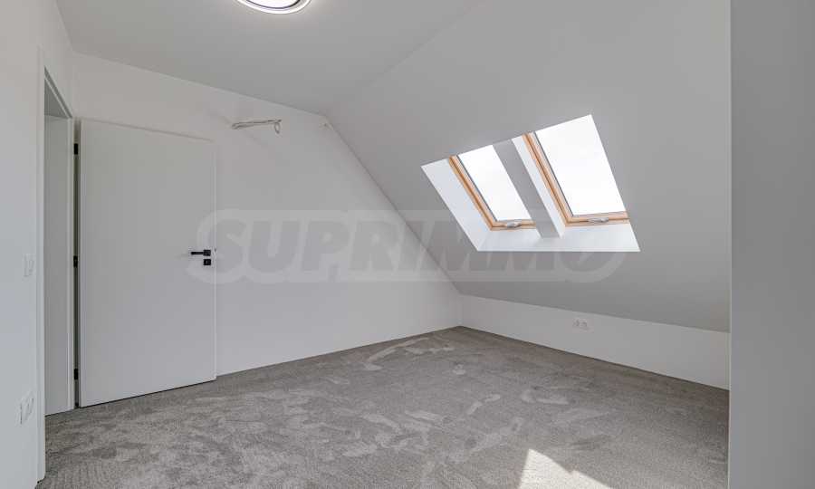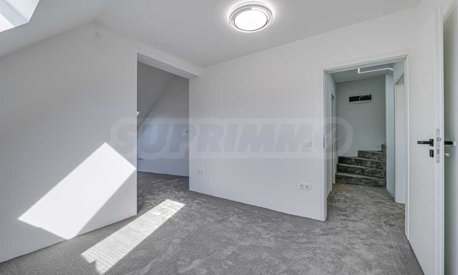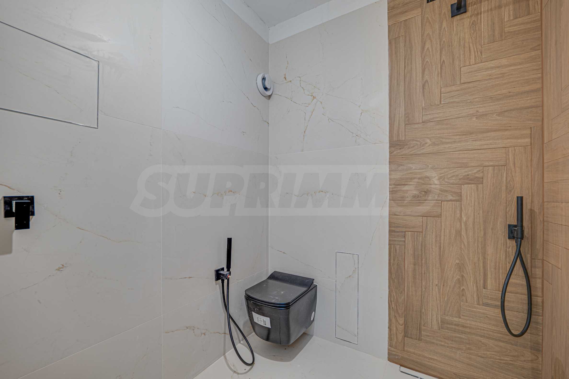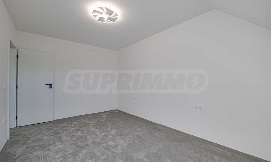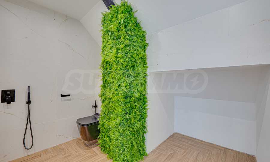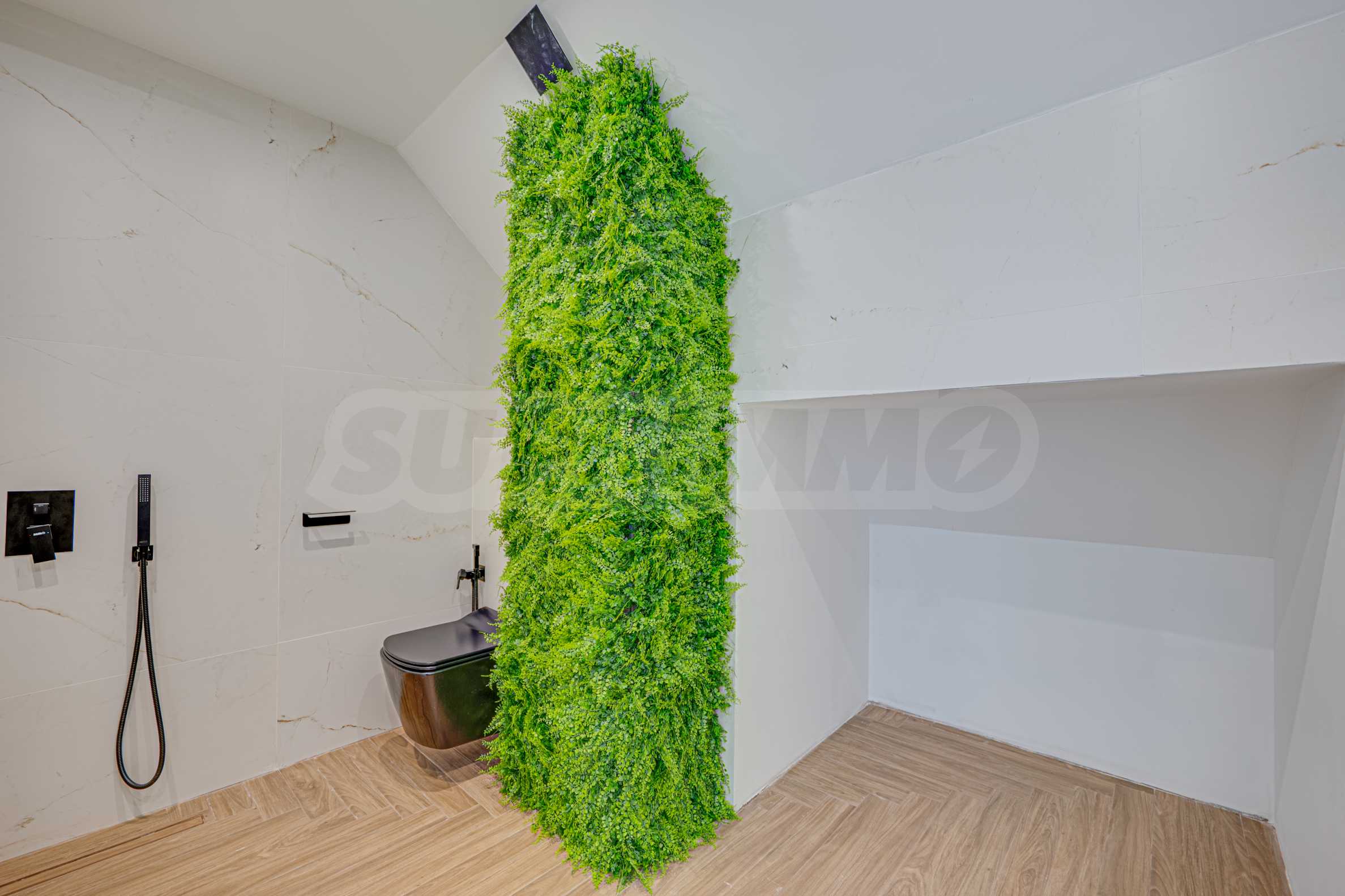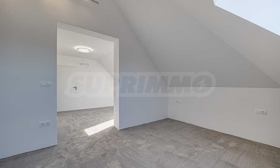 Жилището е ситуирано на последните три етажа от нова сграда с асансьор, поддържани общи части и панорамна голяма тераса. Изложението на жилището е изток/юг, откъдето се разкриват прекрасни панорамни гледки. Имотът е изпълнен със следните довършителни работи:
