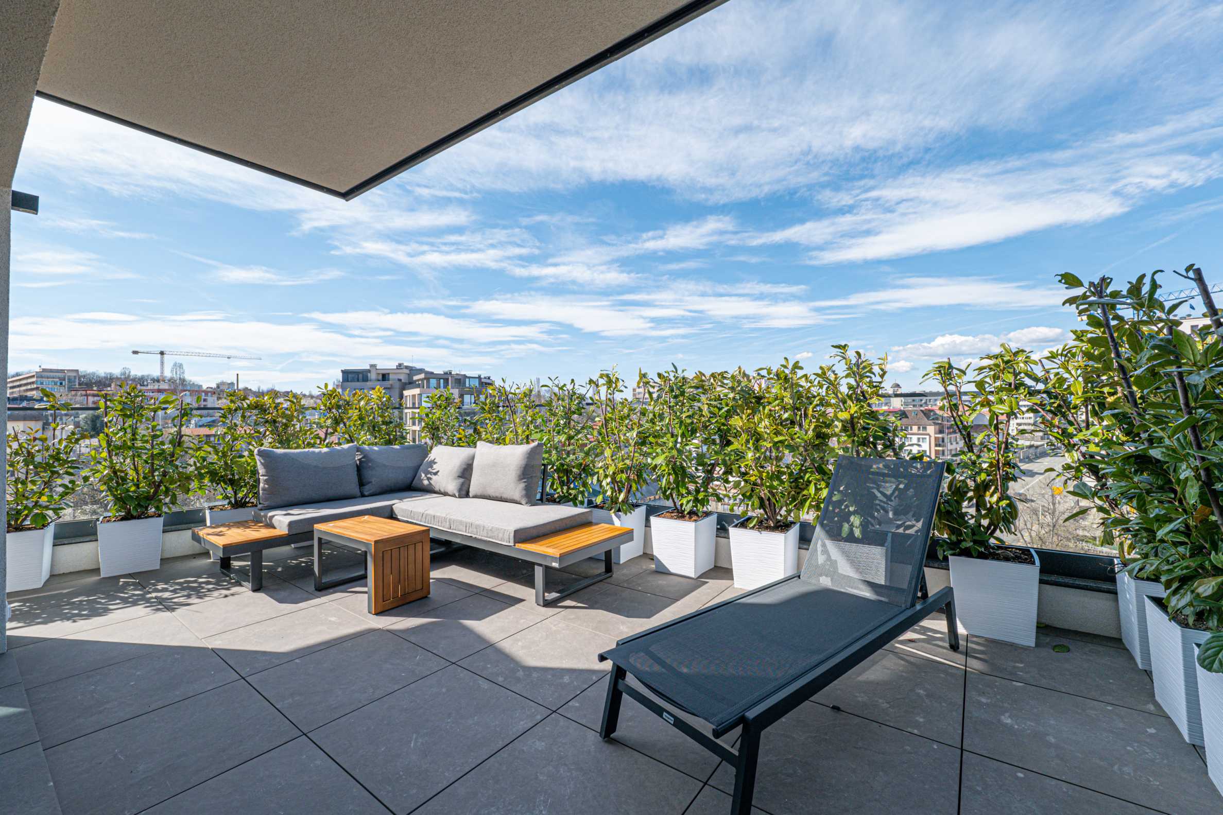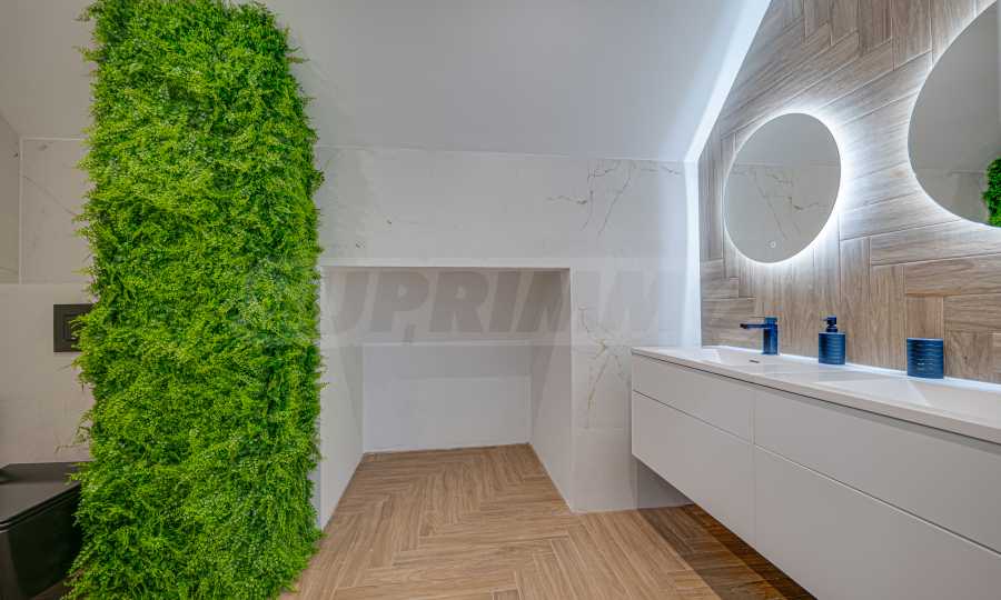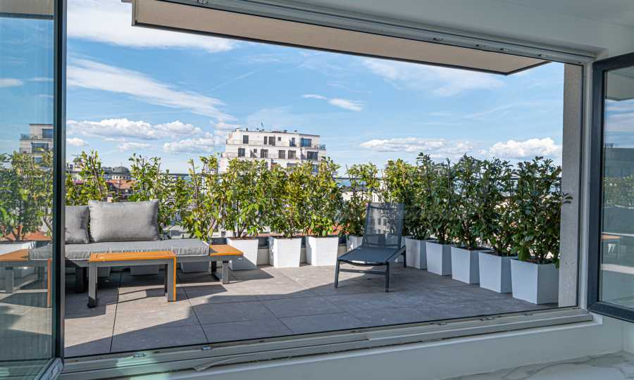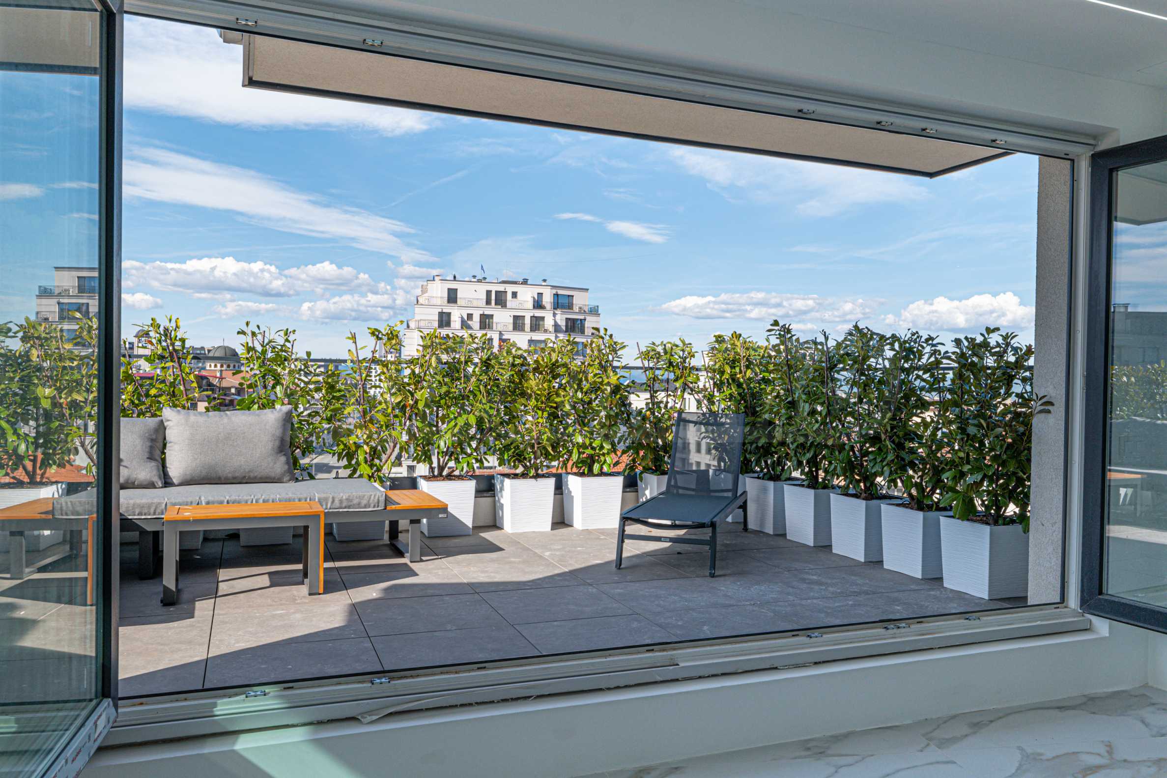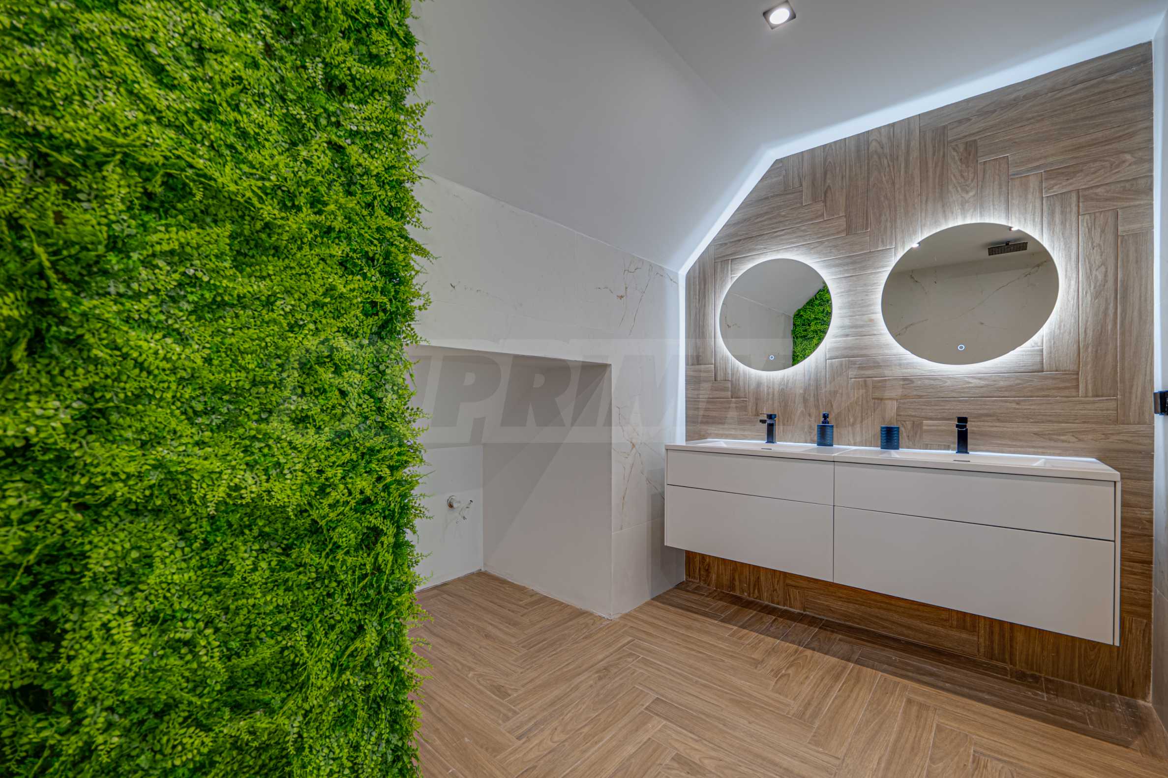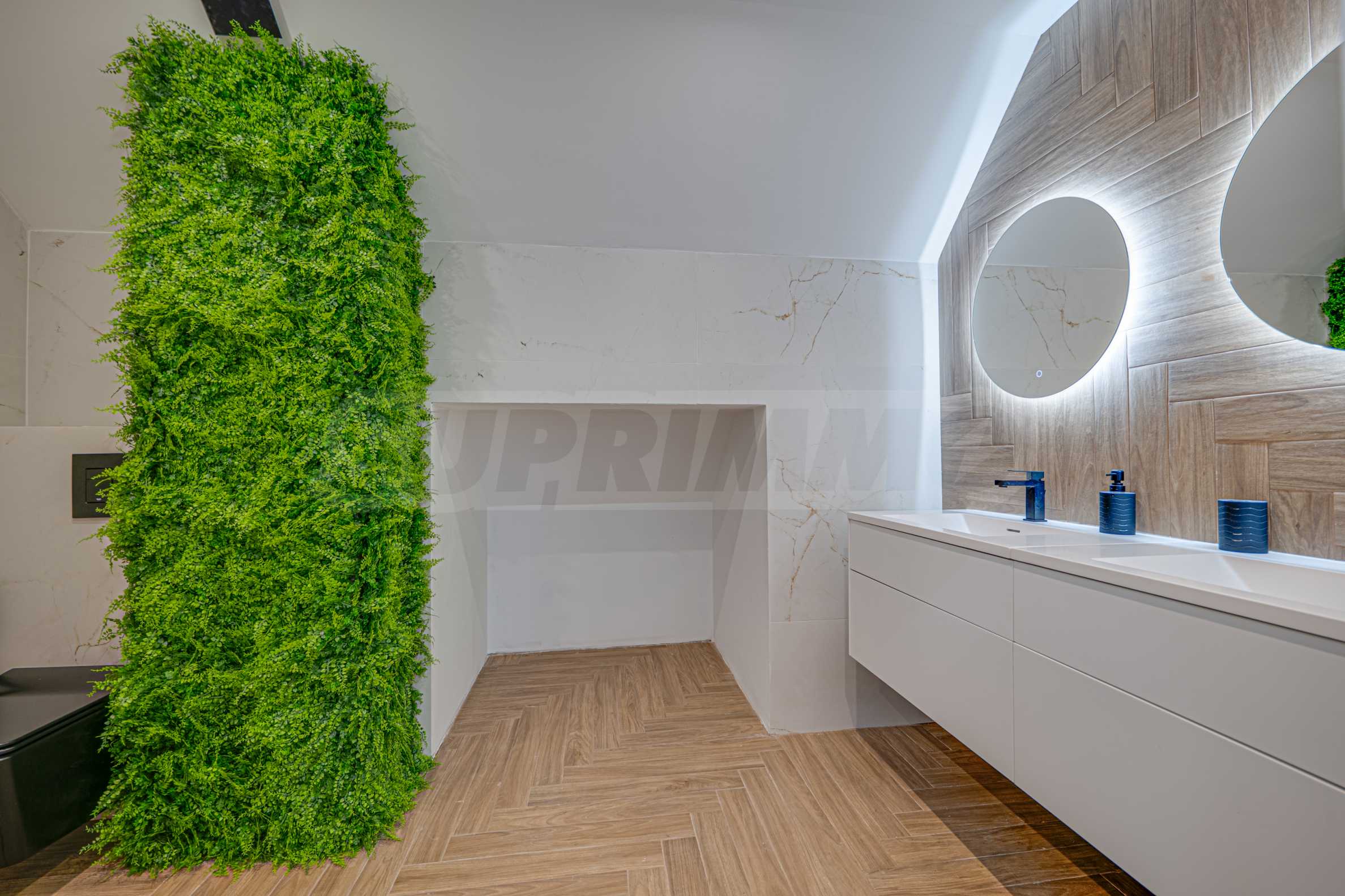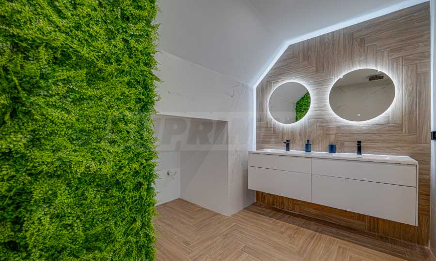 Жилището е ситуирано на последните три етажа от нова сграда с асансьор, поддържани общи части и панорамна голяма тераса. Изложението на жилището е изток/юг, откъдето се разкриват прекрасни панорамни гледки. Имотът е изпълнен със следните довършителни работи: