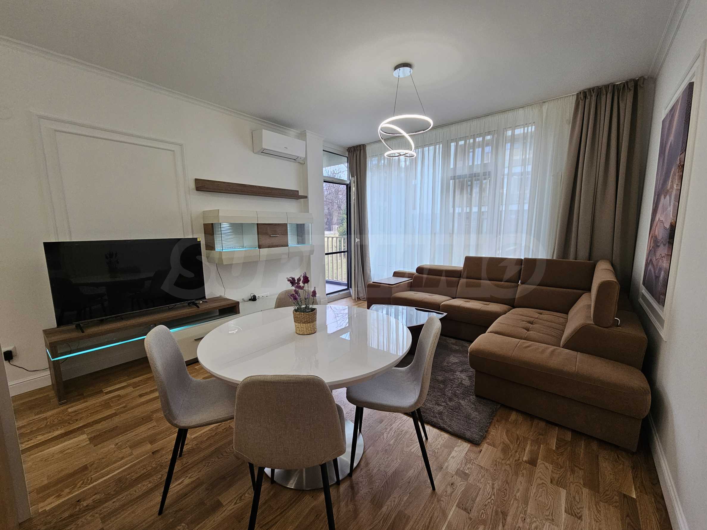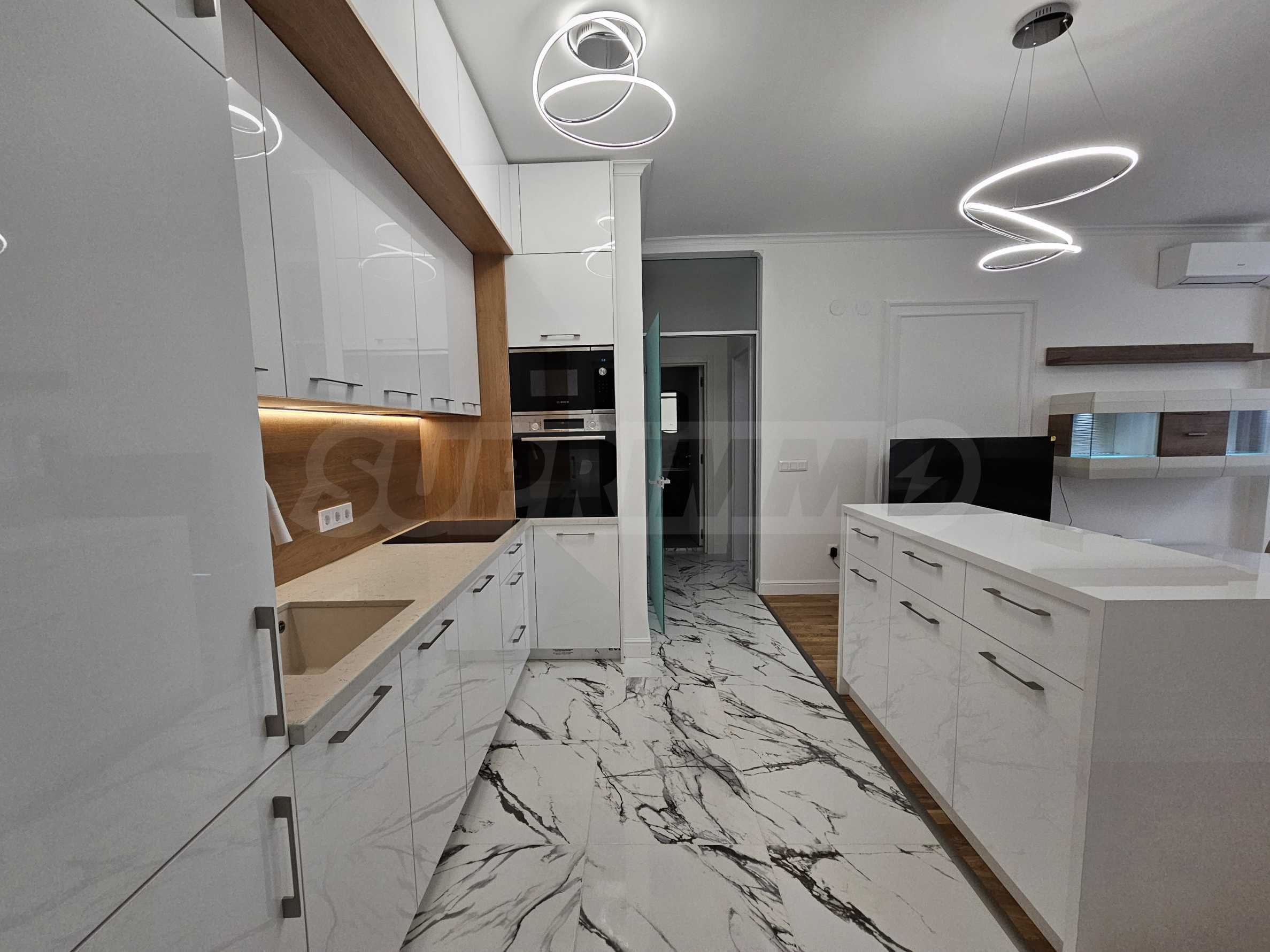 Най-висок клас довършителни, комфортни мебели: естествен трислоен паркет, всички електроуреди в кухнята са на марка BOSCH, хладилник LIBHERR,