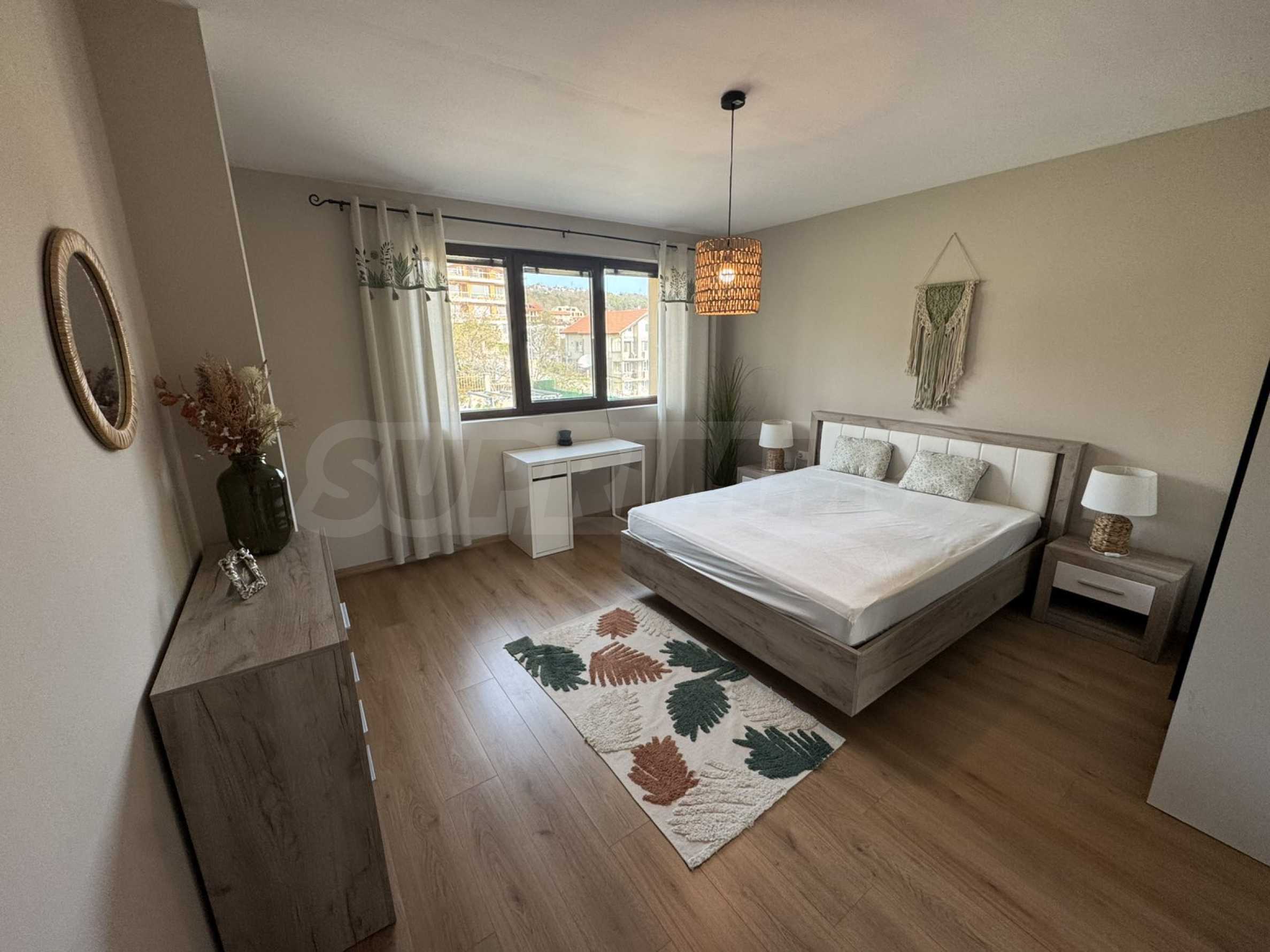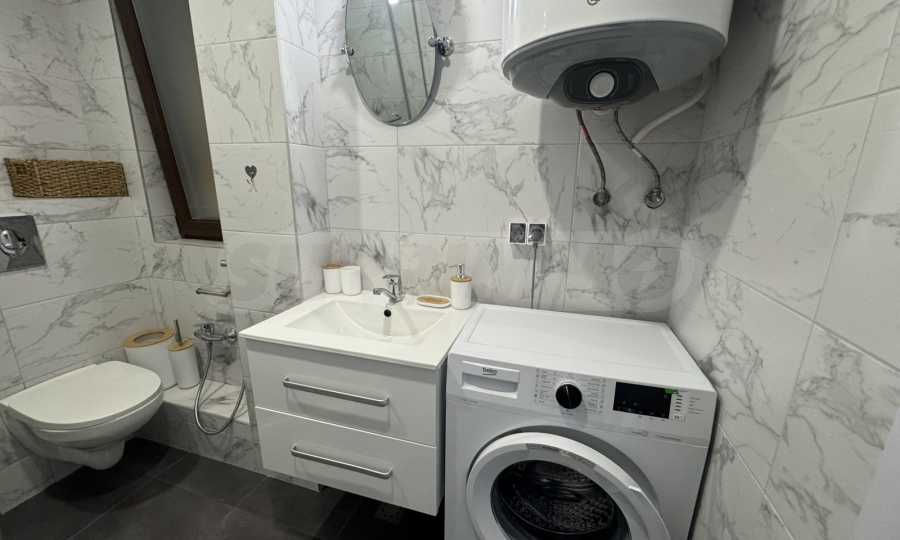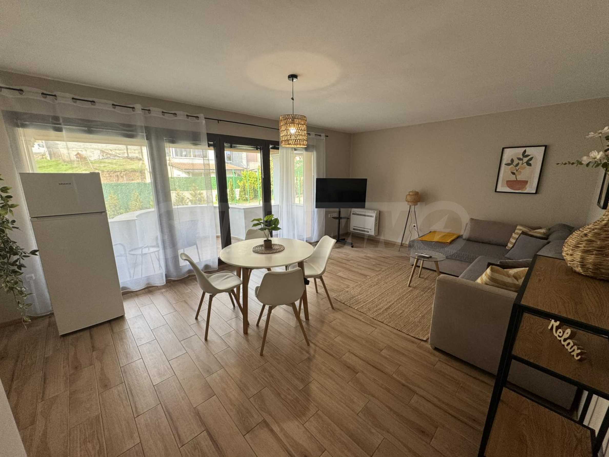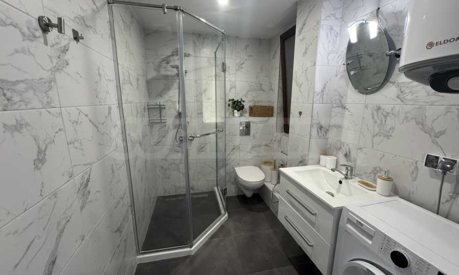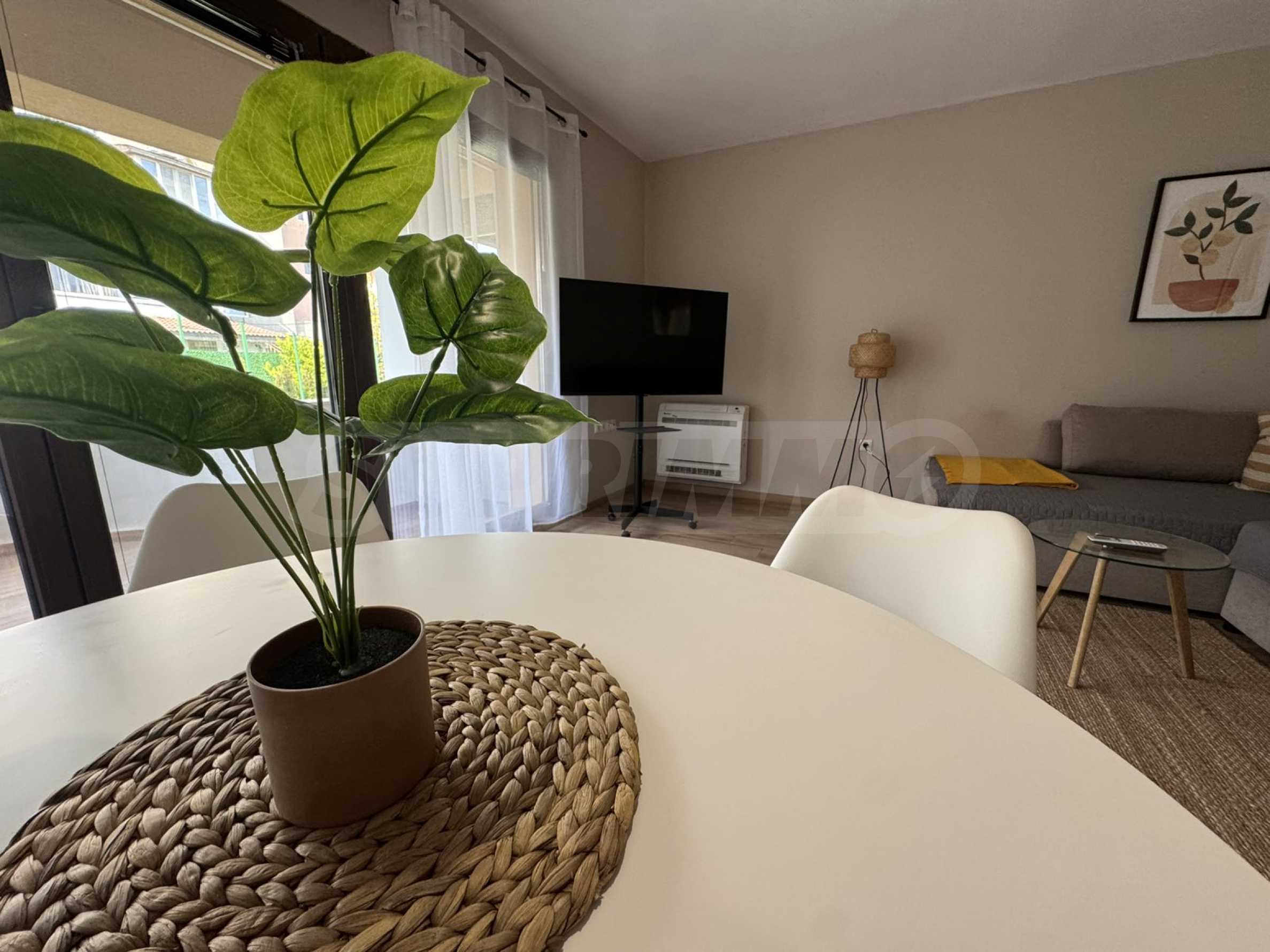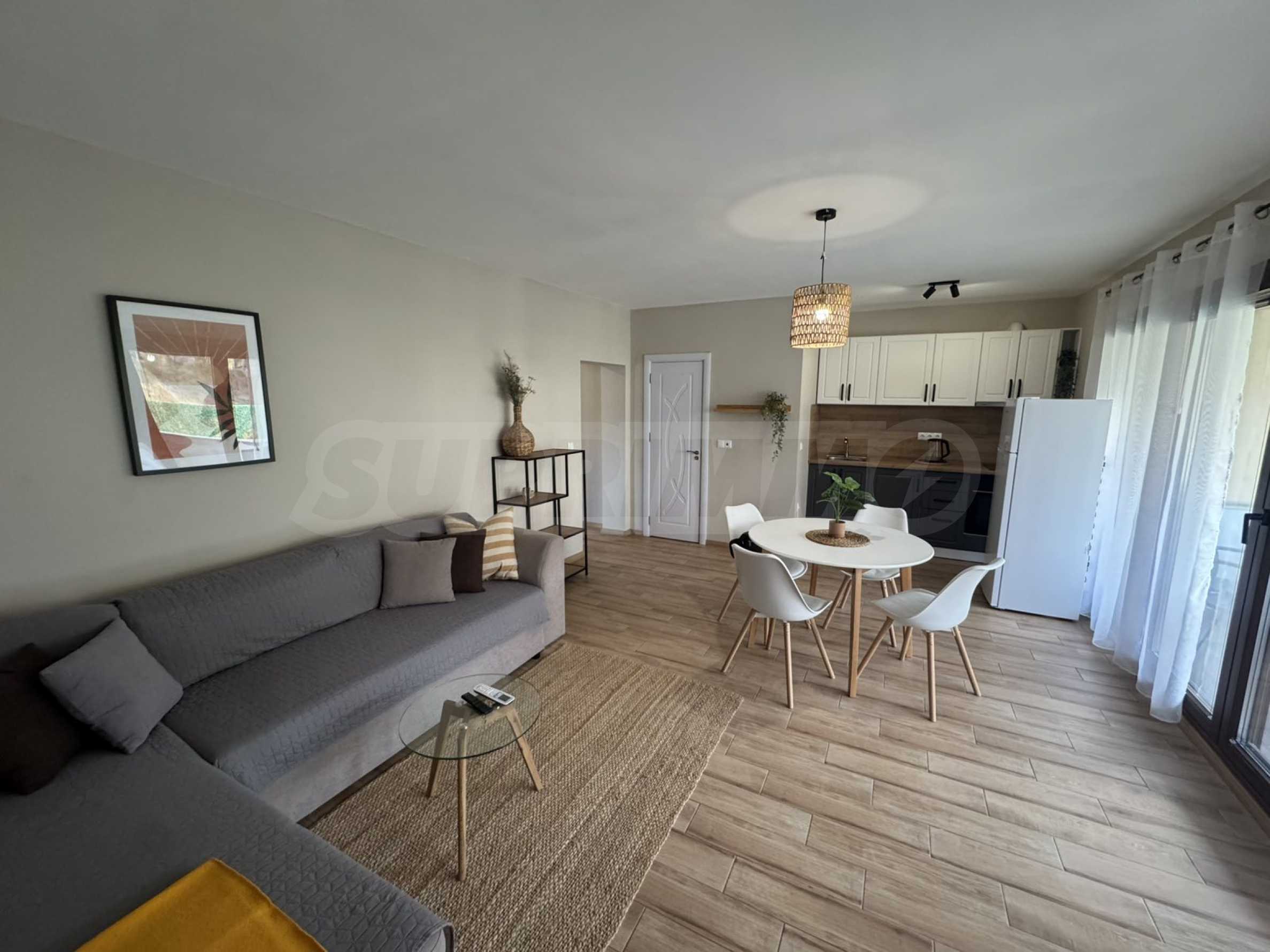 Апартаментът е нов и модерно обзаведен в светли и приятни тонове, съчетаващи комфорт и функционалност.