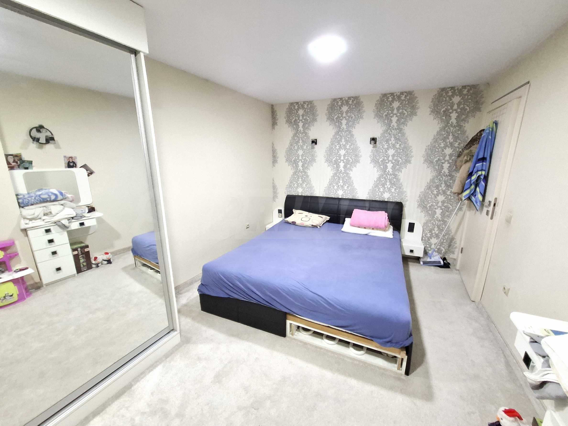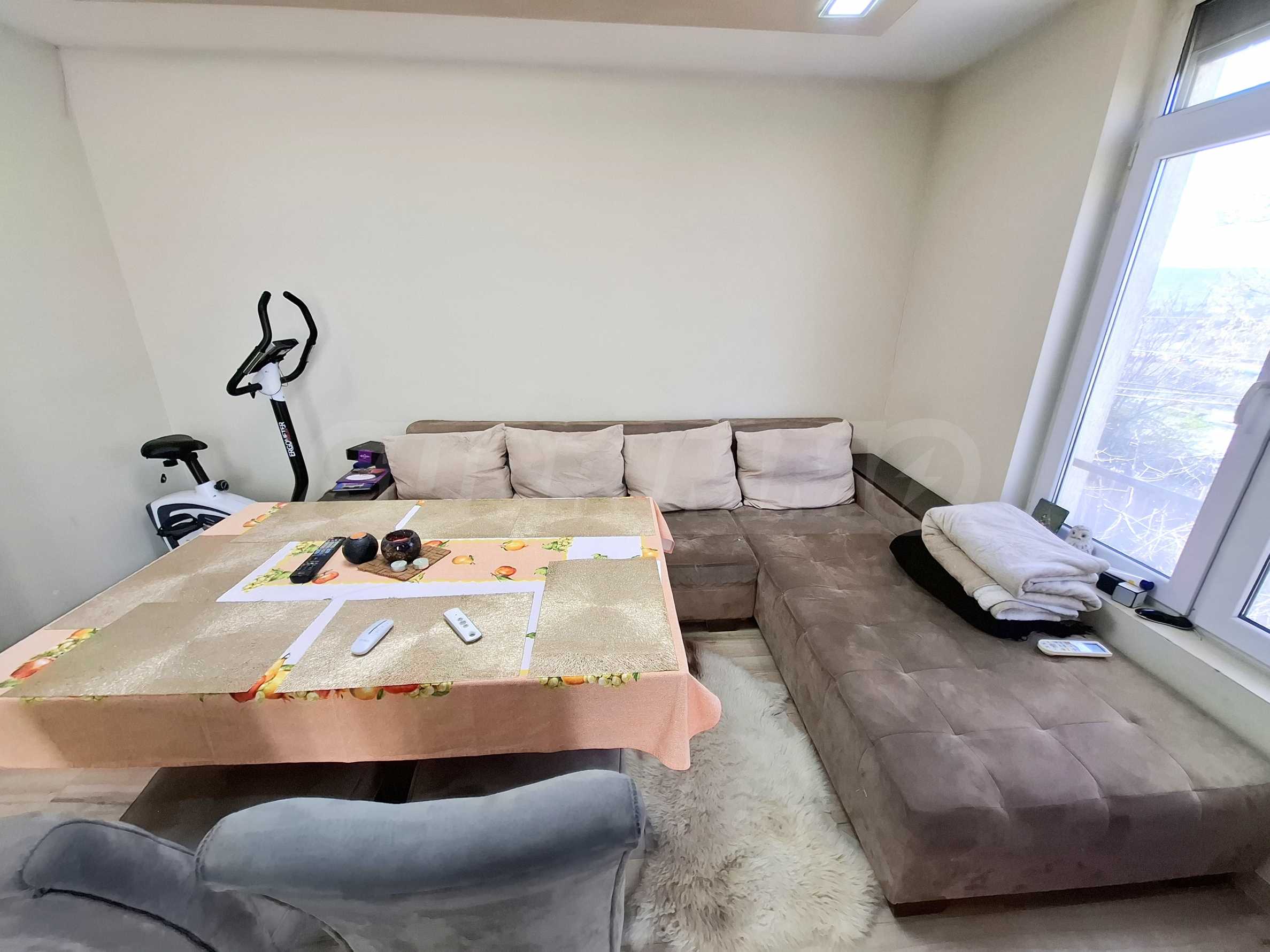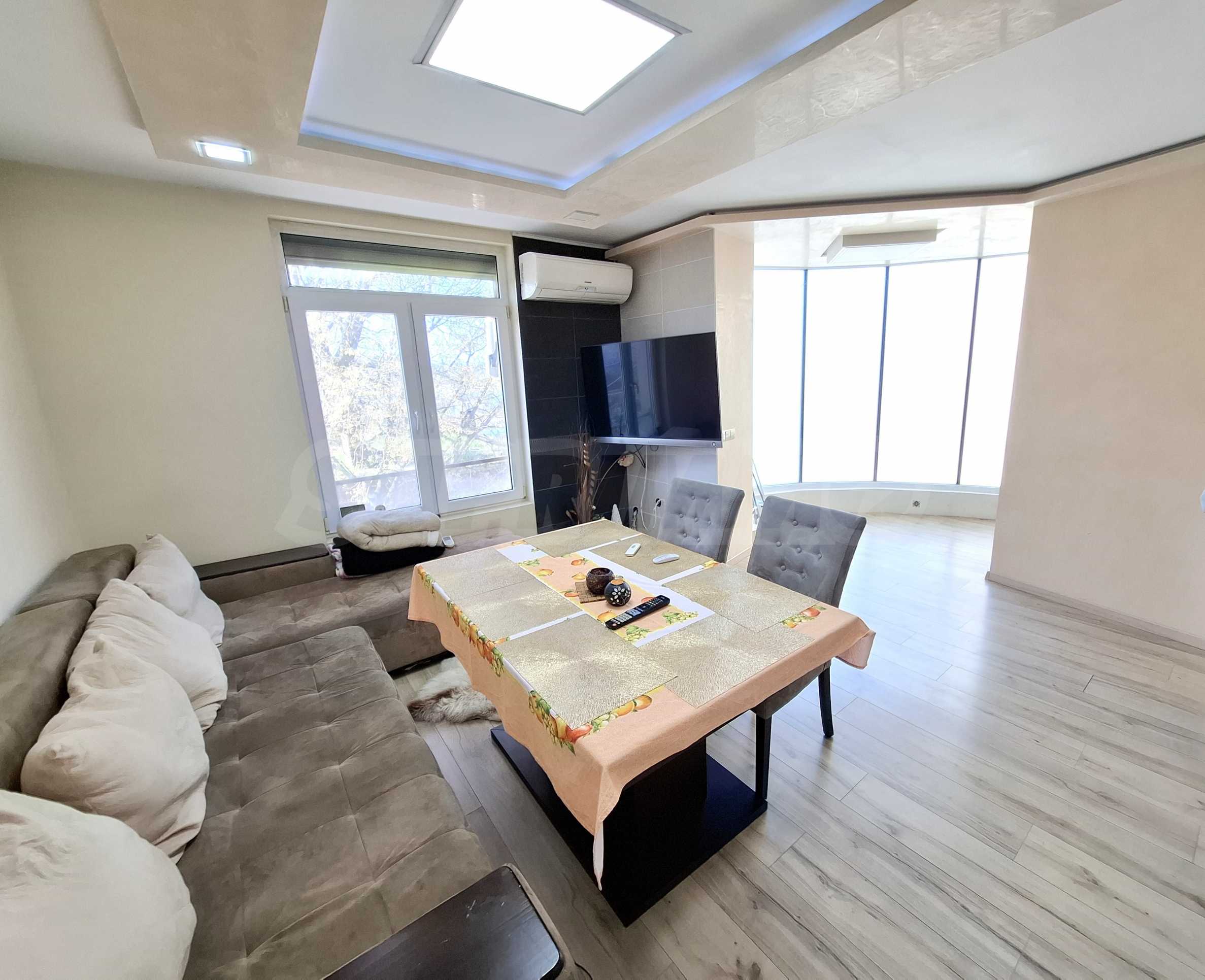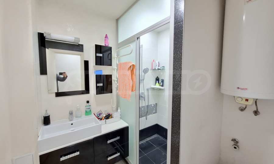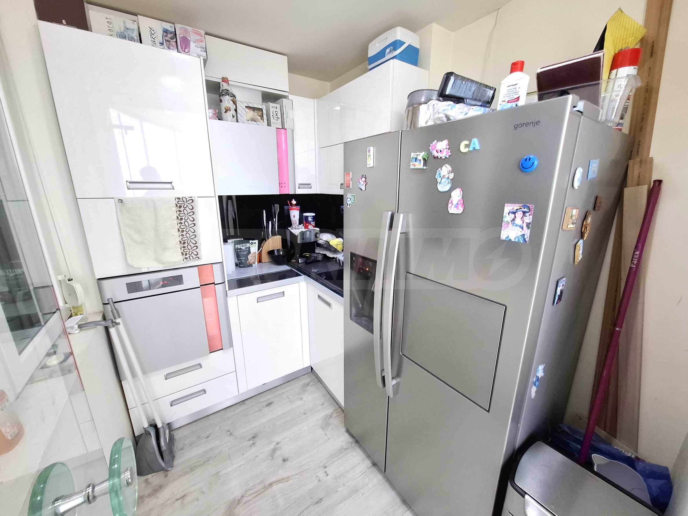 Апартаментът е напълно обзаведен и оборудван с всичко необходимо за живеене като мебели и ел. уреди.