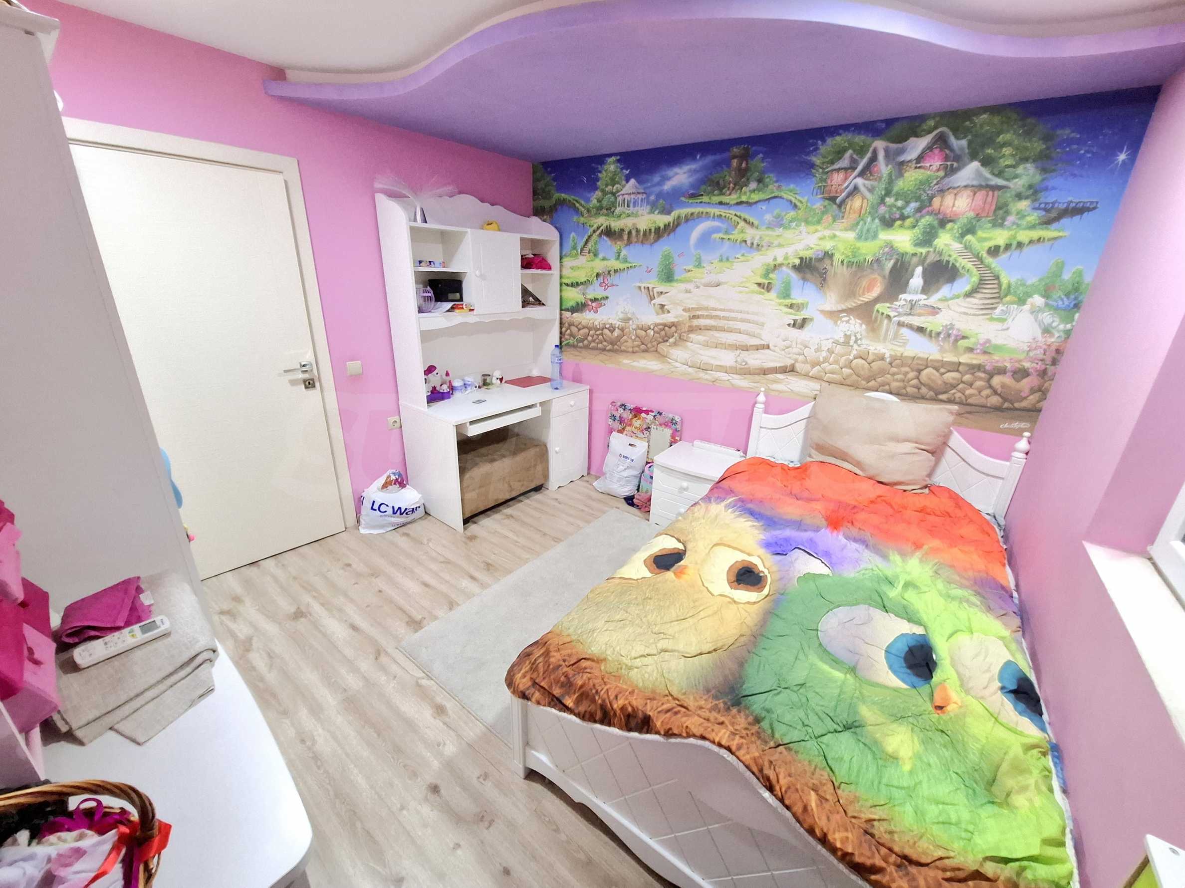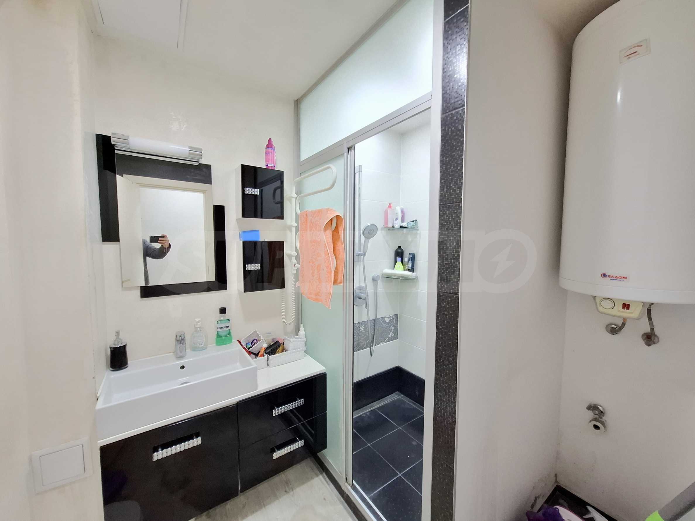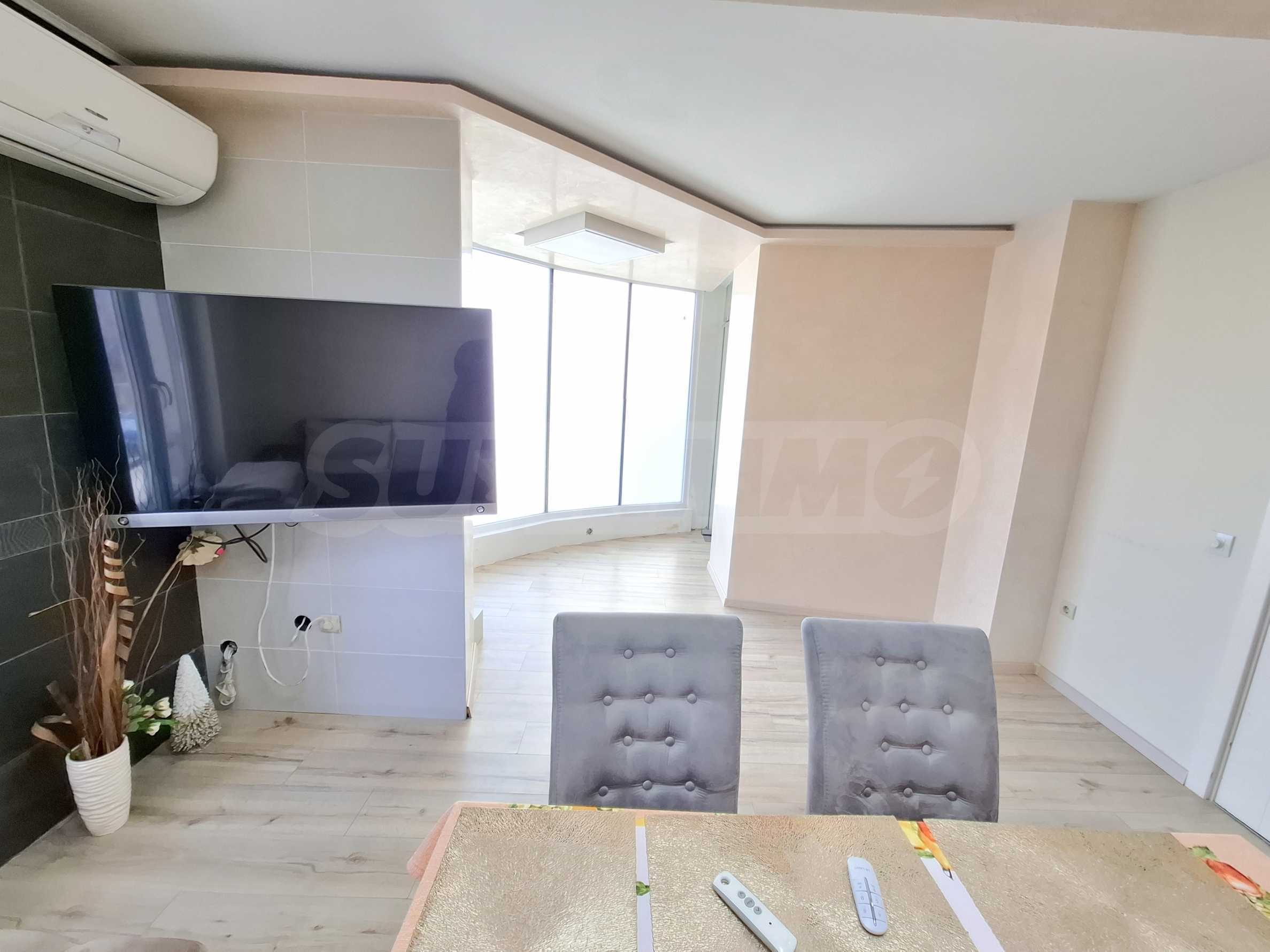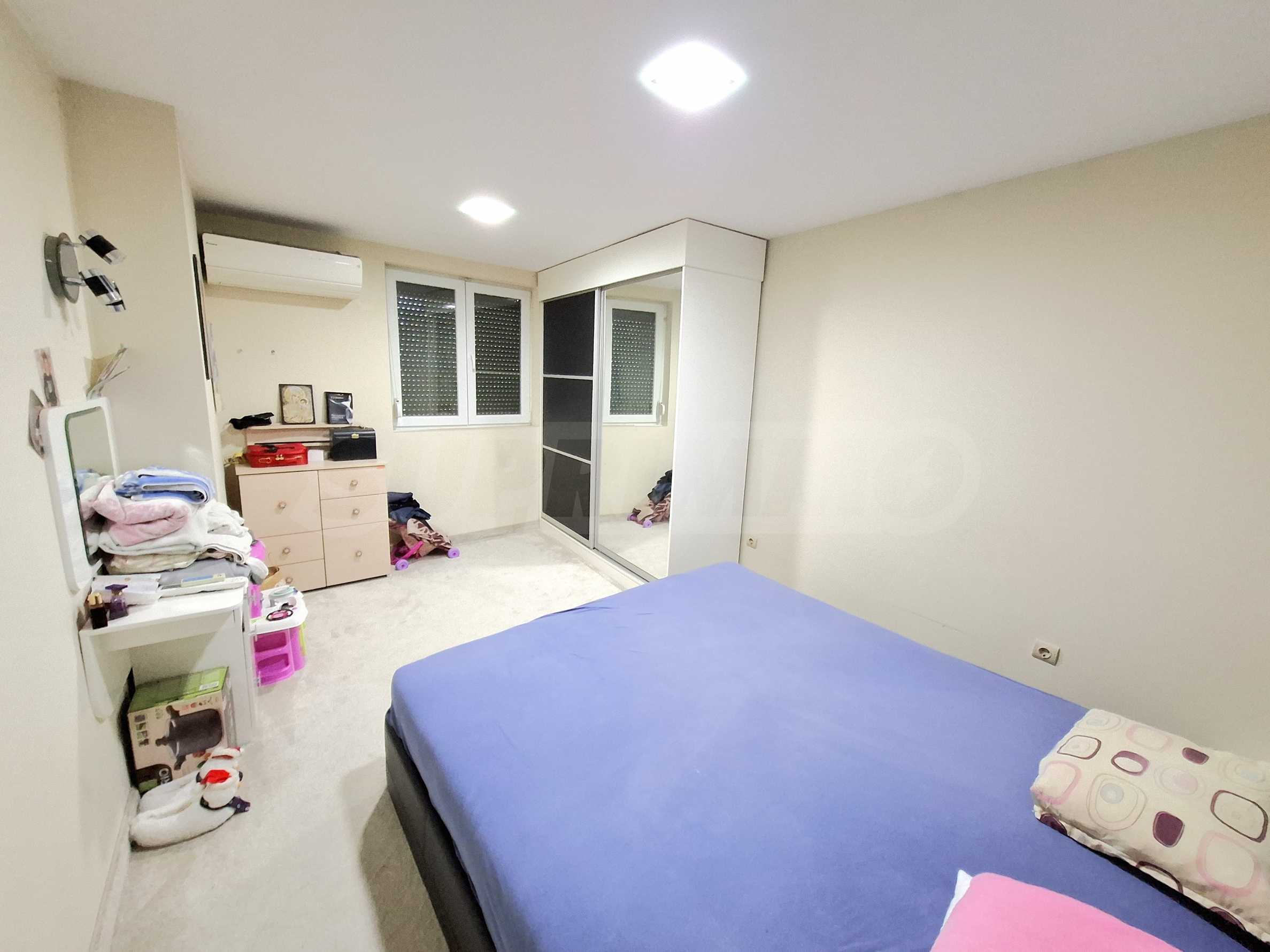 Апартаментът е напълно обзаведен и оборудван с всичко необходимо за живеене като мебели и ел. уреди.