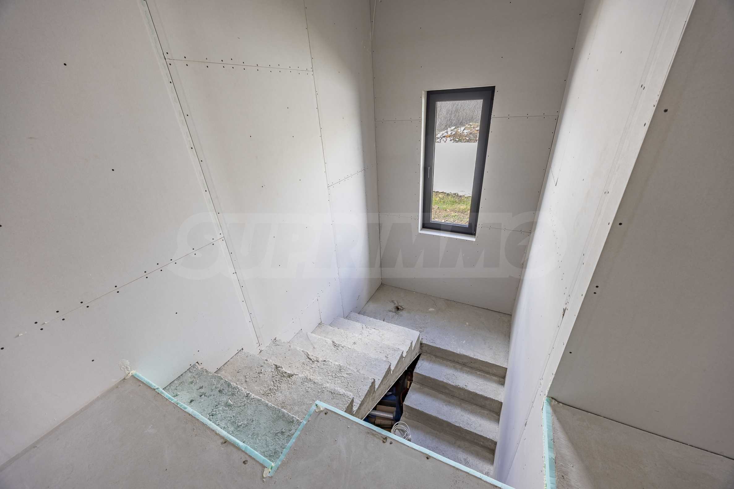 • фасада със силикат-силиконова мазилка и естествен камък.