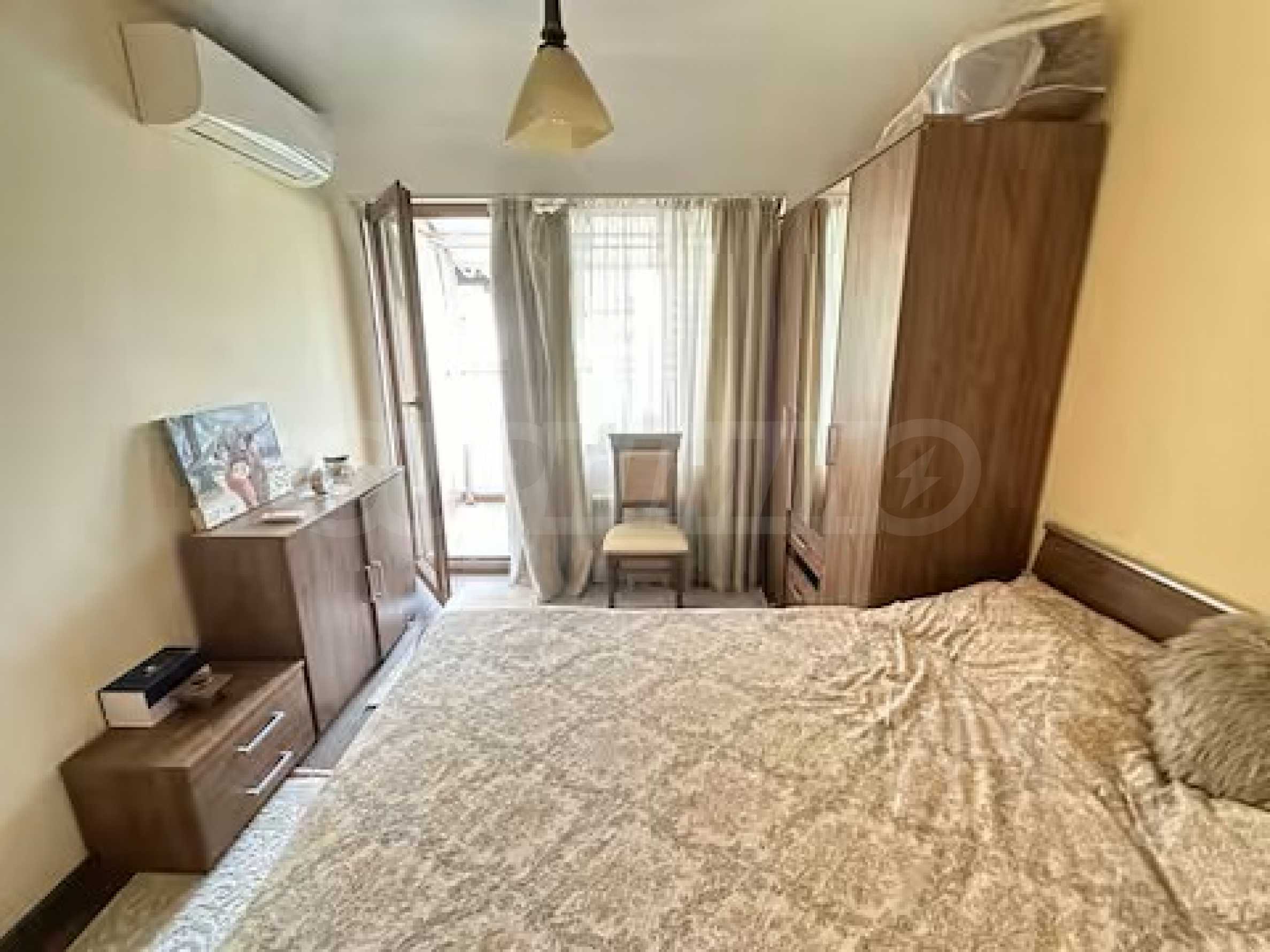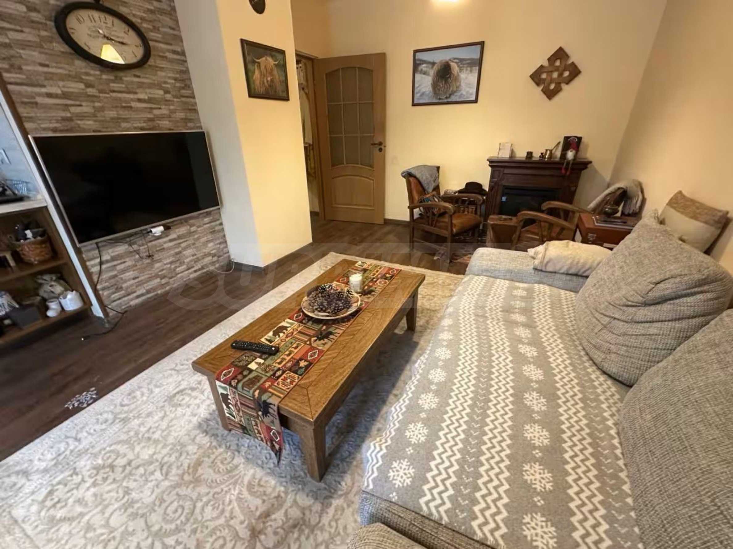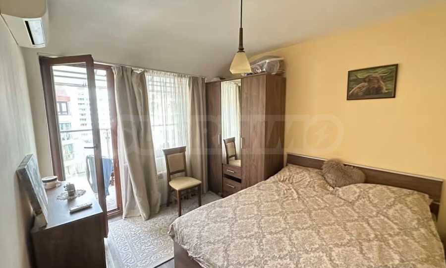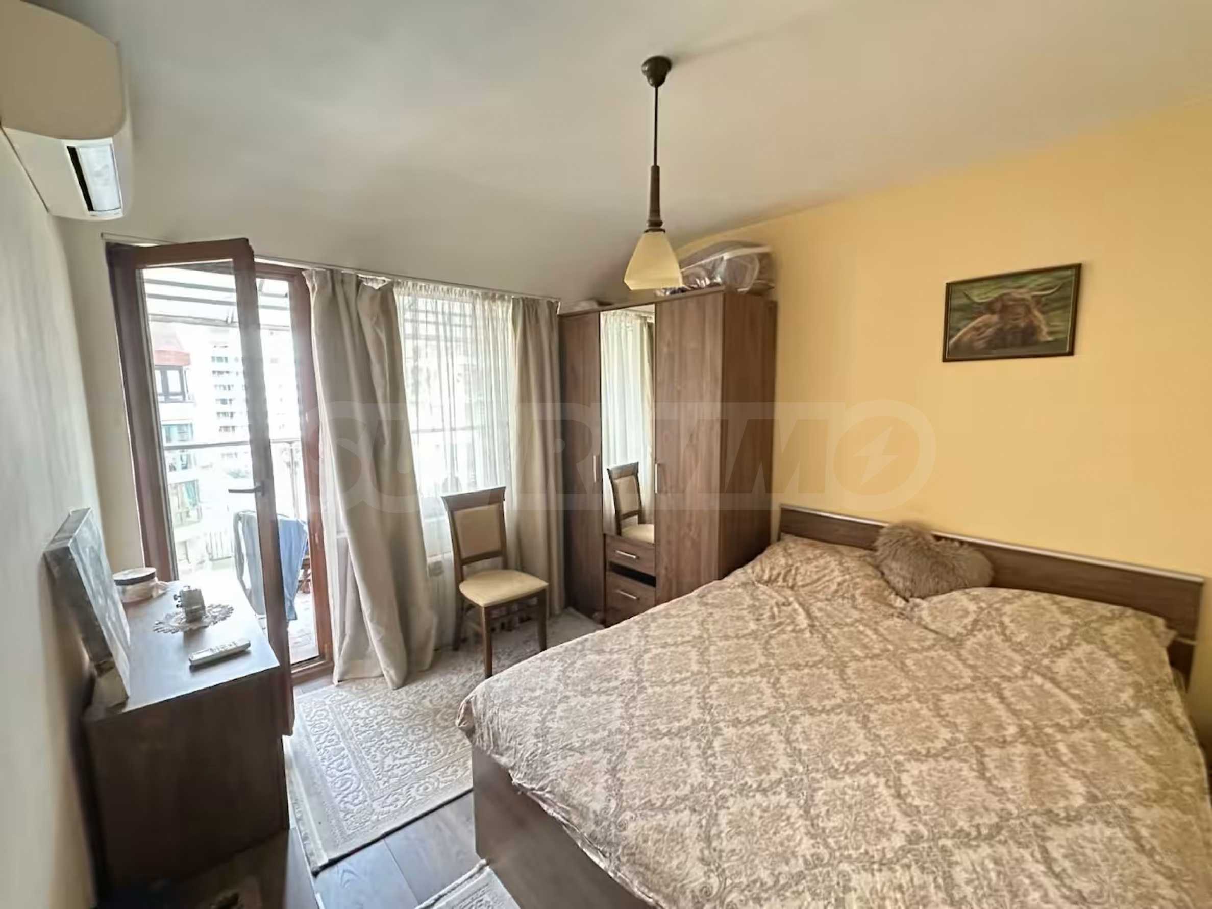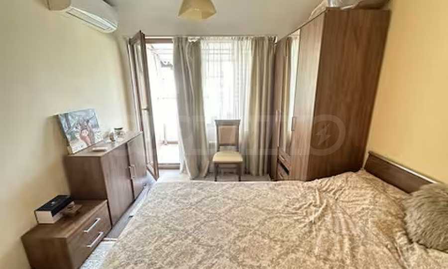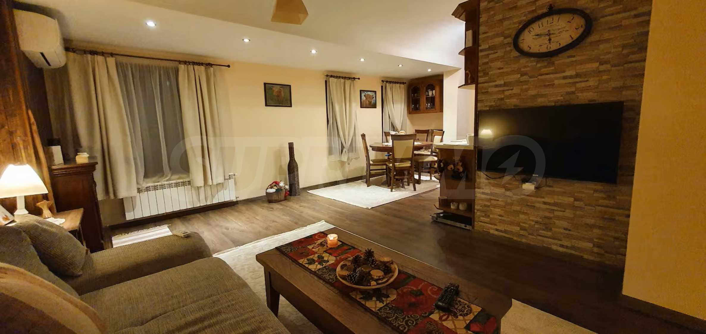 Разположен на седми, последен етаж, имотът предлага усещане за простор, уединение и впечатляващи гледки, съчетавайки комфорт и стил в една завършена жилищна концепция. Апартаментът е напълно обзаведен и впечатлява с изключително широк и светъл дневен тракт, който създава рядко срещано усещане за обем и въздух. Пространството обединява елегантна всекидневна зона, трапезарна част и функционална кухня, а електрическата камина добавя характер, уют и завършеност на интериора.