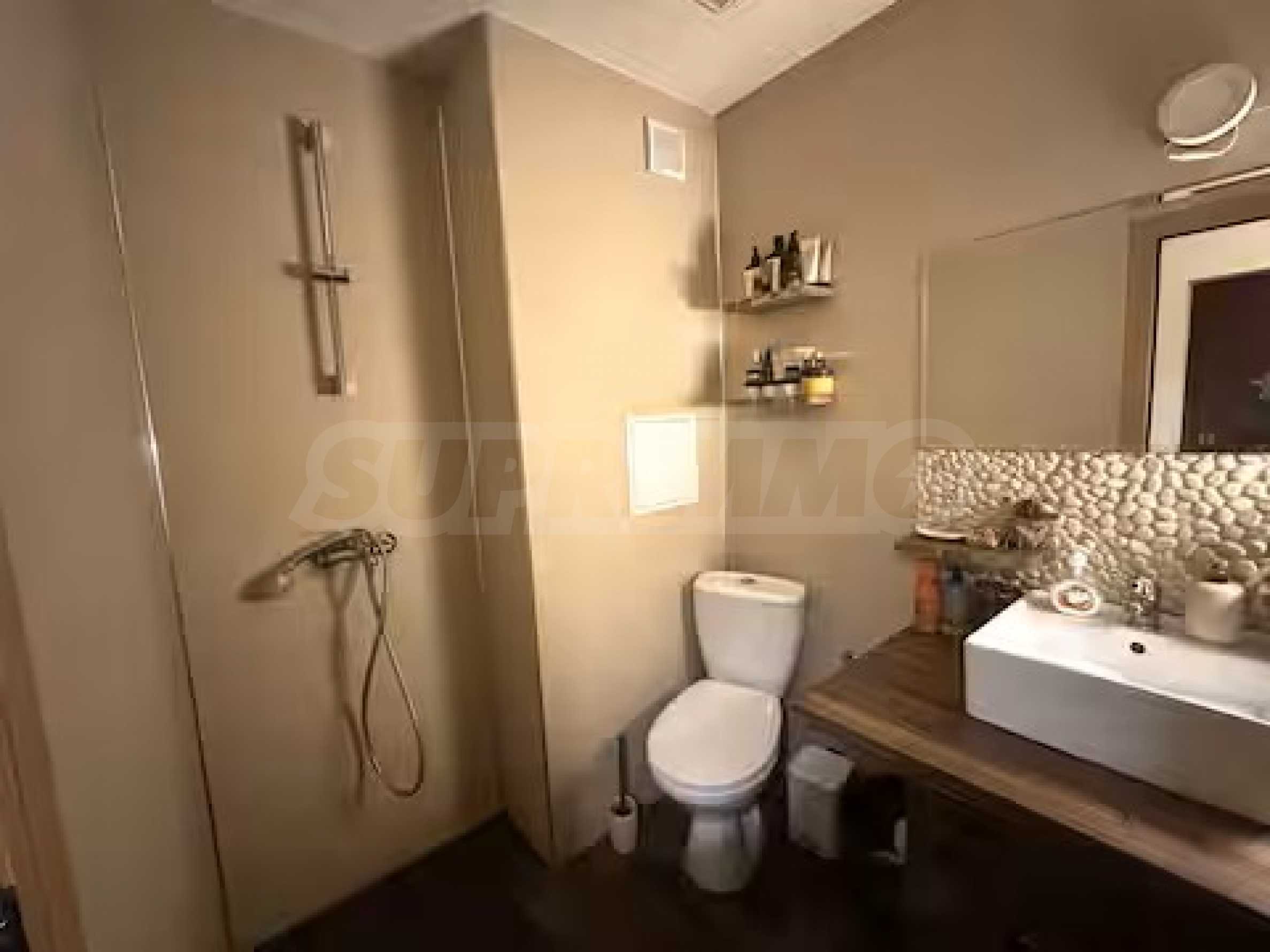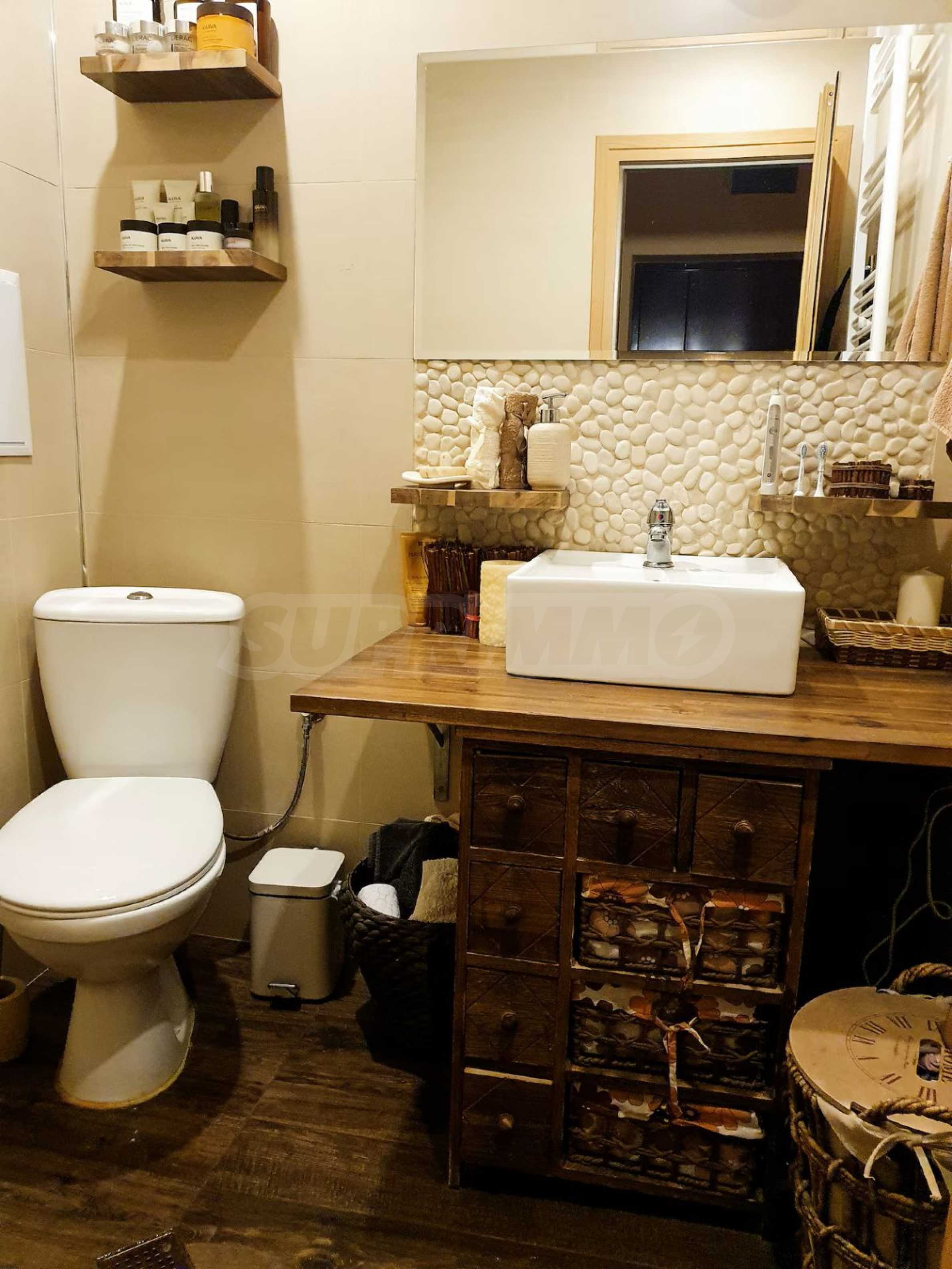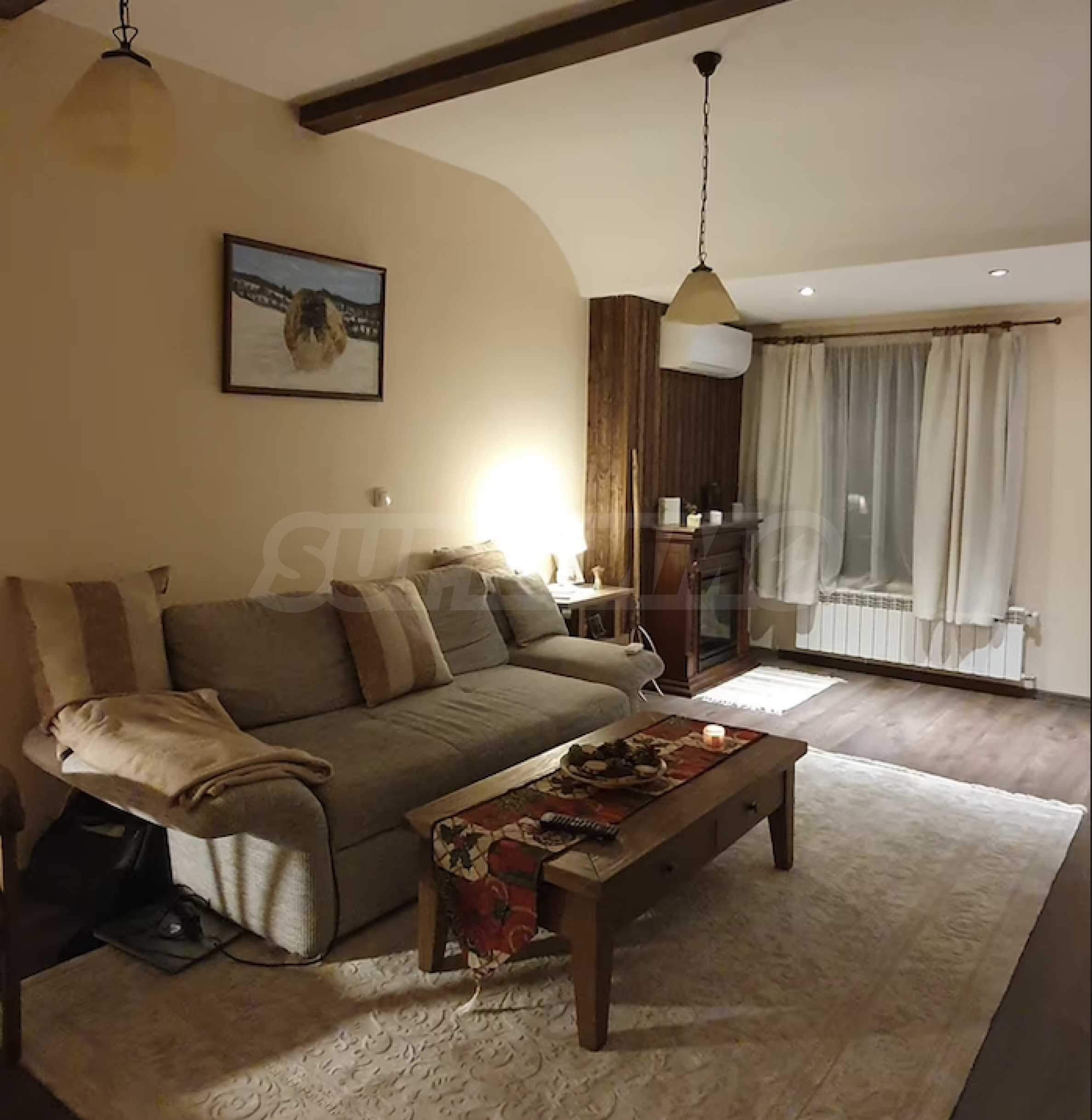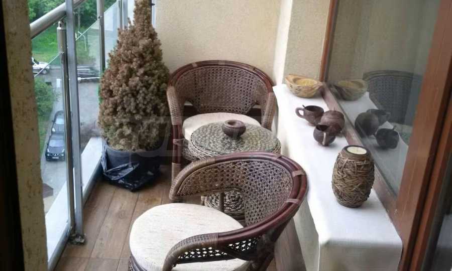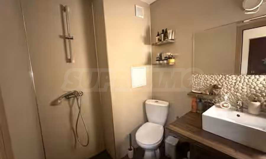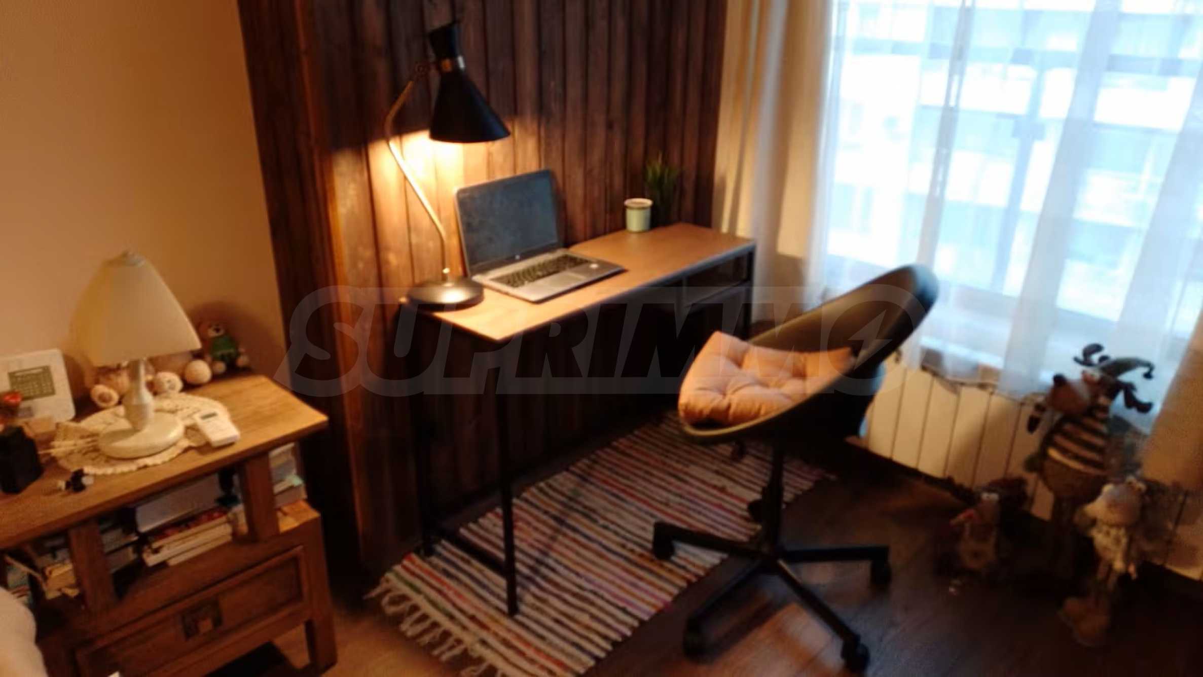 Разположен на седми, последен етаж, имотът предлага усещане за простор, уединение и впечатляващи гледки, съчетавайки комфорт и стил в една завършена жилищна концепция. Апартаментът е напълно обзаведен и впечатлява с изключително широк и светъл дневен тракт, който създава рядко срещано усещане за обем и въздух. Пространството обединява елегантна всекидневна зона, трапезарна част и функционална кухня, а електрическата камина добавя характер, уют и завършеност на интериора.