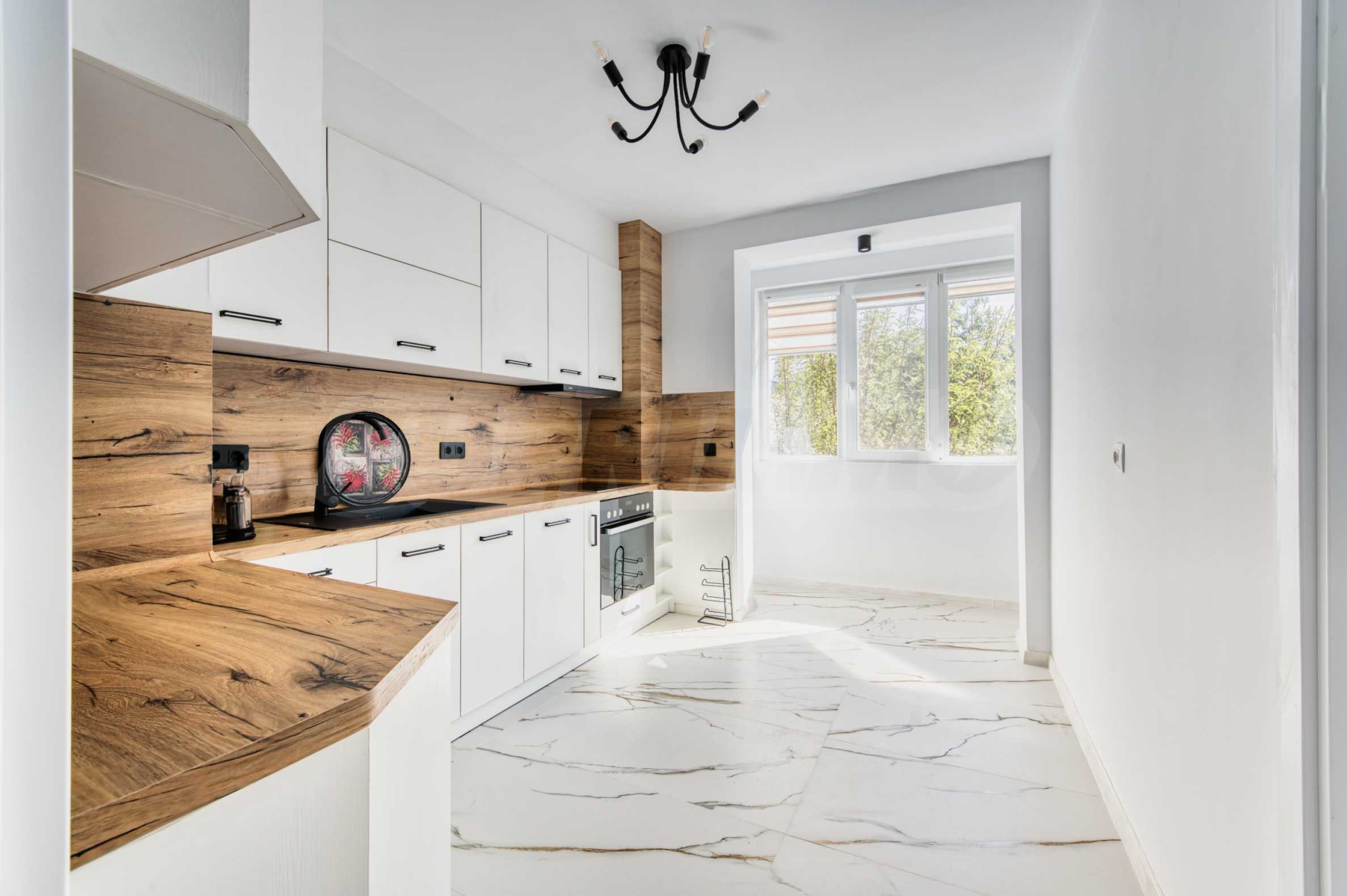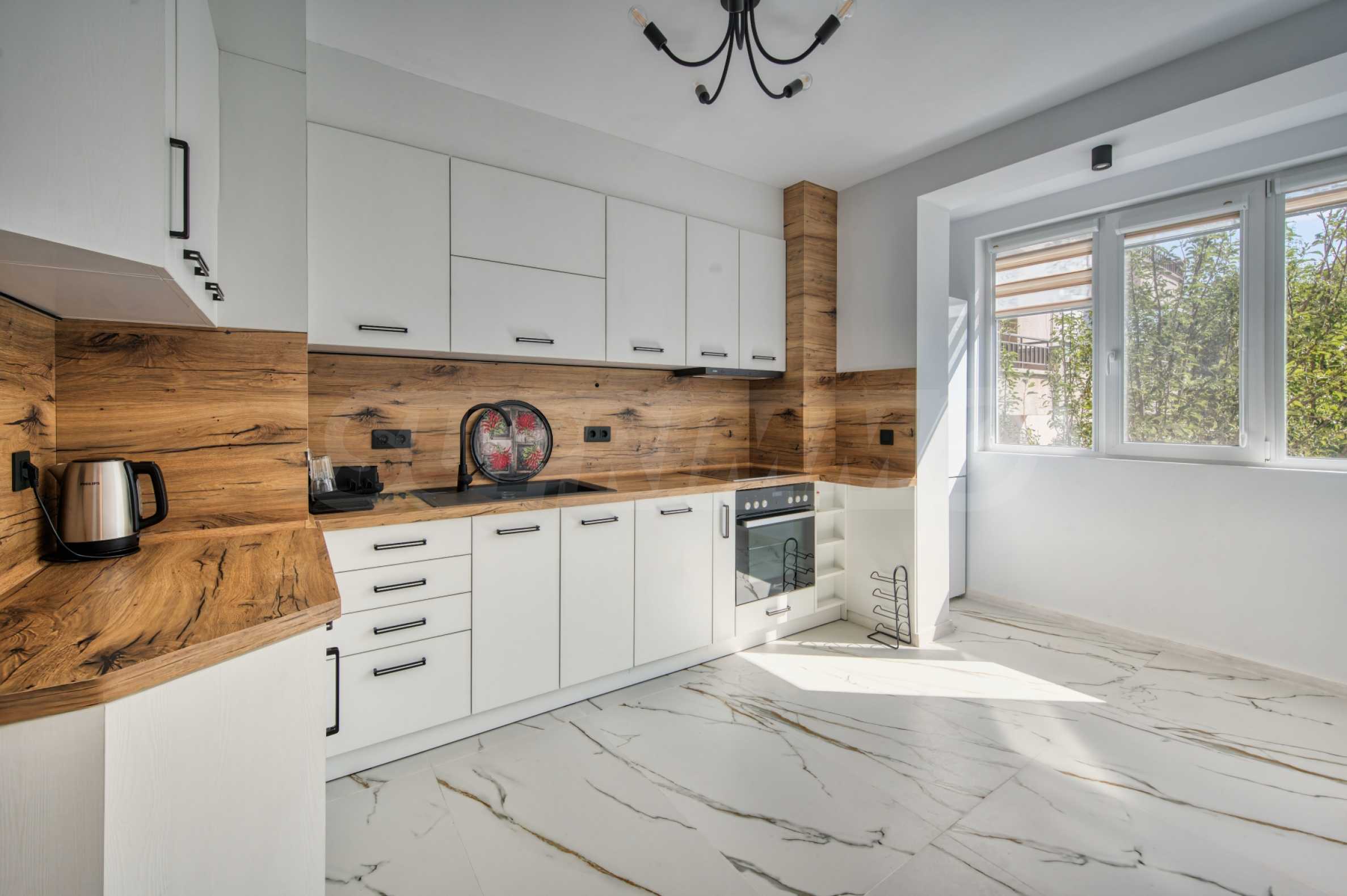Жилището е преминало през основен ремонт, като е разположено в масивна тухлена сграда с нова дограма и модерни немски уреди от най-висок клас AAA+.