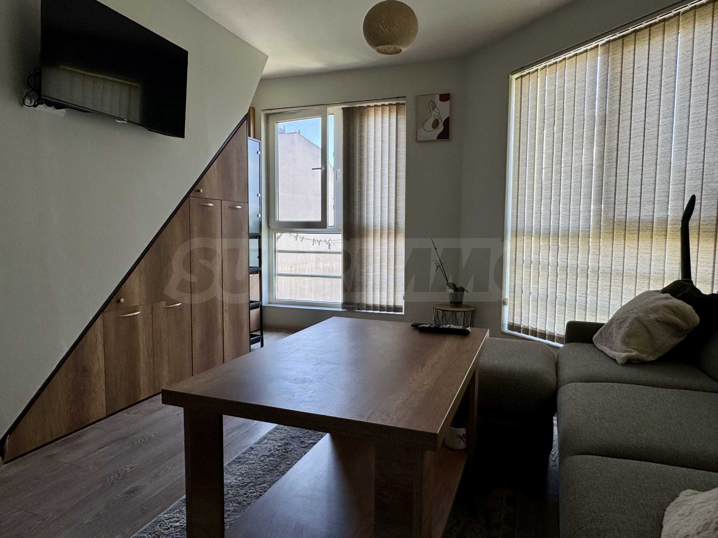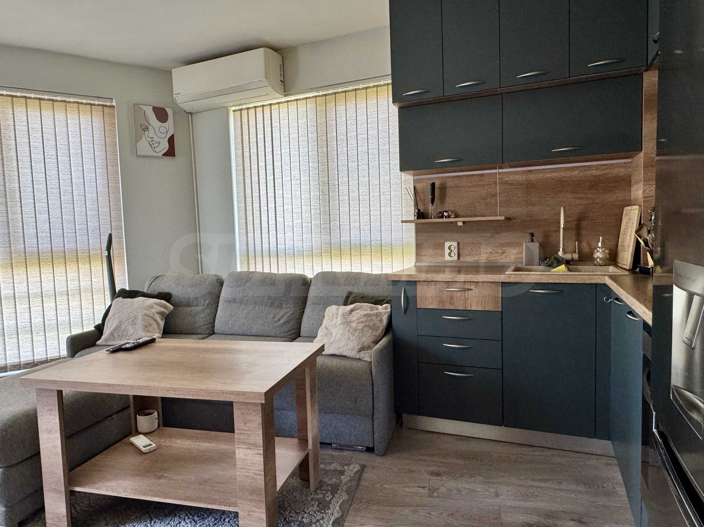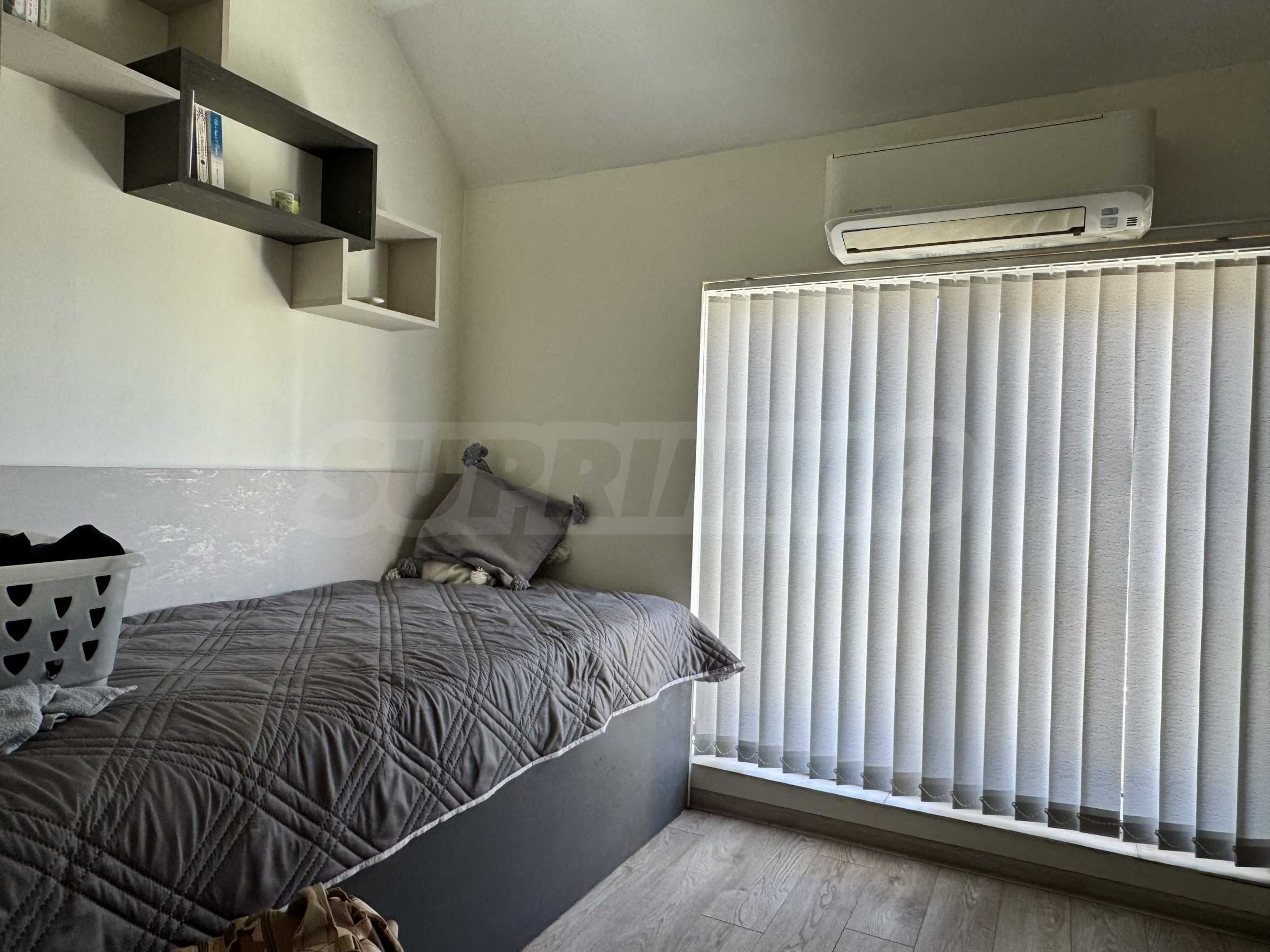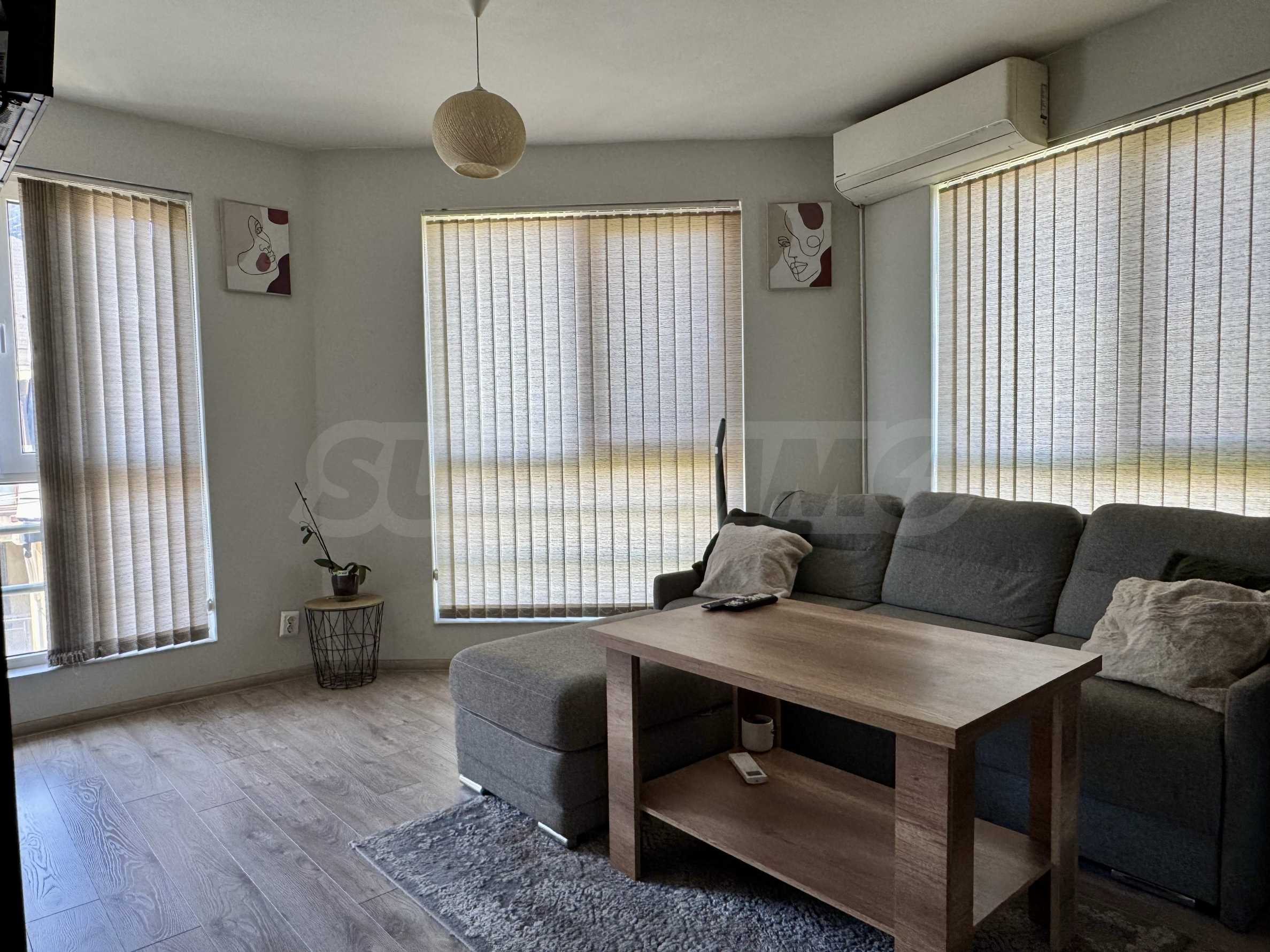 Жилището е напълно обзаведено и оборудвано, готово за нанасяне. Отоплението и охлаждането са решени чрез климатици с индивидуално управление във всяко помещение.