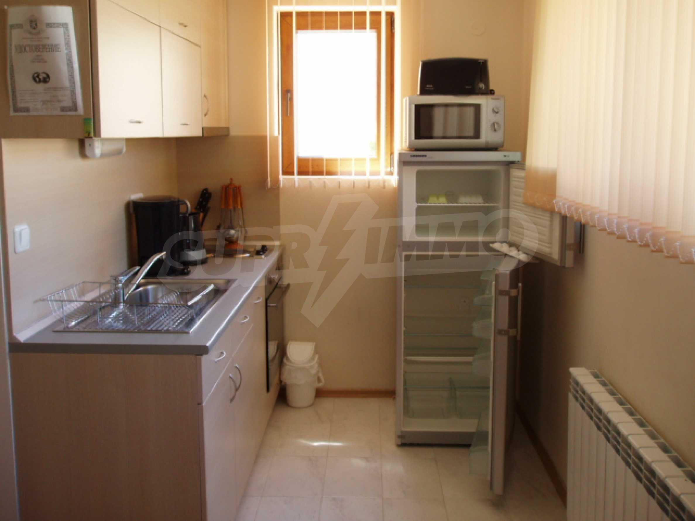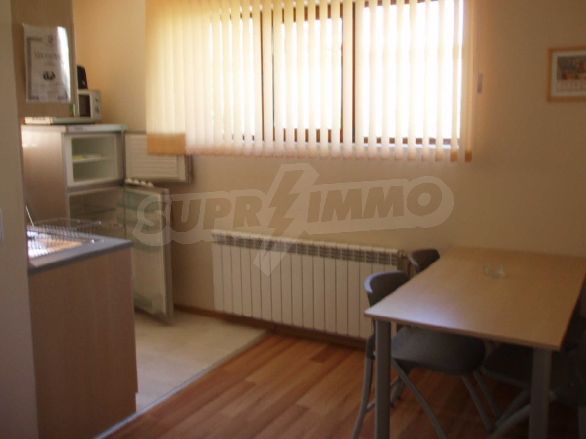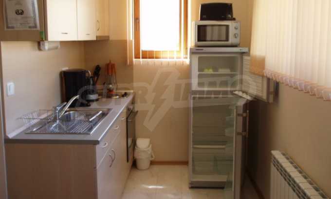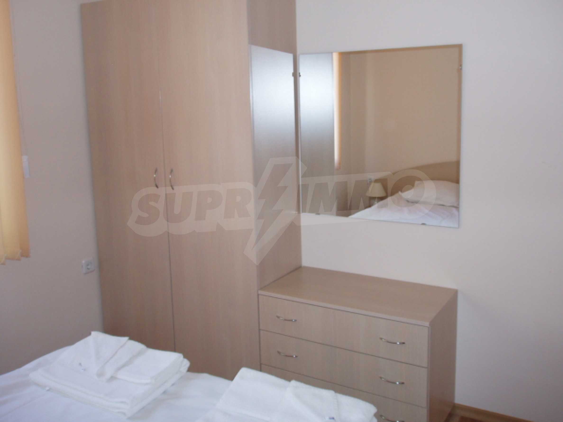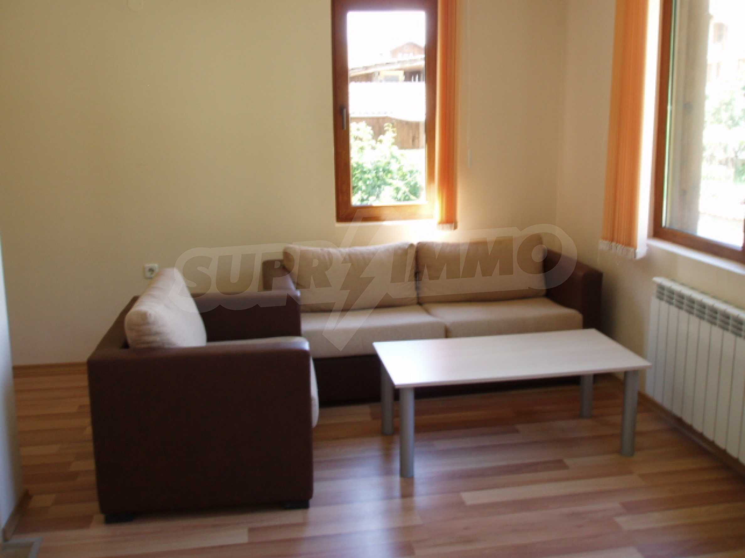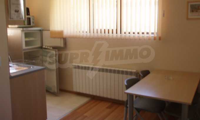 Предлаганото жилище е 69.82 кв.м. Този отличен двустаен апартамент се намира на партерен етаж. Жилищото е на два етажа и е разпределено между хол с кухненски бокс, една спални, баня с тоалетна. Подовите настилки са с гранитогрес и ламиниран паркет, стените са с латекс, а прозорците - с PVC дограма. Кухнята е оборудвана с хладилник, печка, микровълнова, тостер, чайник, маса с 3 стола, а холът с канапе, маса и телевизор. Спалнята е обзаведена с двойно легло, гардероб, шкаф и две нощни шкафчета. Банята е снабдена с мивка с огледало и душ кабина. Отоплението се осъществява чрез собствено котле на ток. Жилището е окабелено за телефон, кабелна, интернет и СОТ, а в сградата може да се ползвате от услугите на портиер.
