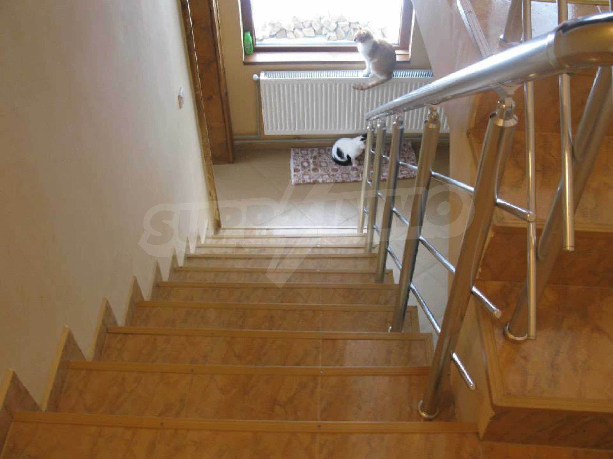 Цялата къща е завършена с ПВЦ дограма на врати и прозорци и стени латекс. Отоплява се чрез локално парно и се предлага за продажба с мебелите от снимките. Отличният имот разкрива прекрасна гледка към околната живописна природа.