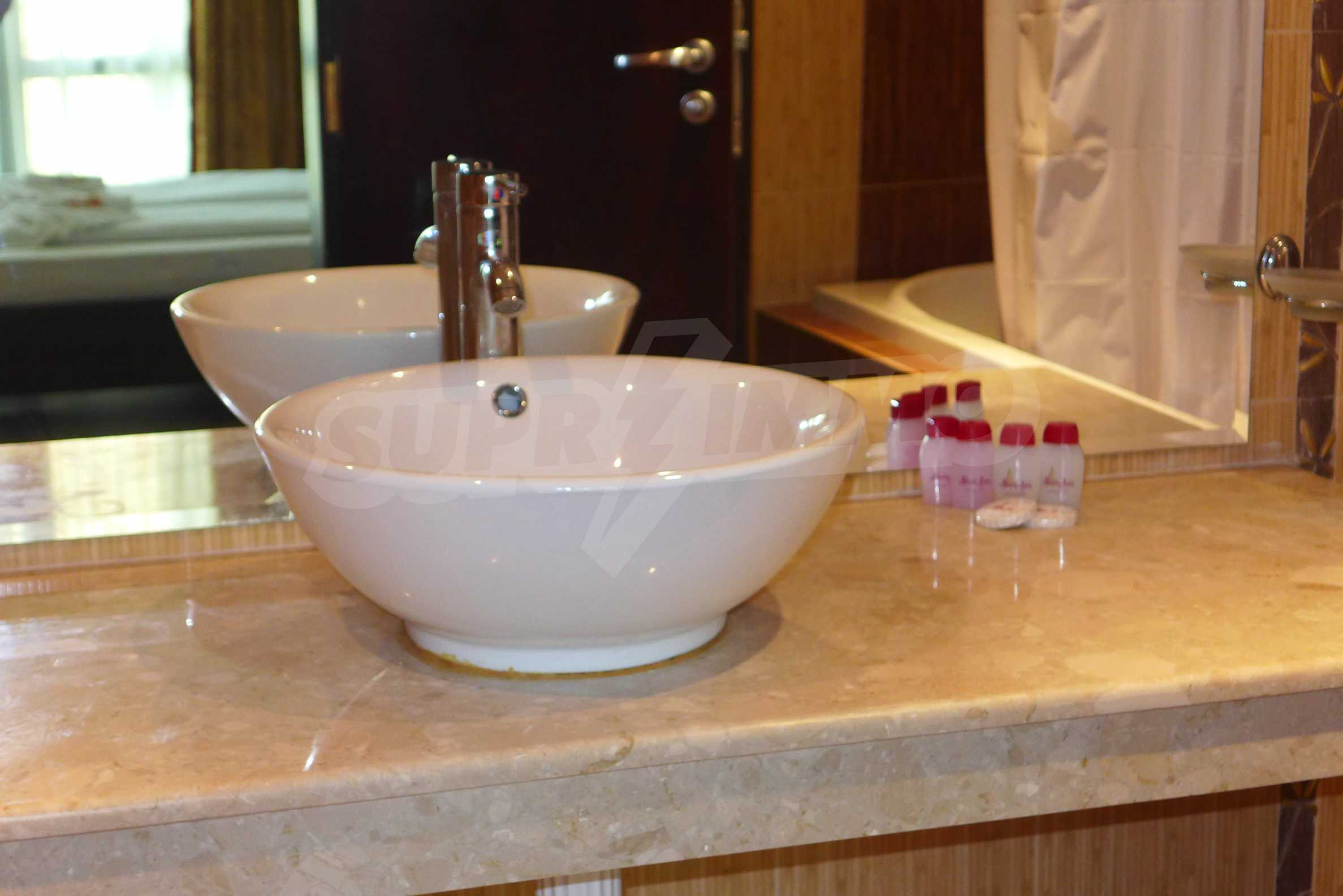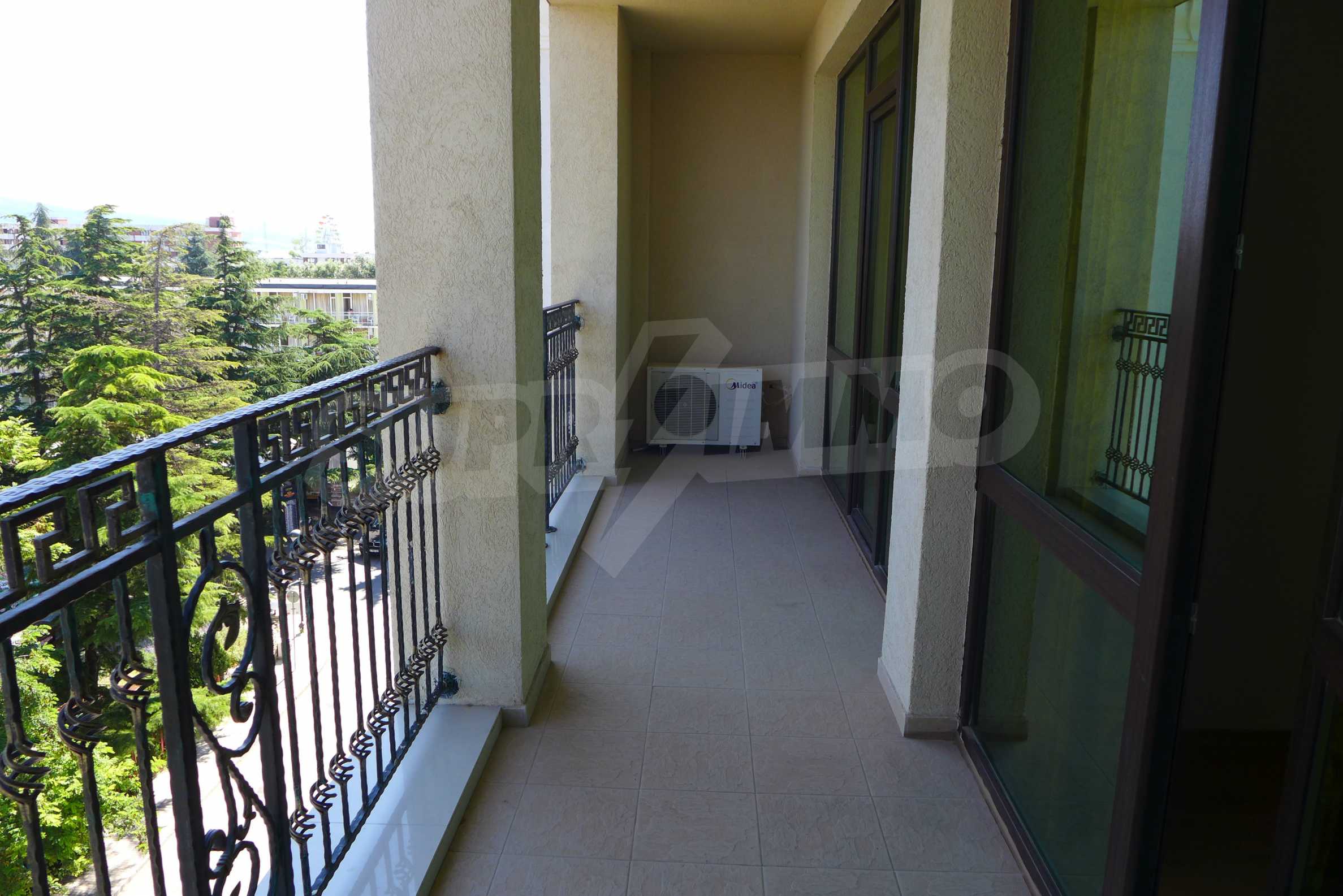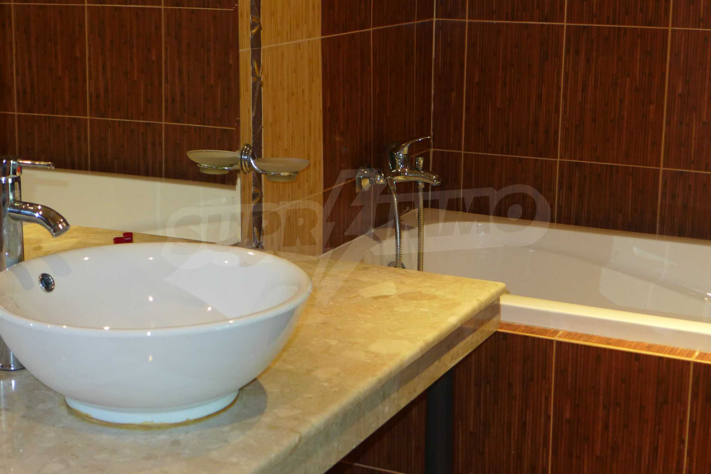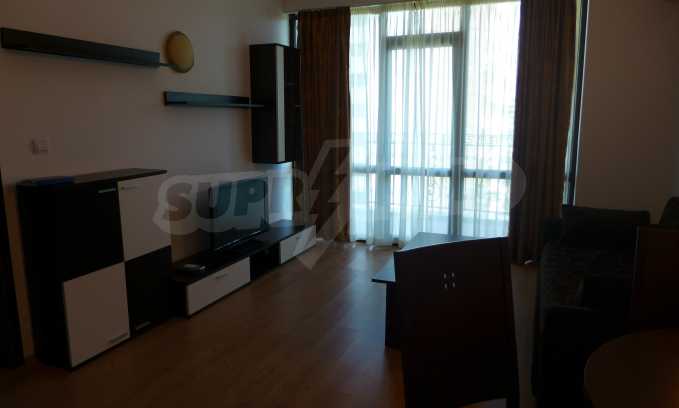 Апартаментите се предлагат за продажба със стилно обзавеждане и пълно оборудване. Кухнята е снабдена с котлон, фурна, хладилник; холът – с диван, маса, 4 стола, ТВ сет, холна секция, холна маса; спалнята – с двойно легло, гардероб, тоалетка, климатик и завършена баня с тоалетна и вана, както и отделна тоалетна. Апартаментите са с по един балкон с красива гледка към морето и околностите. Снабдени са с кабелна телевизия и интернет.