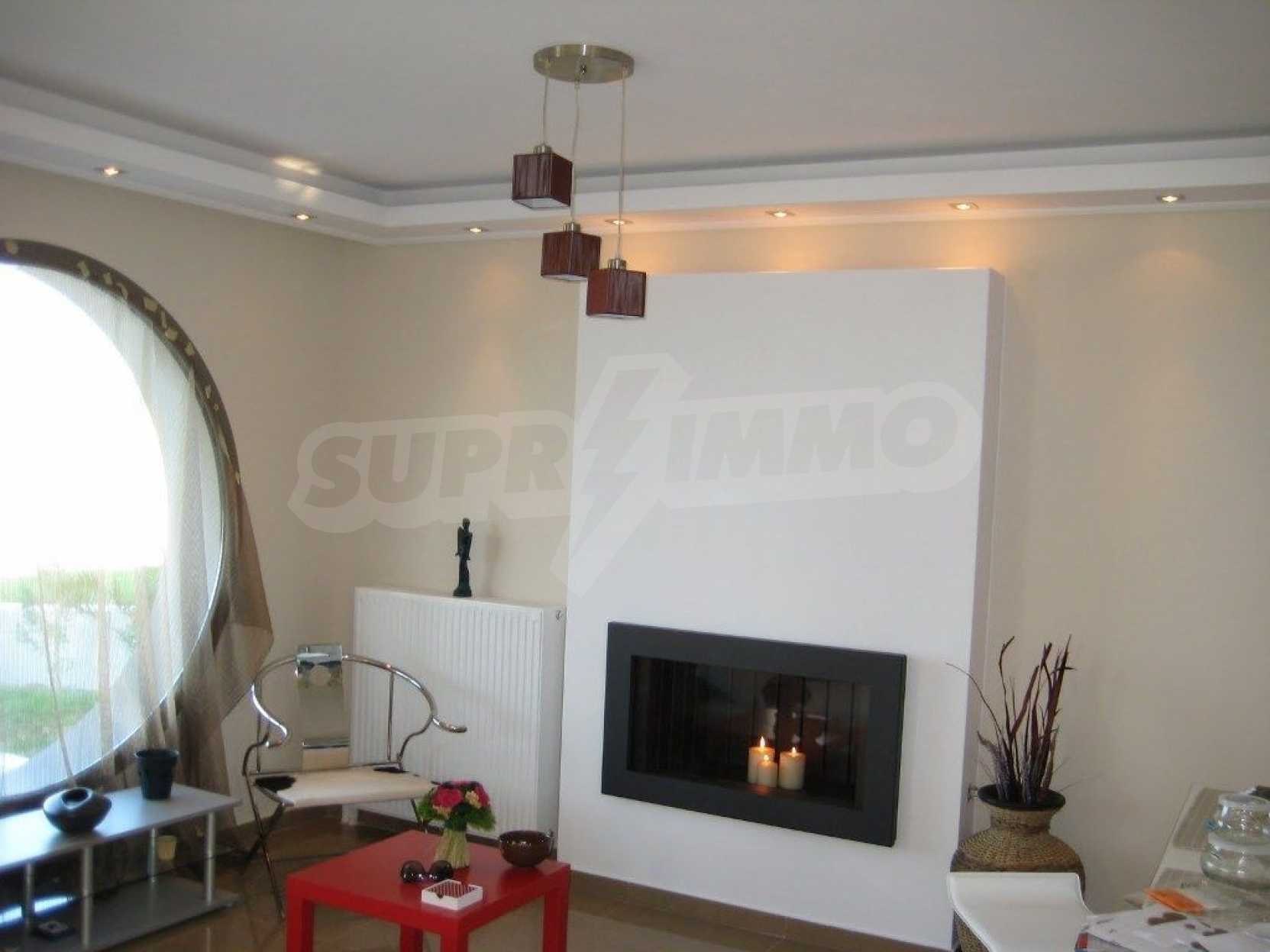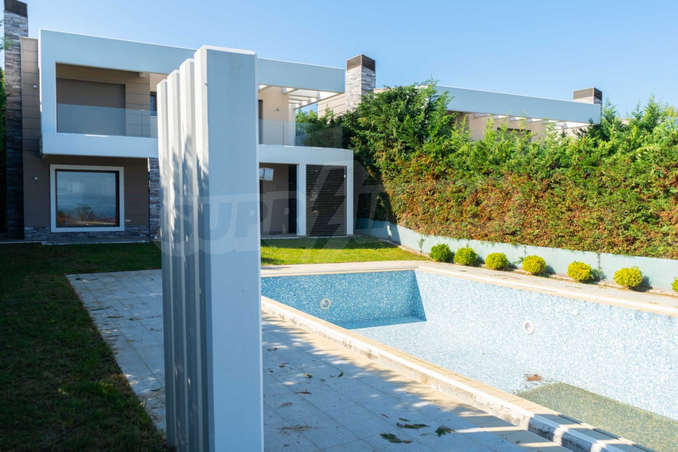 Предлагаме на вашето внимание вилa с площ 135 кв.м. Отоплението се осъществява посредством камина и локално парно. Имотът се предлага със следната степен на завършеност: блиндирана входна врата. По отношение на мебели и оборудване налични са: вградена кухня. Имотът е снабден с септична яма. Важно е да се отбележи, че имотът разполага с: баня с тоалетна, килер, мазе, паркинг, басейн и сот. От имота се разкрива гледка към морето.