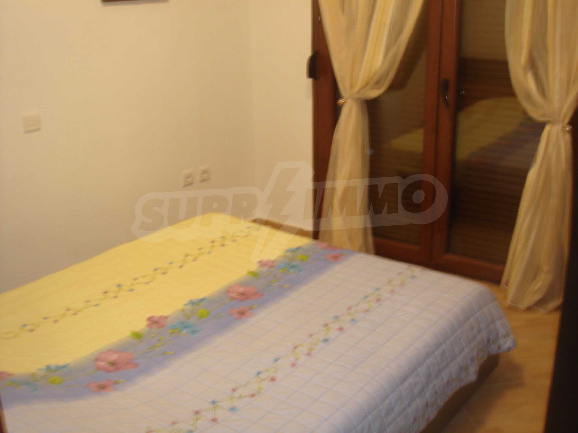 Апартаментът е напълно обзаведен с луксозна мебел, включително и с телевизор 32", аудио система, пералня, климатик, пълно кухненско оборудване. Апартаментът е разположен на тиха уличка, което гарантира спокойствието на собствениците, но в същото време се намира само на 200 м от плажа и на 3 минути от центъра на градчето.