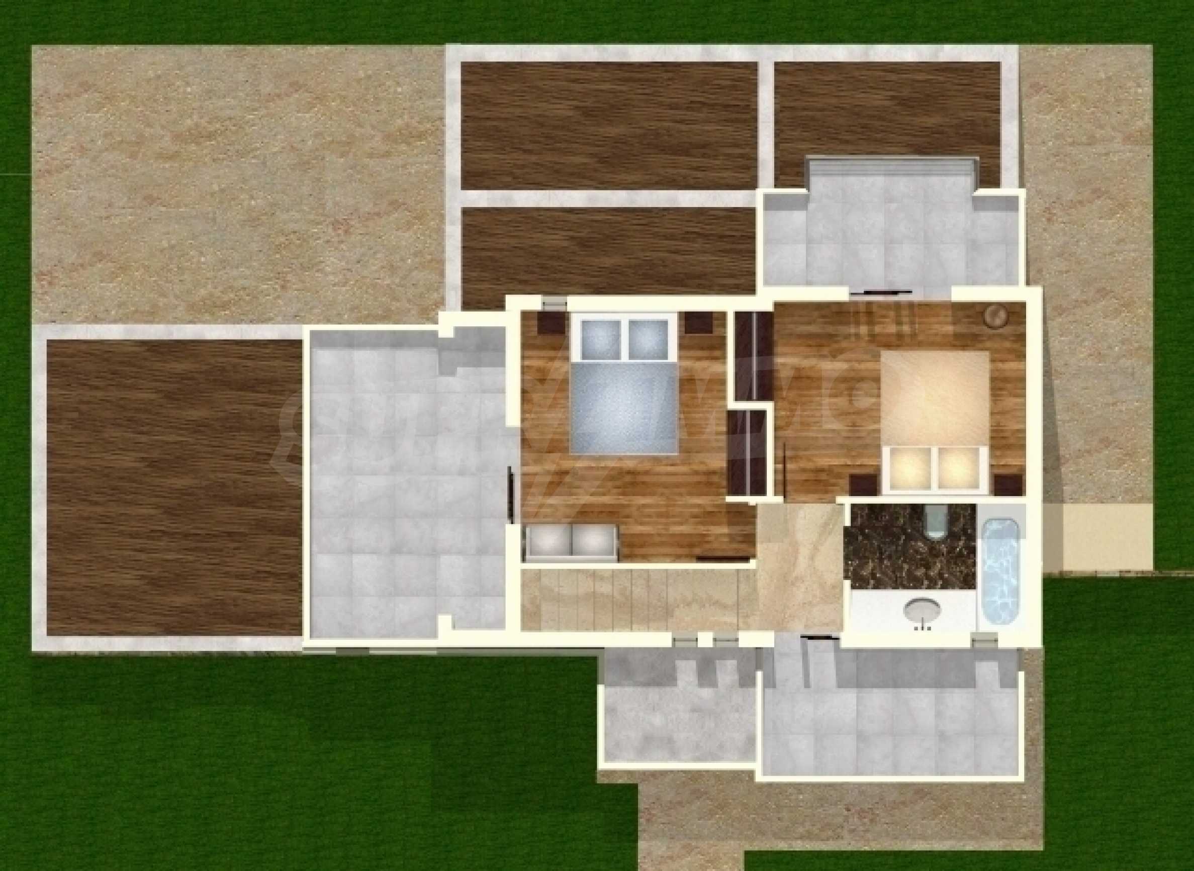 • трето ниво – 45 кв.м., състоящо се от 2 спални и баня с WC