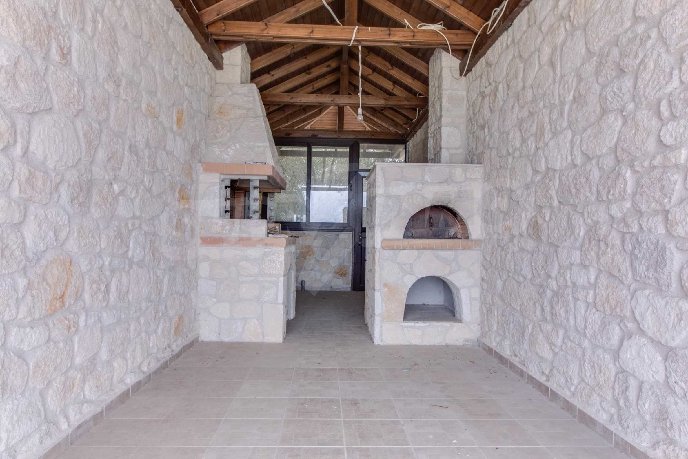 Предлагаме на вашето внимание вилa с площ 210 кв.м. Година на строителство: 2013. Отоплението се осъществява посредством камина и локално парно. Имотът се предлага със следната степен на завършеност: блиндирана входна врата. Имотът е снабден с септична яма. Важно е да се отбележи, че имотът разполага с: баня с тоалетна, килер, мазе, паркинг и сот. От имота се разкрива гледка към морето.