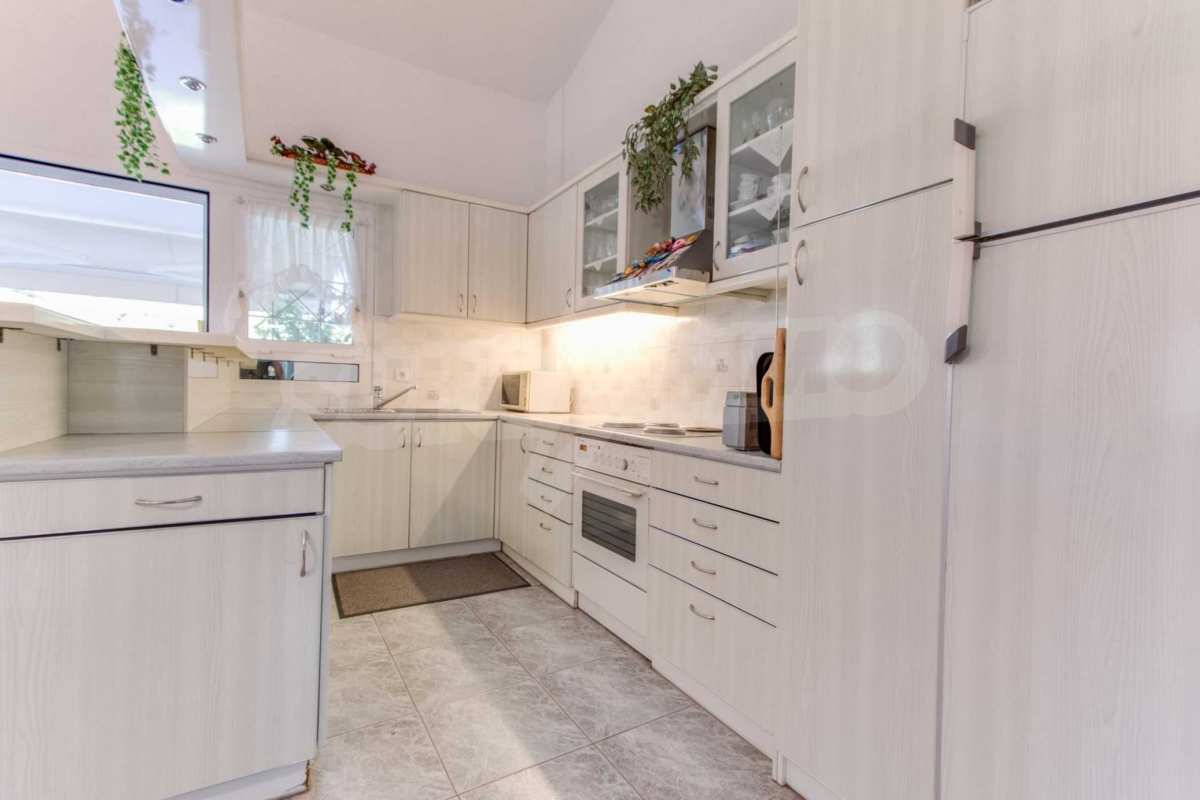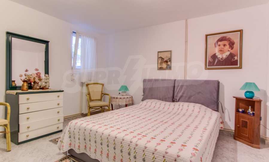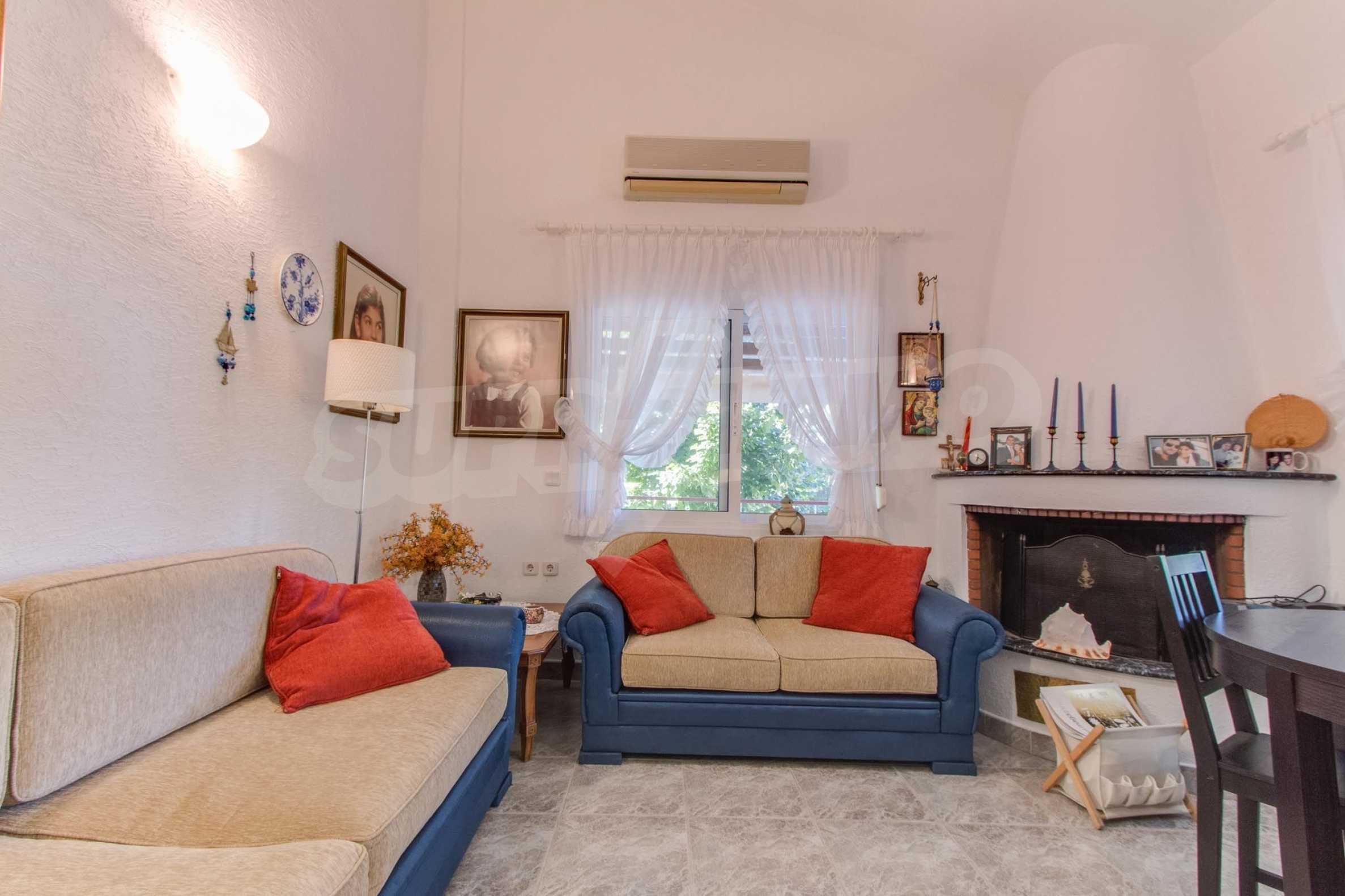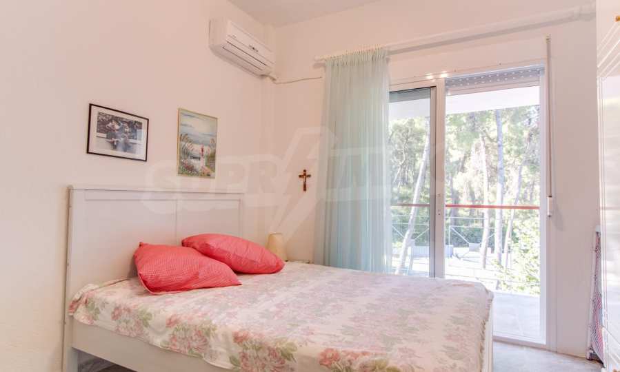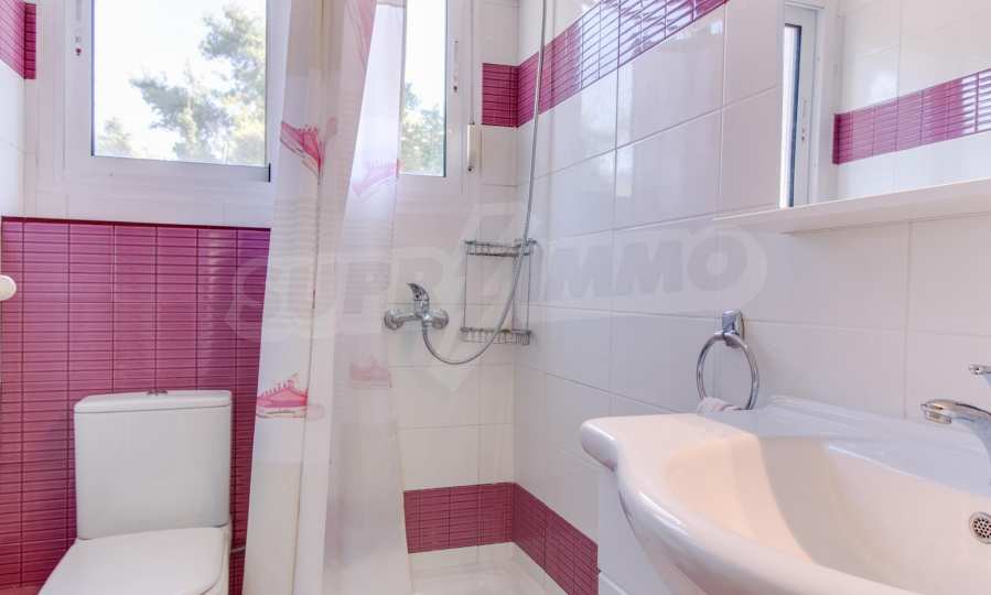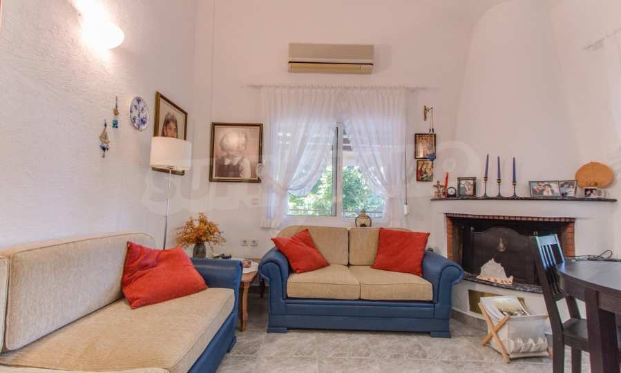 Предлагаме на вашето внимание къща с площ 120 кв.м. Година на строителство: 1993. Отоплението се осъществява посредством камина и локално парно. Има климатизация. Имотът се предлага със следната степен на завършеност: алуминиева дограма. Имотът е снабден с септична яма. Важно е да се отбележи, че имотът разполага с: балкон, баня с тоалетна, килер, мазе, паркинг и басейн. От имота се разкрива гледка към морето.