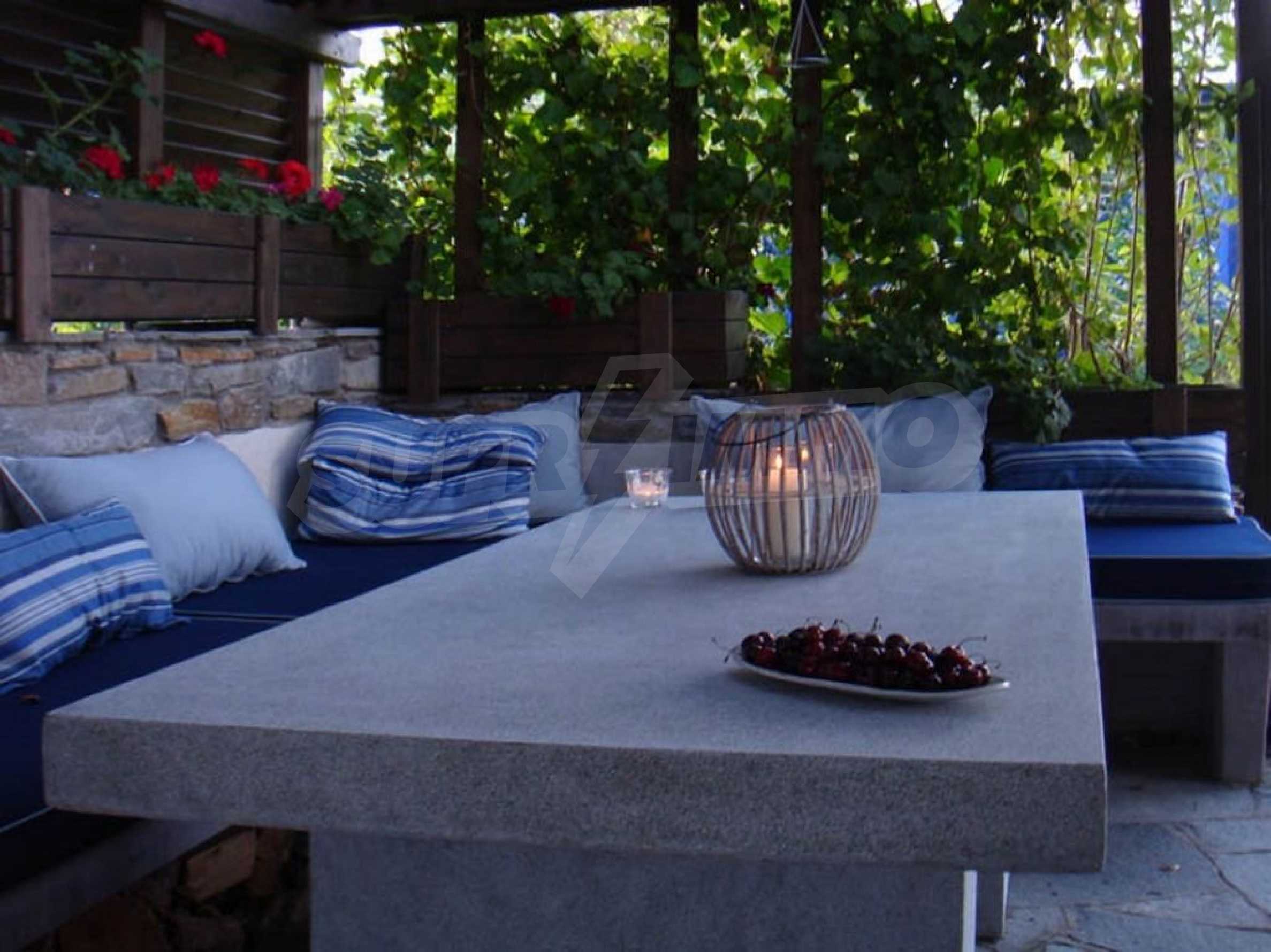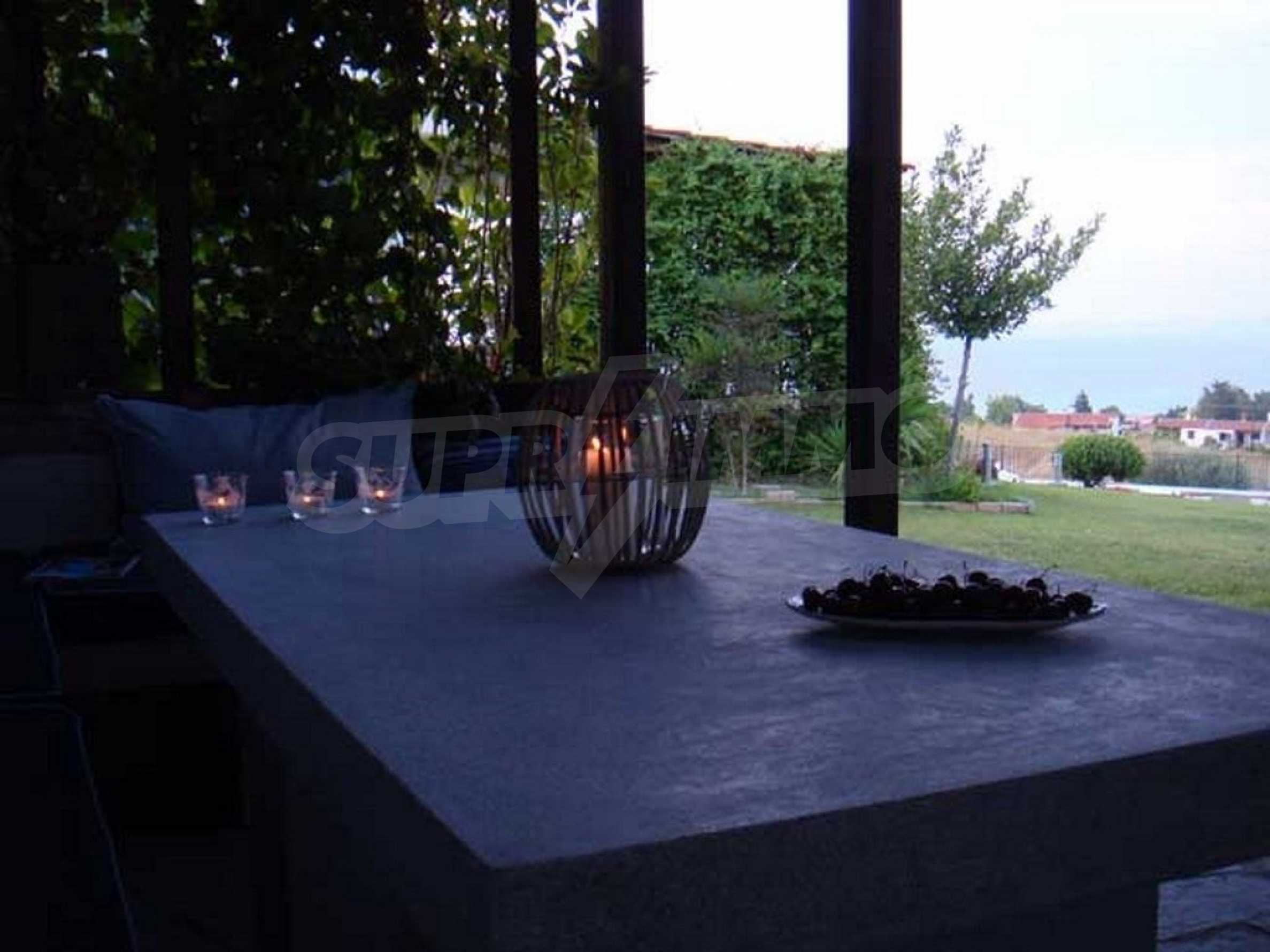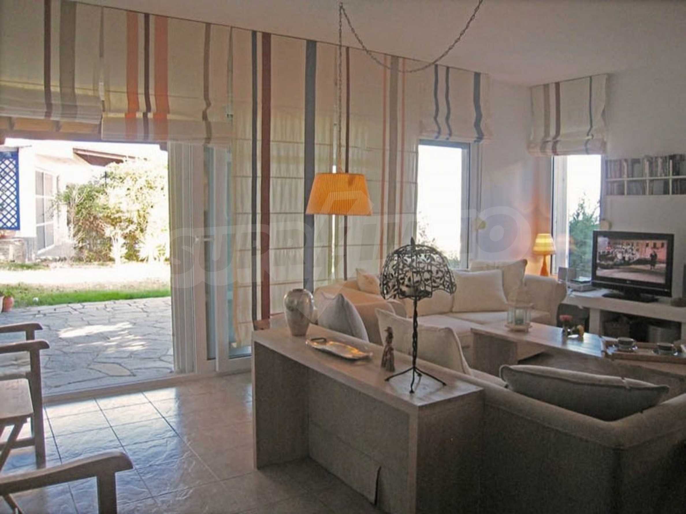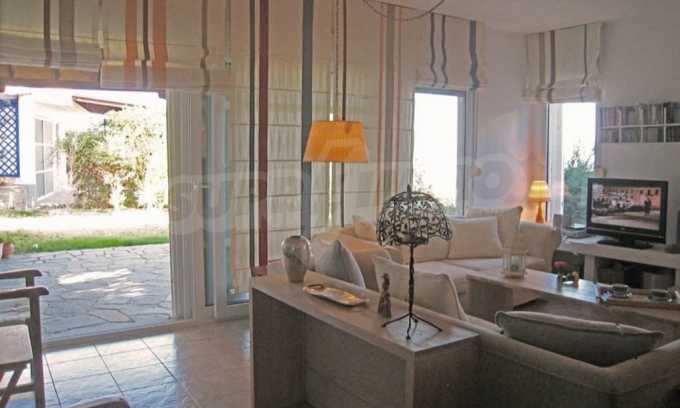 С източно изложение, качествено строителство и дизайн, големи балкони с тенти и първокласна гледка към морето, вилата е напълно мебелирана със стилни мебели и всичката необходима бяла техника и оборудване, и е напълно готова за ползване от новите си собственици.