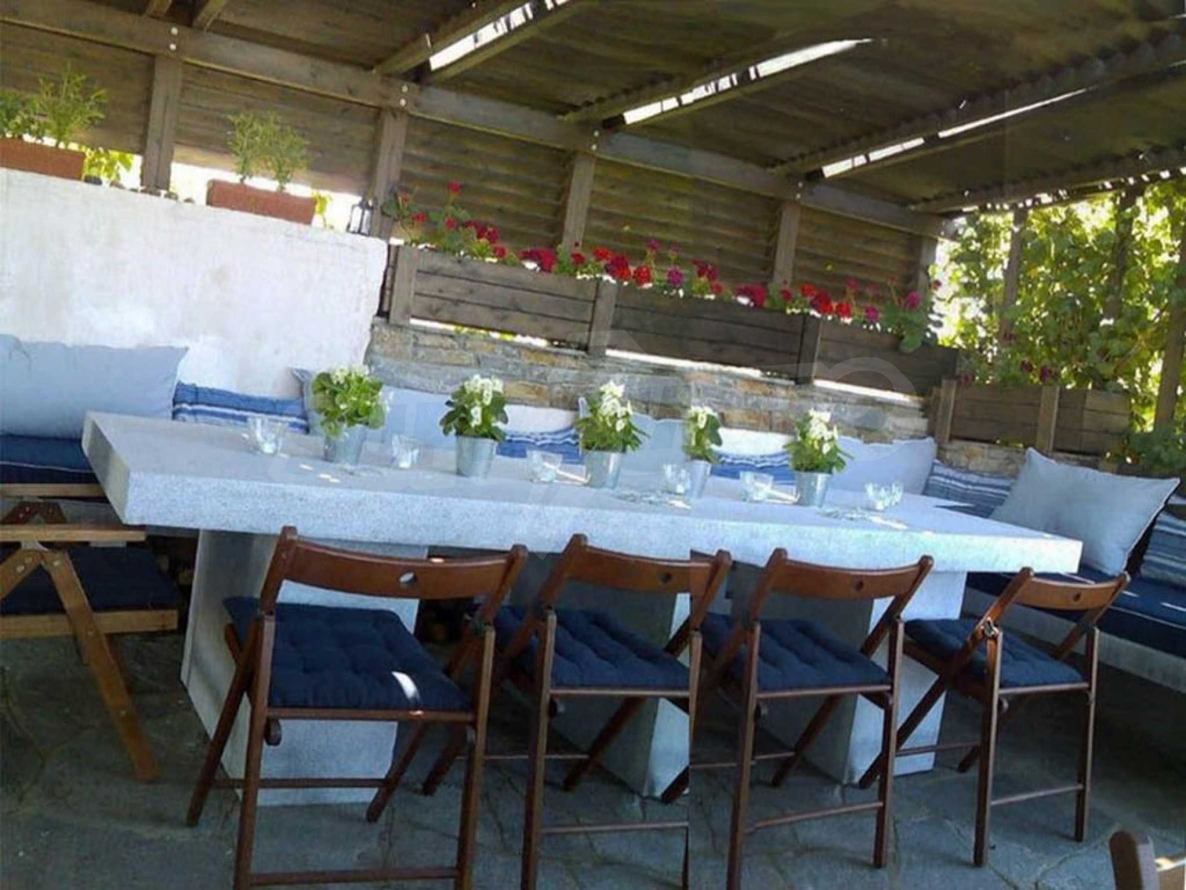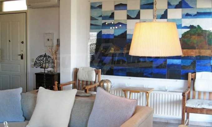 Мезонета е с площ от 122 кв.в. и има прилежащ частен двор с площ от 300 кв.м. Имотът се намира в затворен елитен комплекс от 10 къщи, разполагащ се на площ от 4.000 кв.м. и предлага на собствениците си чудесна морска гледка Къщата се намира на пешеходно разстояние от селото и само на 350 м от морето.
