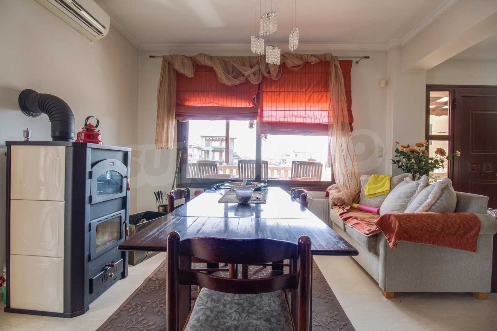 Предлагаме на вашето внимание вилa с площ 220 кв.м. Година на строителство: 2004. Отоплението се осъществява посредством камина и локално парно. Има климатизация. Имотът е снабден с канализация. Важно е да се отбележи, че имотът разполага с: балкон, баня с тоалетна, килер и паркинг.