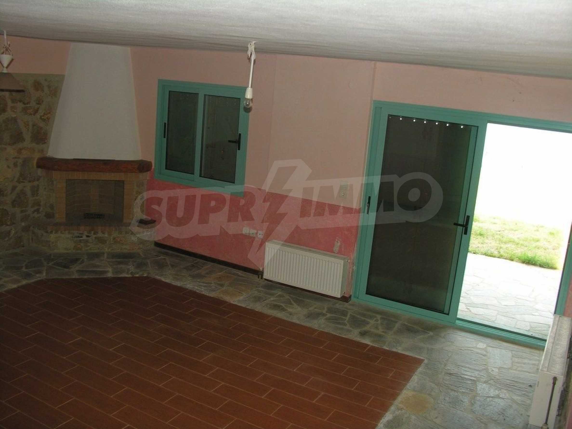 Предлагаме на вашето внимание къща с площ 145 кв.м. Година на строителство: 2005. Отоплението се осъществява посредством камина и локално парно. Има климатизация. Имотът се предлага със следната степен на завършеност: блиндирана входна врата. По отношение на мебели и оборудване налични са: климатик. Имотът е снабден с канализация. Важно е да се отбележи, че имотът разполага с: балкон, баня с тоалетна, килер, паркинг, таванско помещение и сот. От имота се разкрива гледка към морето.