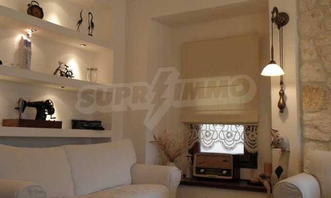 Предлагаме на вашето внимание къща с площ 160 кв.м. Година на строителство: 2006. Отоплението се осъществява посредством камина и локално парно. Има климатизация. Имотът се предлага със следната степен на завършеност: блиндирана входна врата и подове с дюшеме. Имотът е снабден с канализация. Важно е да се отбележи, че имотът разполага с: балкон, баня с тоалетна, килер, паркинг, джакузи и сот. От имота се разкрива гледка към морето.