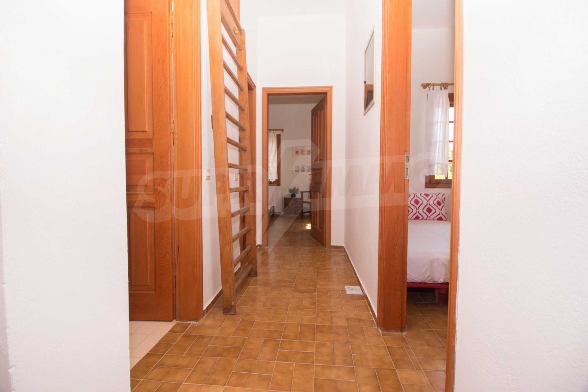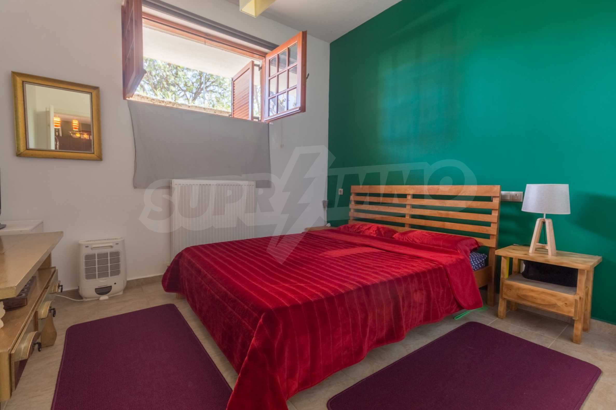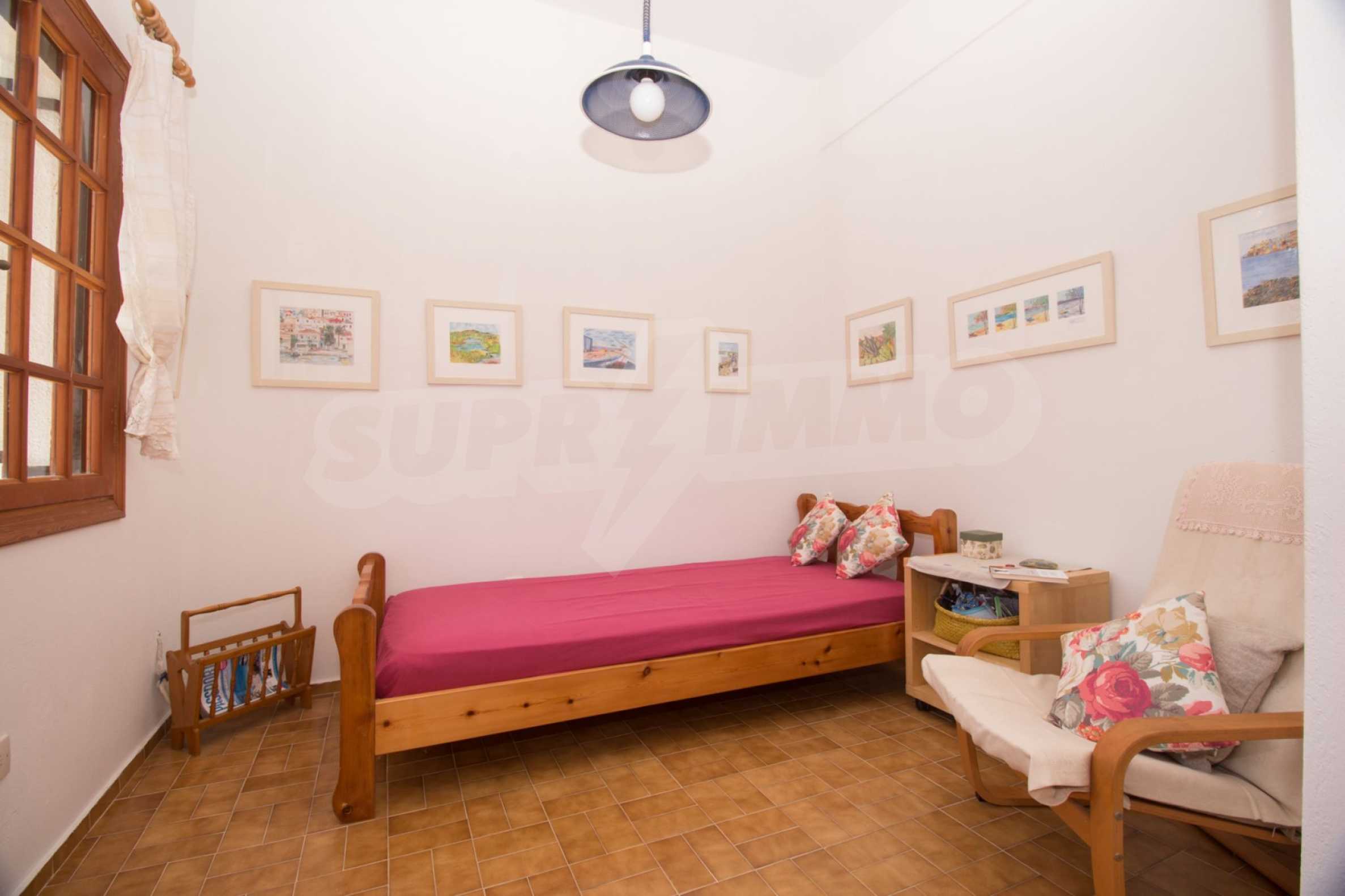 Предлагаме на вашето внимание къща с площ 198 кв.м. Година на строителство: 1985. Отоплението се осъществява посредством камина и локално парно. Имотът е снабден с канализация. Важно е да се отбележи, че имотът разполага с: балкон, баня с тоалетна, килер и паркинг. От имота се разкрива гледка към морето.