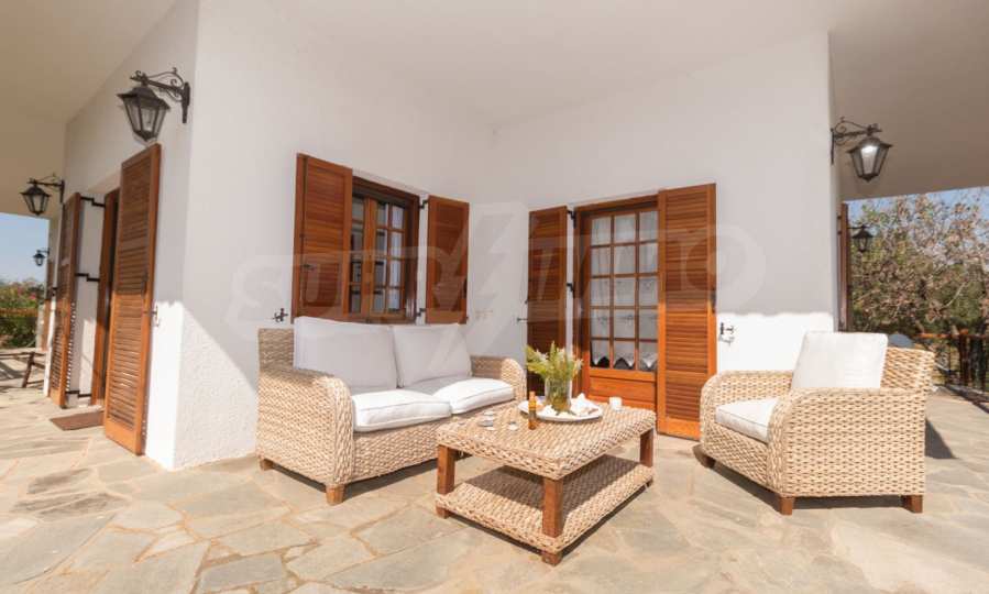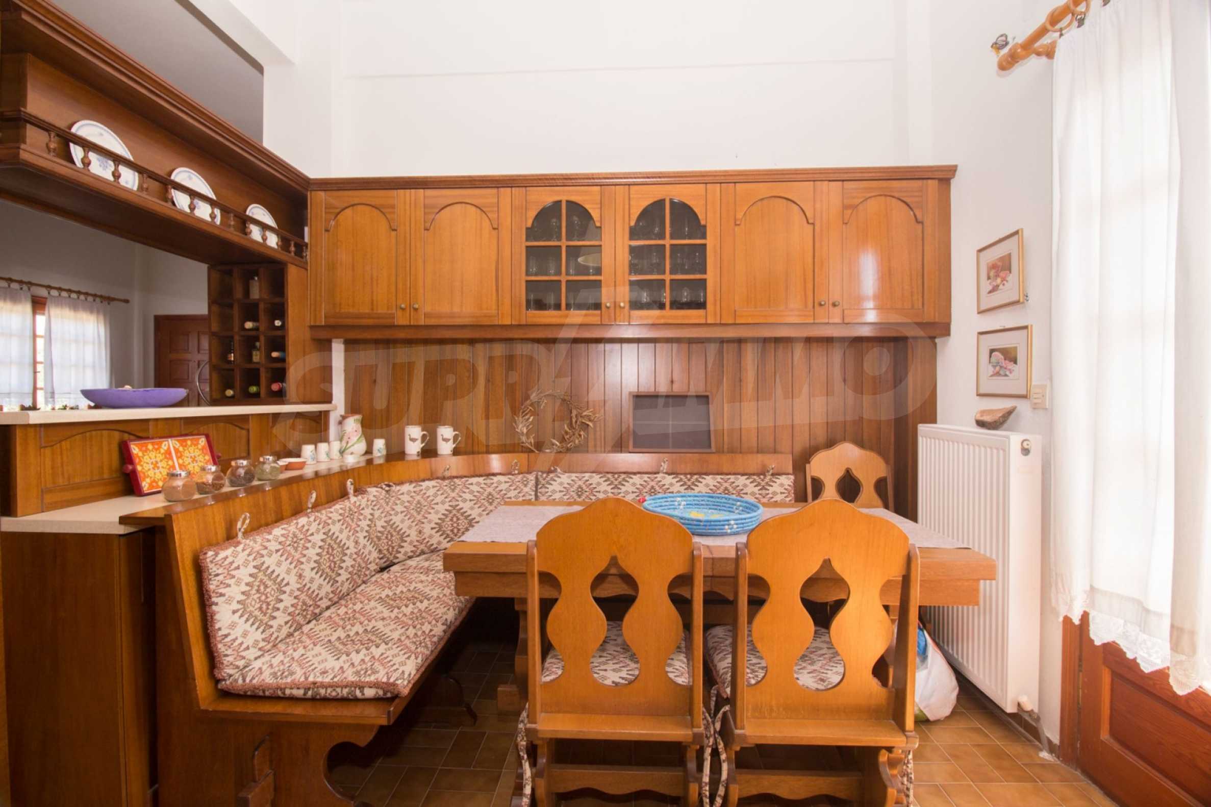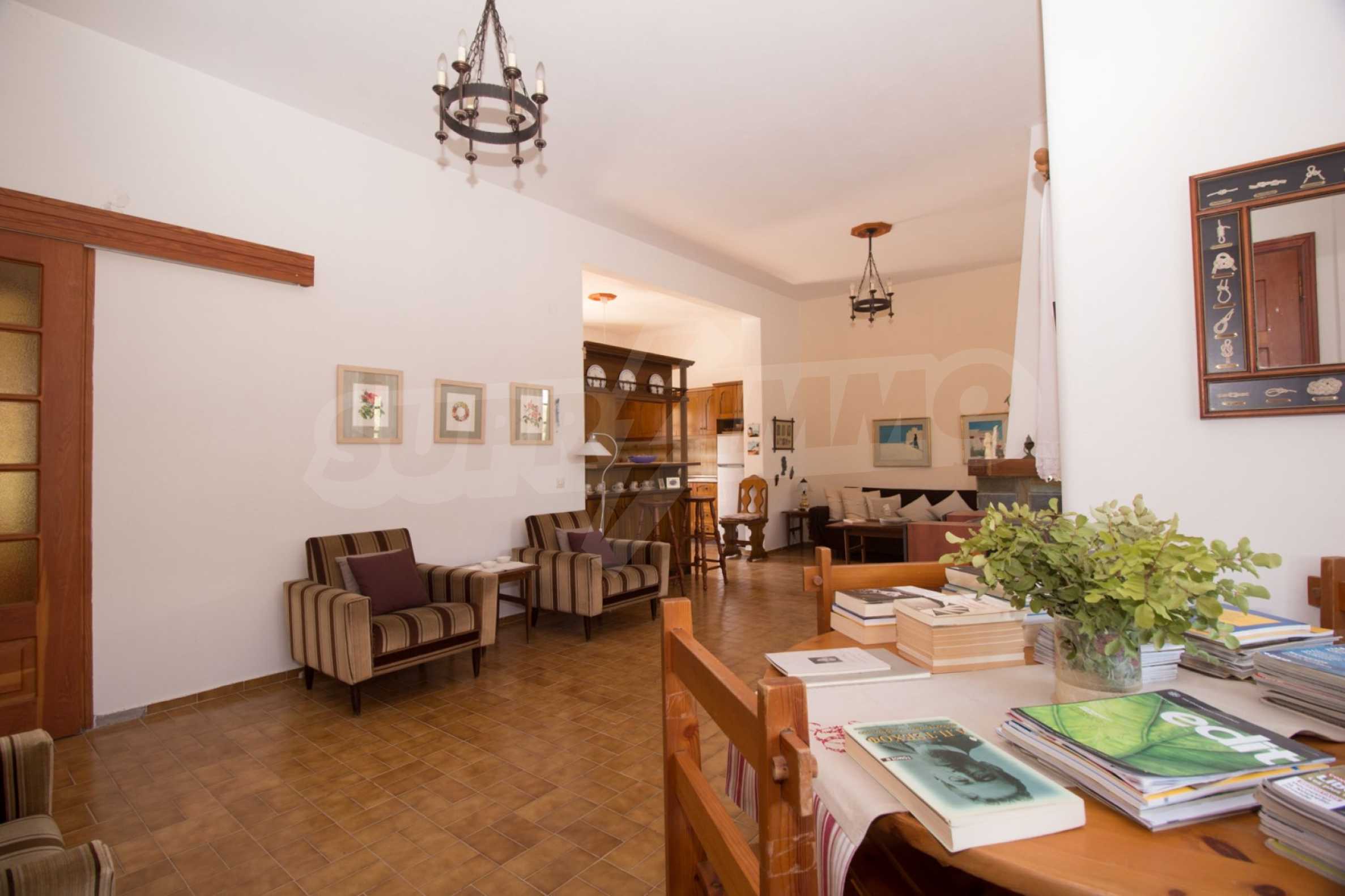 Предлагаме на вашето внимание къща с площ 198 кв.м. Година на строителство: 1985. Отоплението се осъществява посредством камина и локално парно. Имотът е снабден с канализация. Важно е да се отбележи, че имотът разполага с: балкон, баня с тоалетна, килер и паркинг. От имота се разкрива гледка към морето.