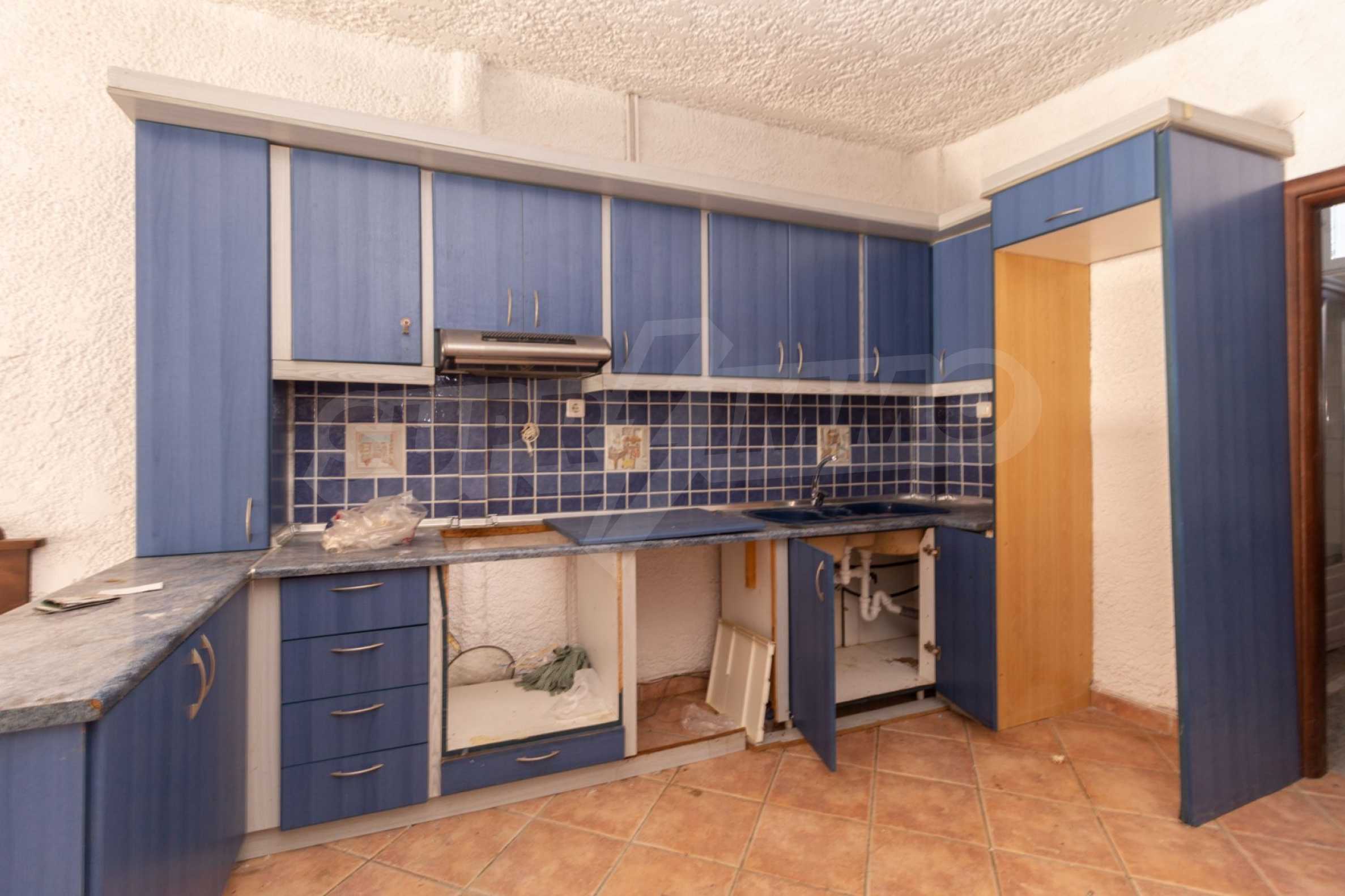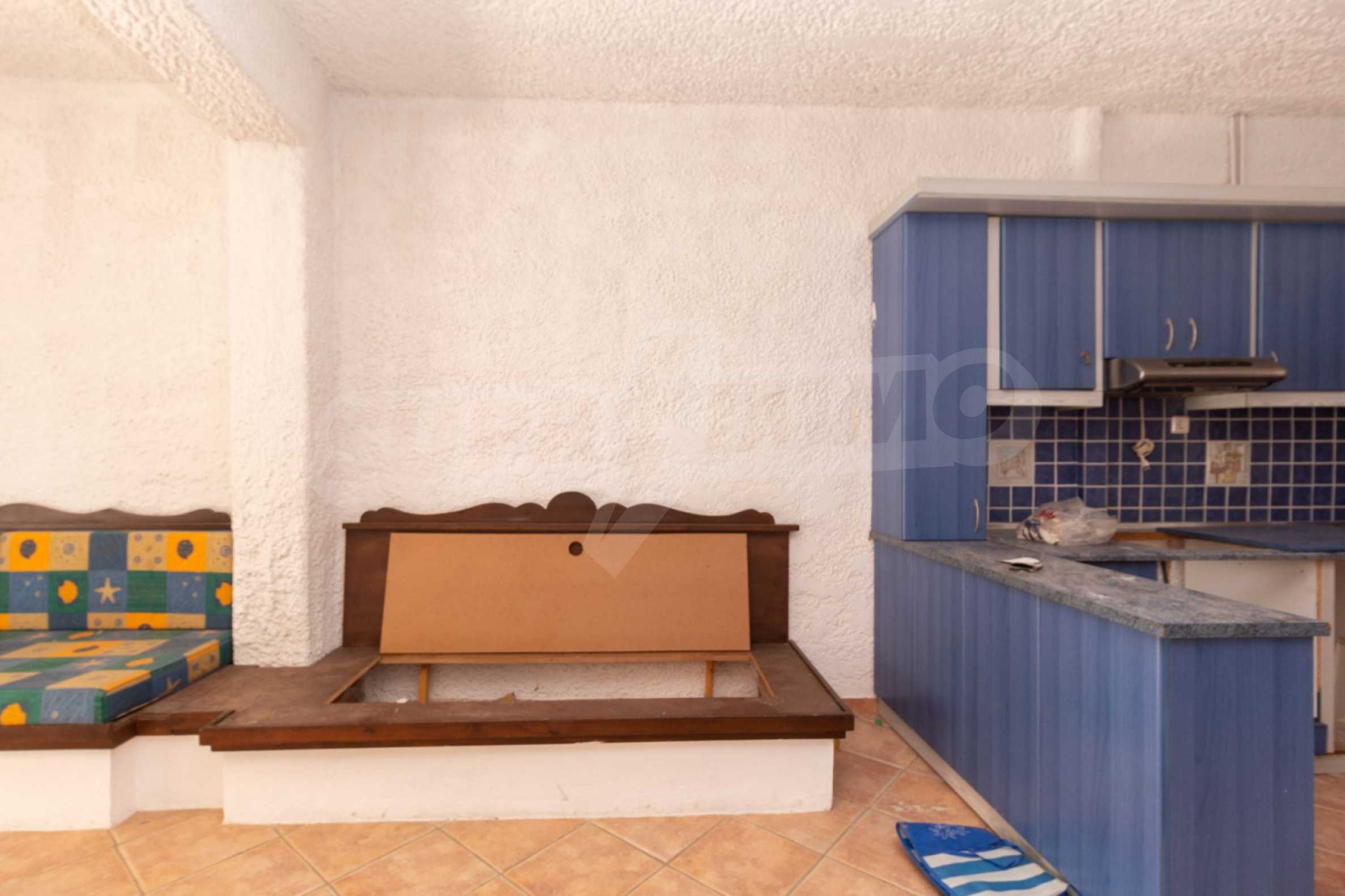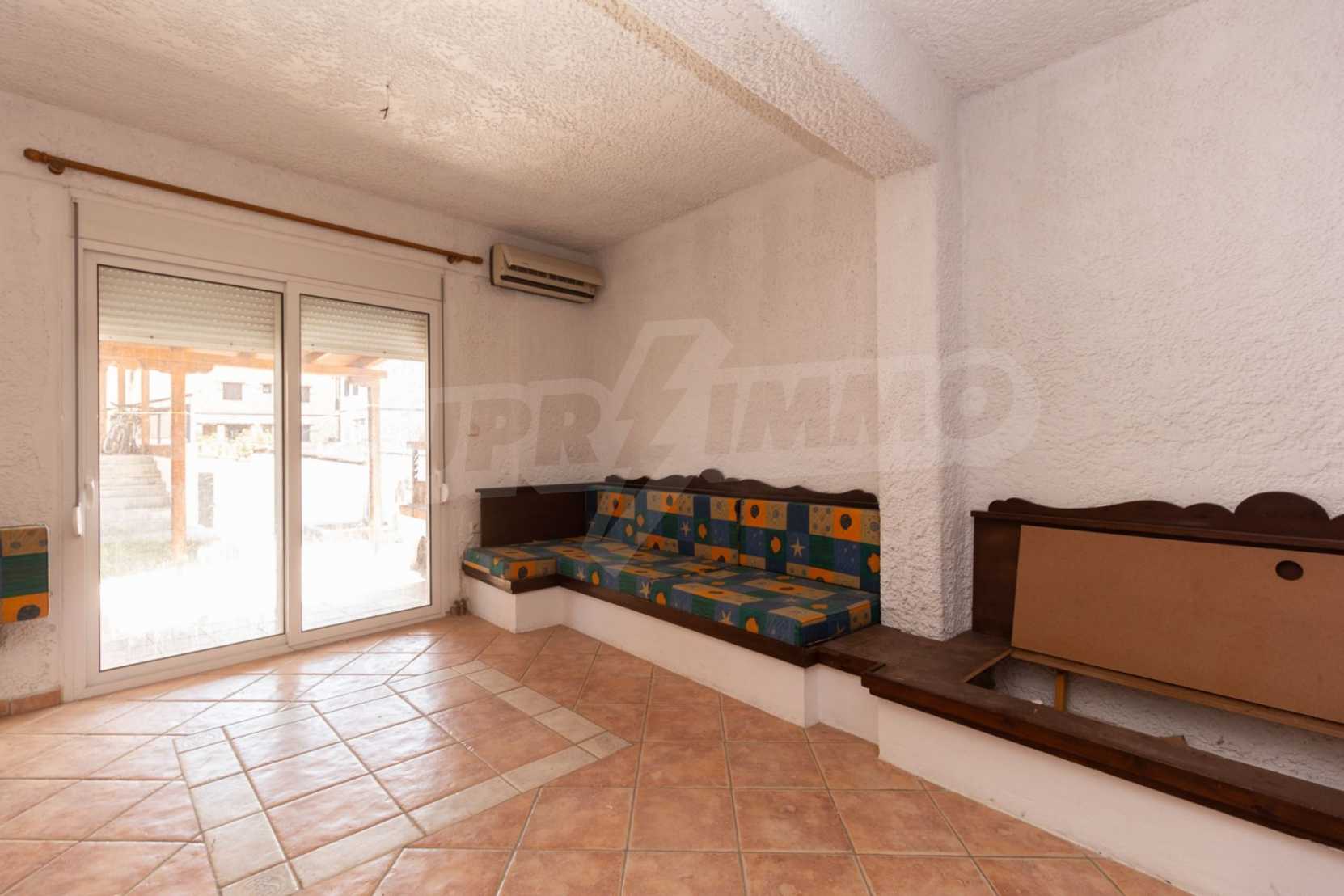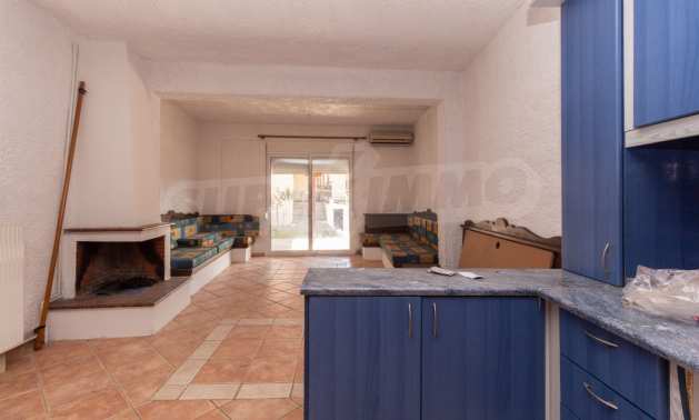 Предлагаме на вашето внимание къща с площ 120 кв.м. Година на строителство: 1999. Отоплението се осъществява посредством камина и локално парно. Има климатизация. Имотът се предлага със следната степен на завършеност: алуминиева дограма и блиндирана входна врата. Имотът е снабден с септична яма. Важно е да се отбележи, че имотът разполага с: балкон, баня с тоалетна, килер, паркинг, таванско помещение, джакузи и сот. От имота се разкрива гледка към морето.