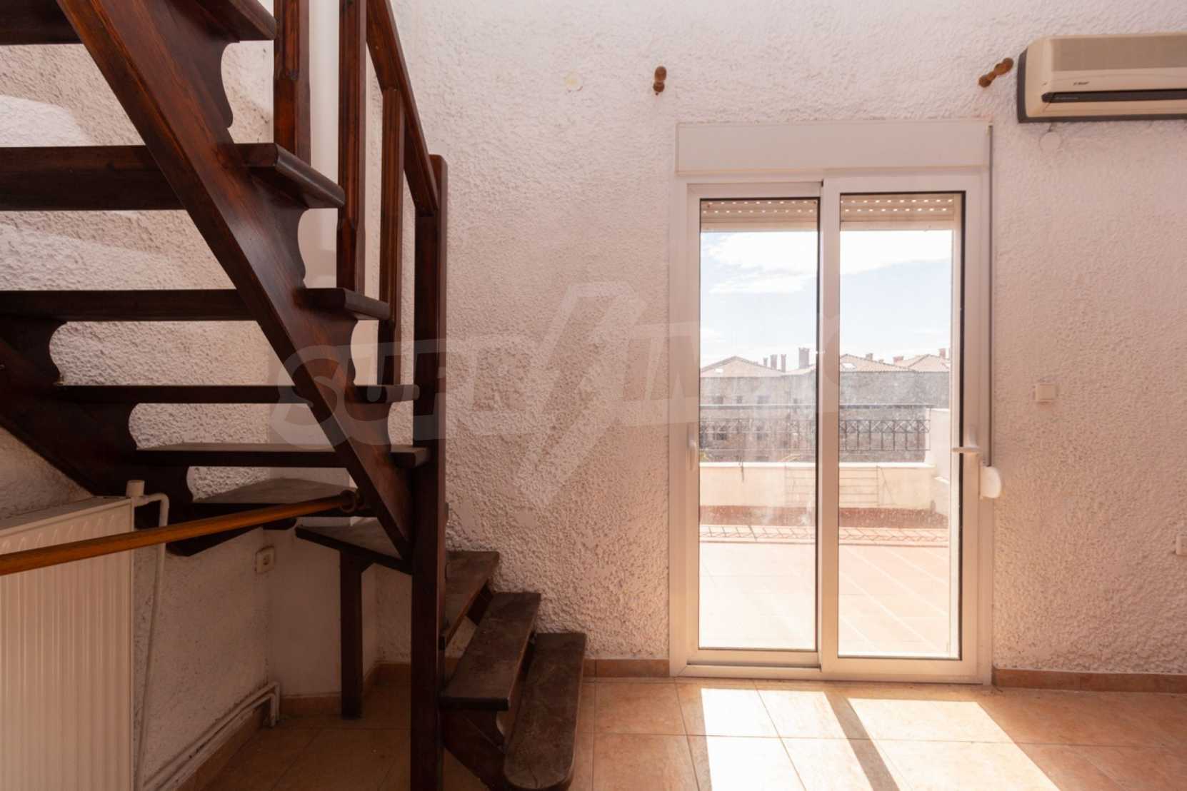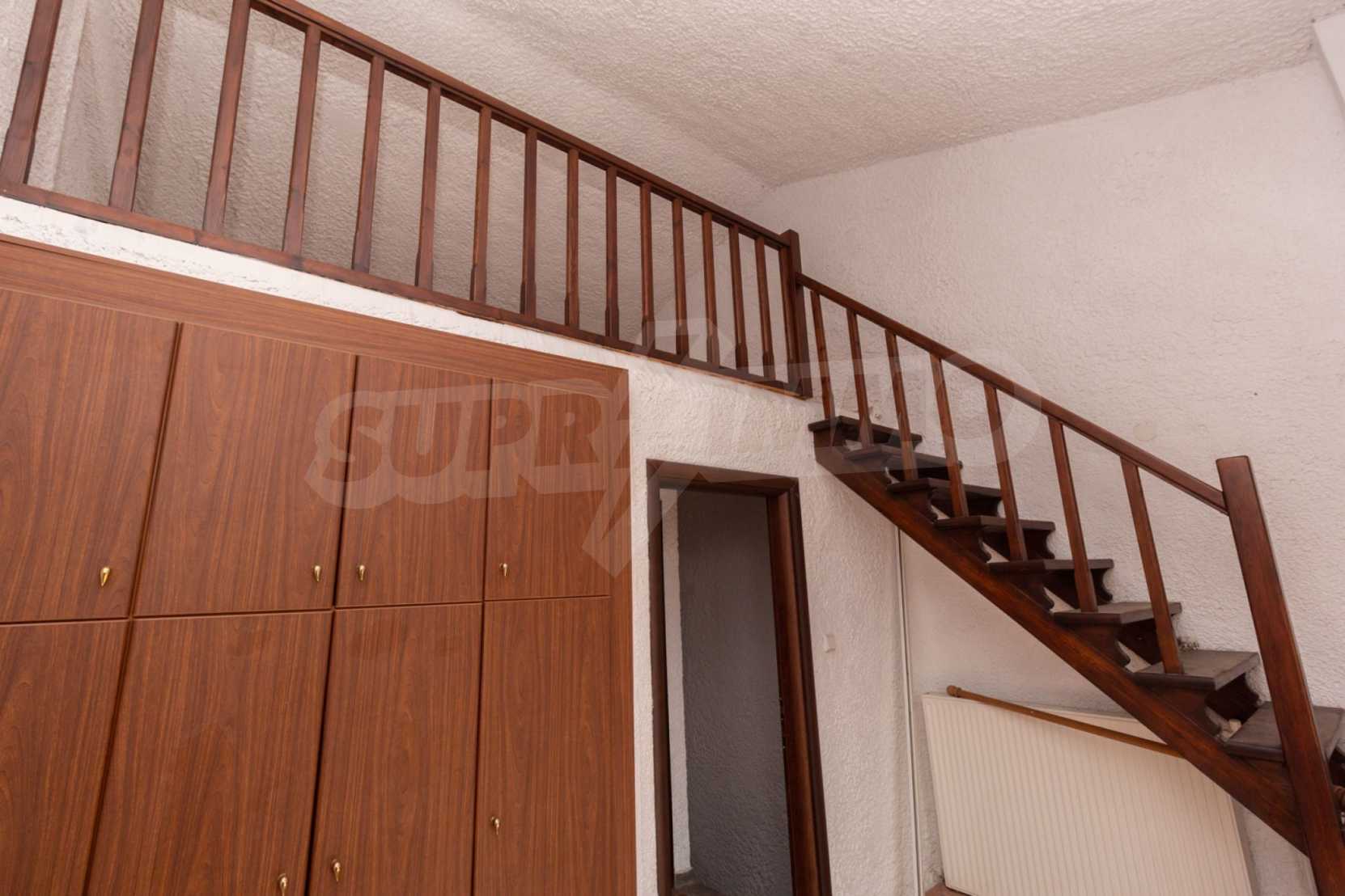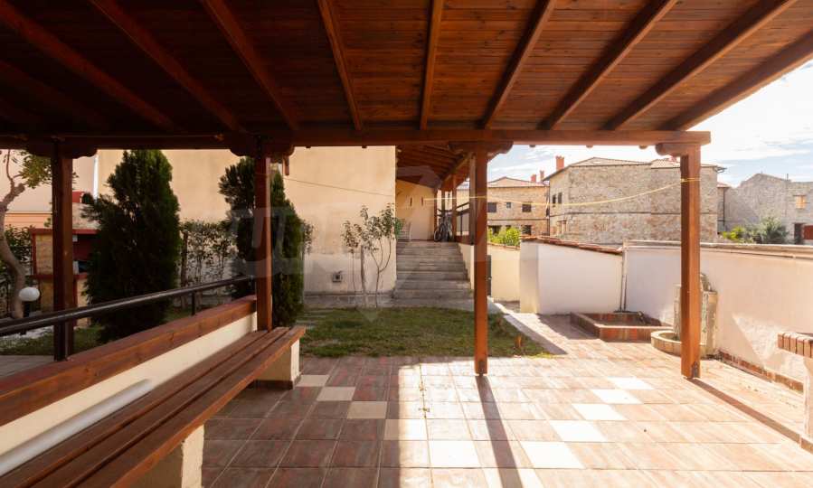Предлагаме на вашето внимание къща с площ 120 кв.м. Година на строителство: 1999. Отоплението се осъществява посредством камина и локално парно. Има климатизация. Имотът се предлага със следната степен на завършеност: алуминиева дограма и блиндирана входна врата. Имотът е снабден с септична яма. Важно е да се отбележи, че имотът разполага с: балкон, баня с тоалетна, килер, паркинг, таванско помещение, джакузи и сот. От имота се разкрива гледка към морето.